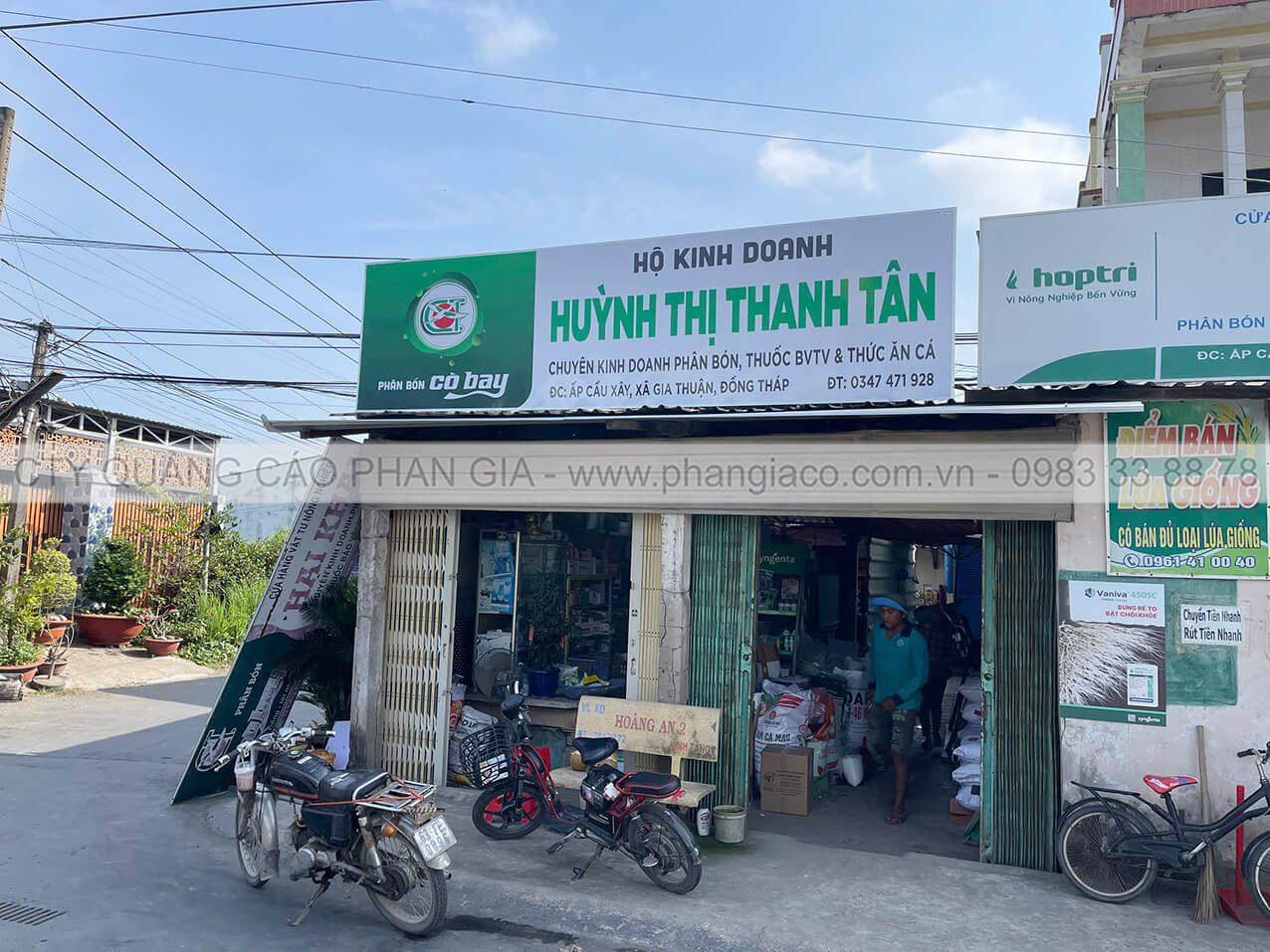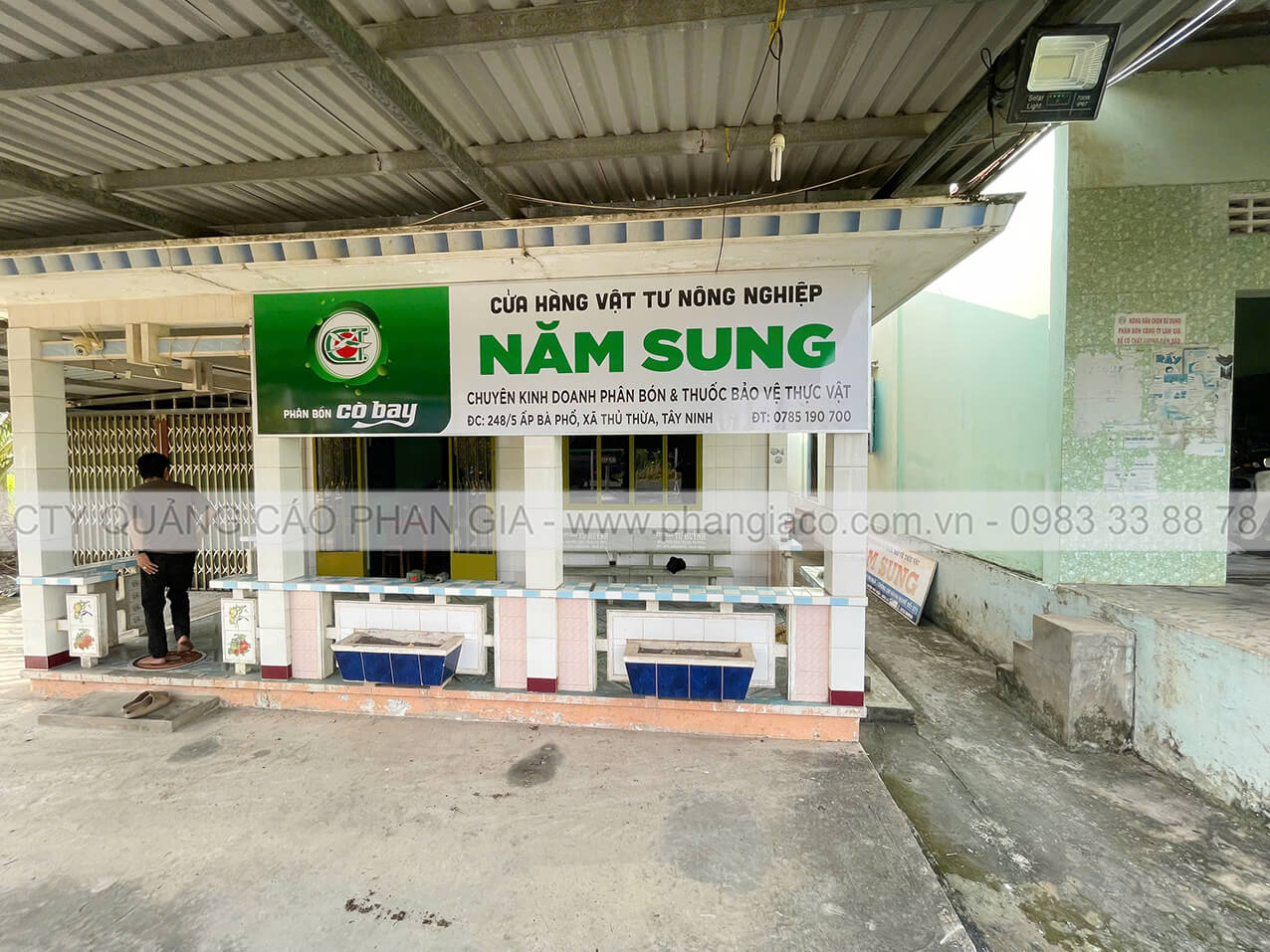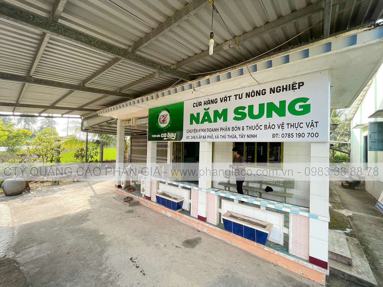 Bảng hiệu tôn decal cửa hàng vật tư nông nghiệp Phan Gia lắp đặt tại tỉnh Tây Ninh