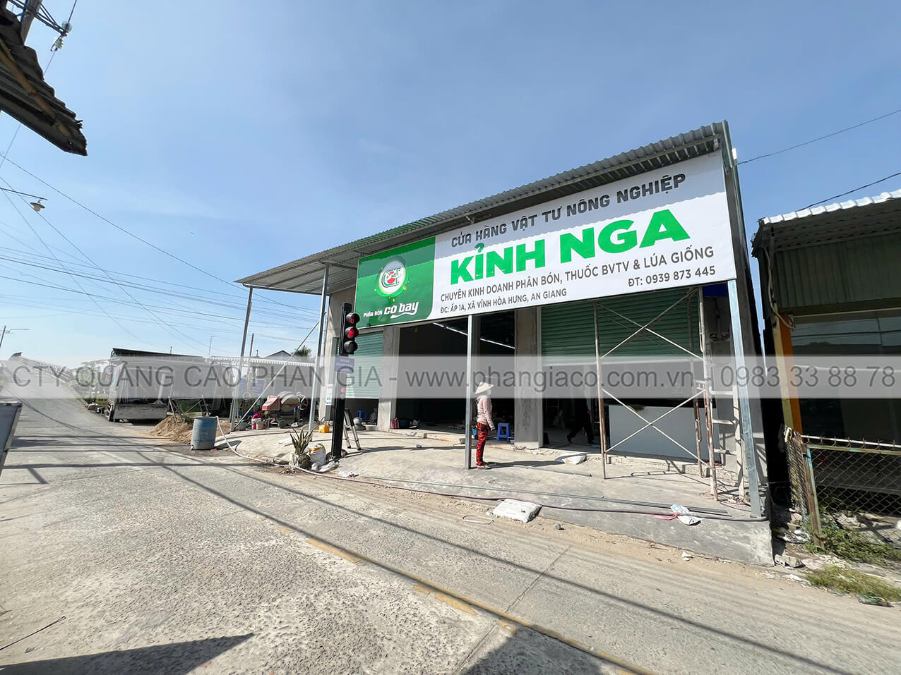 Bảng hiệu tôn decal cửa hàng vật tư nông nghiệp lắp đặt tại tỉnh An Giang