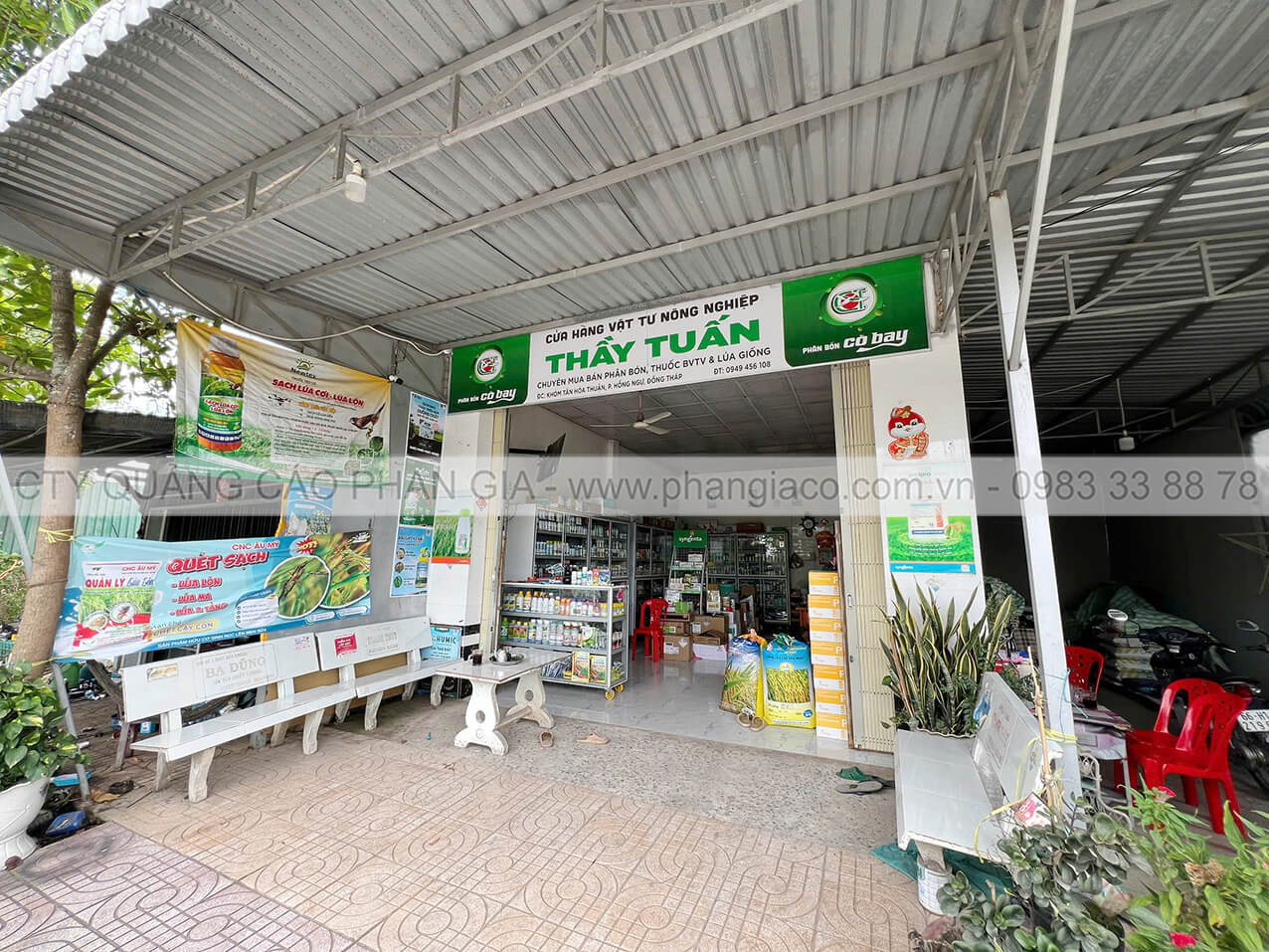 Bảng hiệu tôn decal cửa hàng vật tư nông nghiệp lắp đặt tại tỉnh Đồng Tháp
