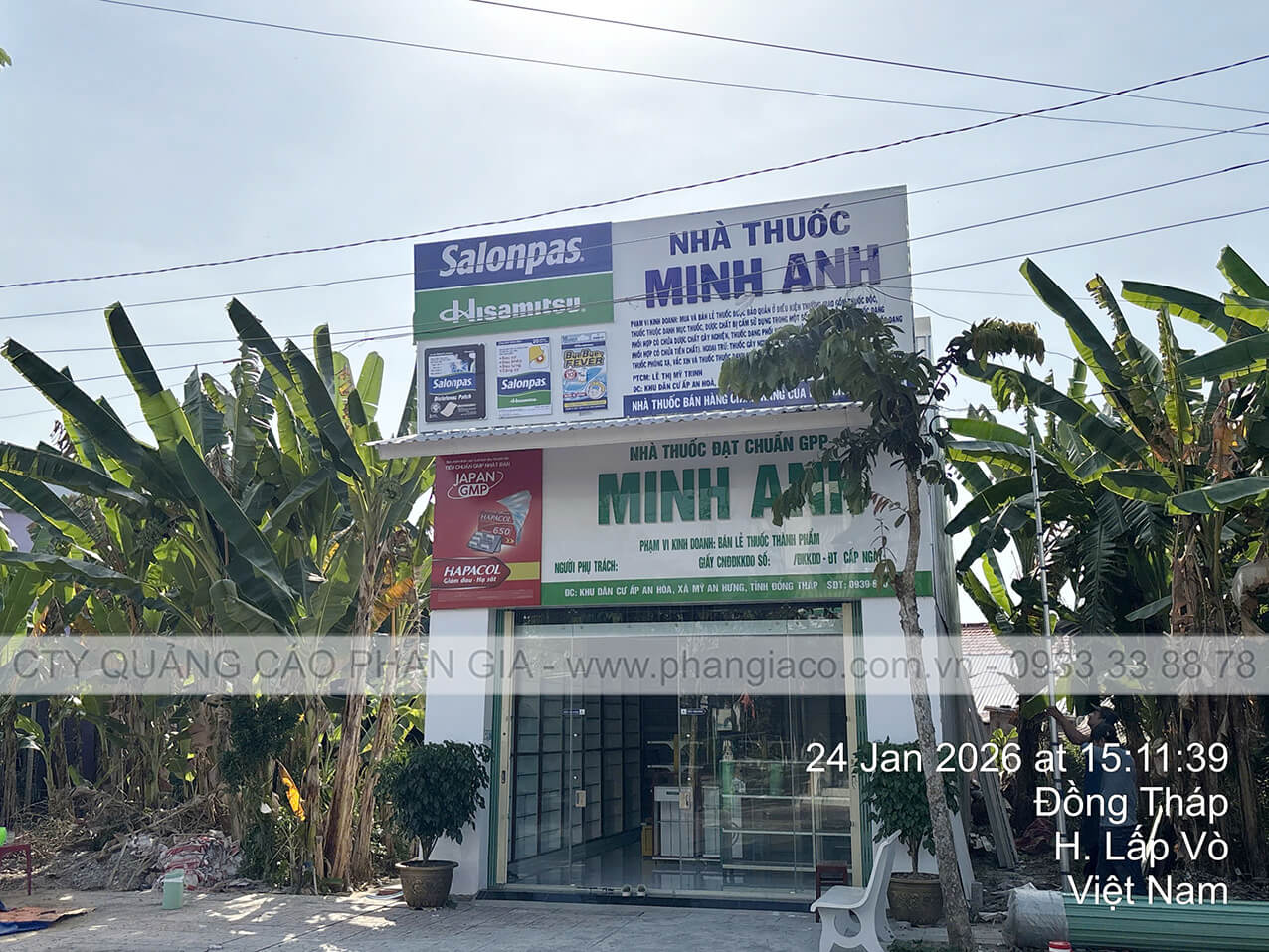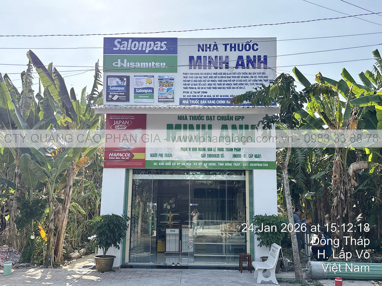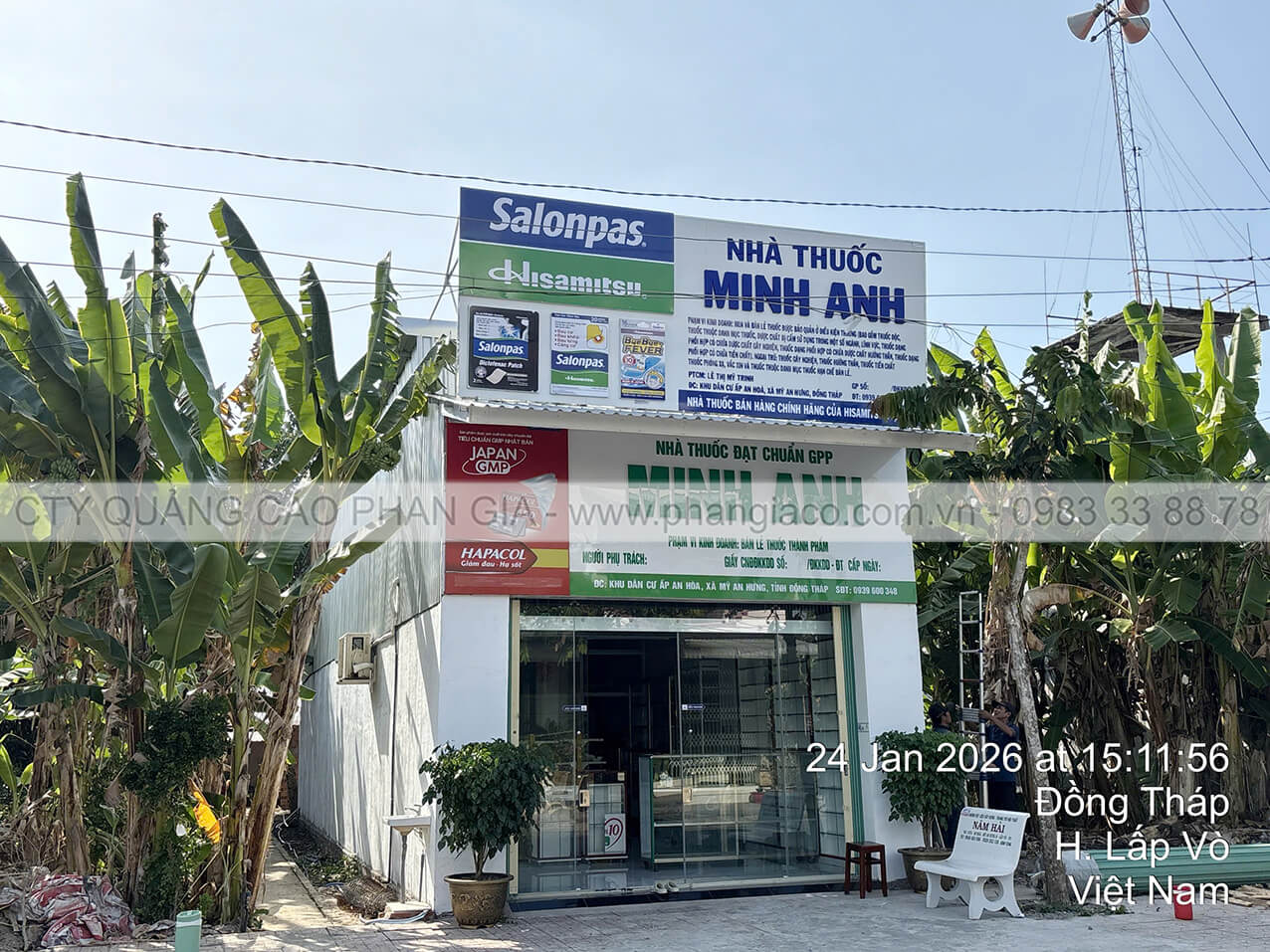 Chuỗi bảng hiệu quảng cáo nhôm với chất liệu khung sắt, nền alu, chữ nổi mica, nội dung in UV trên decal, viền inox hệ thống nhà thuốc tây, quầy thuốc tây được Quảng Cáo Phan Gia khảo sát, thiết kế, sản xuất, vận chuyển và lắp đặt tại các phường xã của tỉnh Đồng Tháp những ngày đầu năm 2026.
