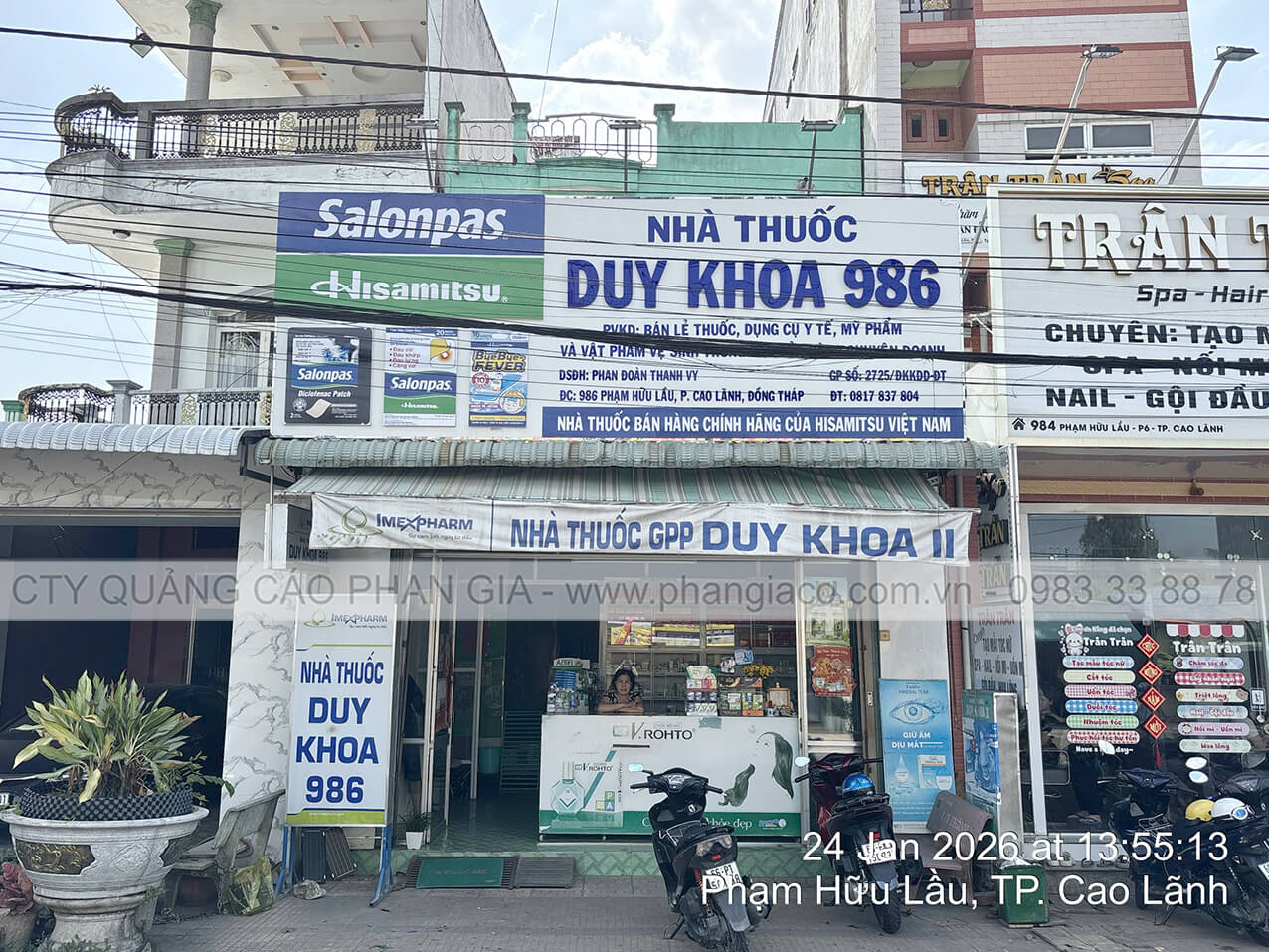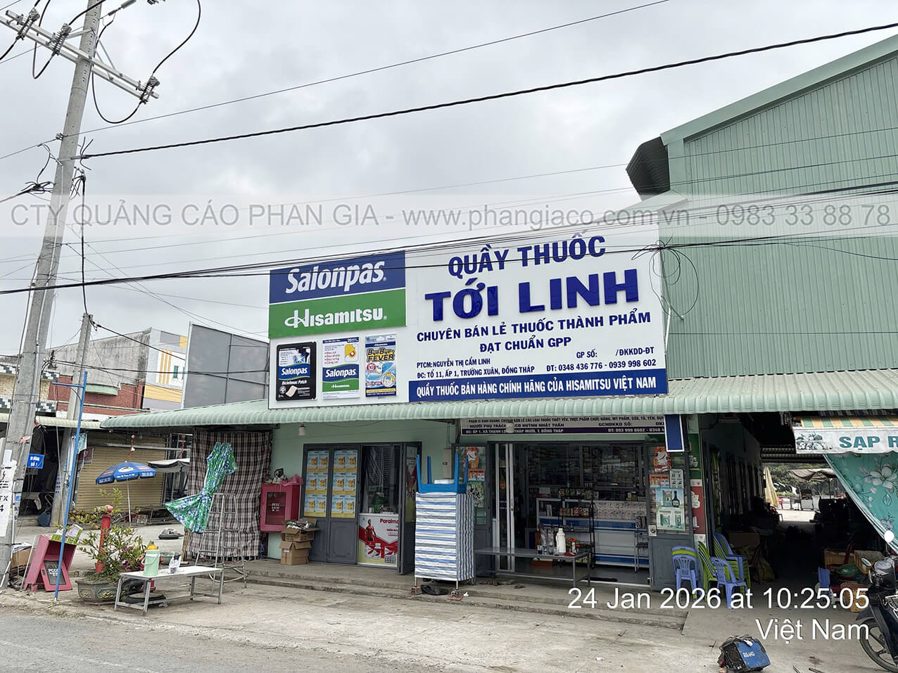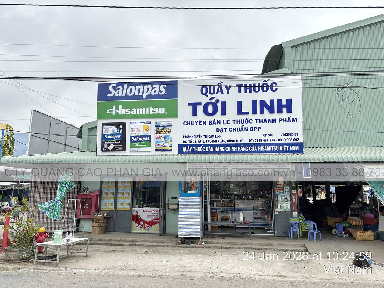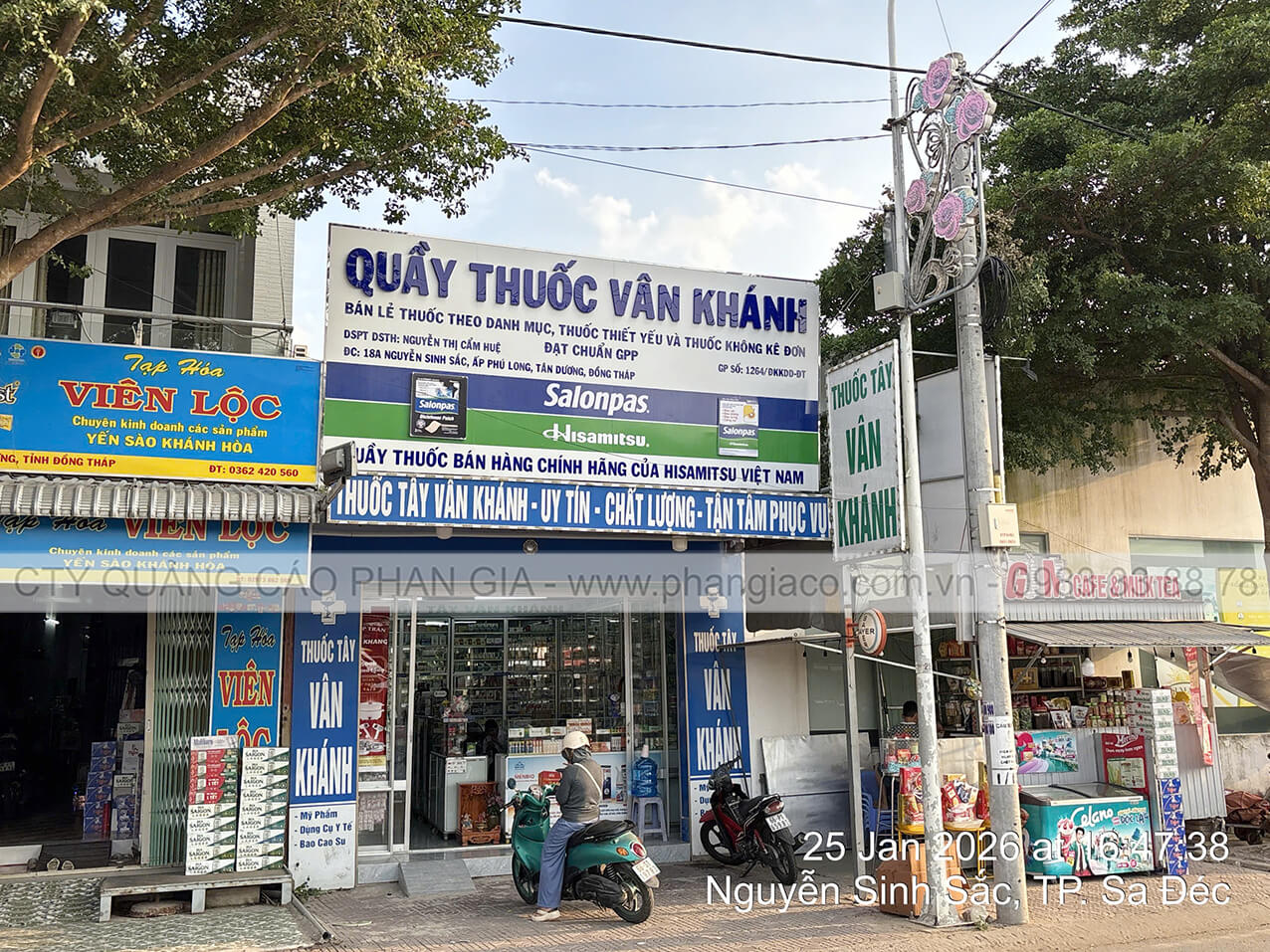 Chuỗi bảng hiệu quảng cáo nhôm với chất liệu khung sắt, nền alu, chữ nổi mica, nội dung in UV trên decal, viền inox hệ thống nhà thuốc tây, quầy thuốc tây được Quảng Cáo Phan Gia khảo sát, thiết kế, sản xuất, vận chuyển và lắp đặt tại các phường xã của tỉnh Đồng Tháp những ngày đầu năm 2026.