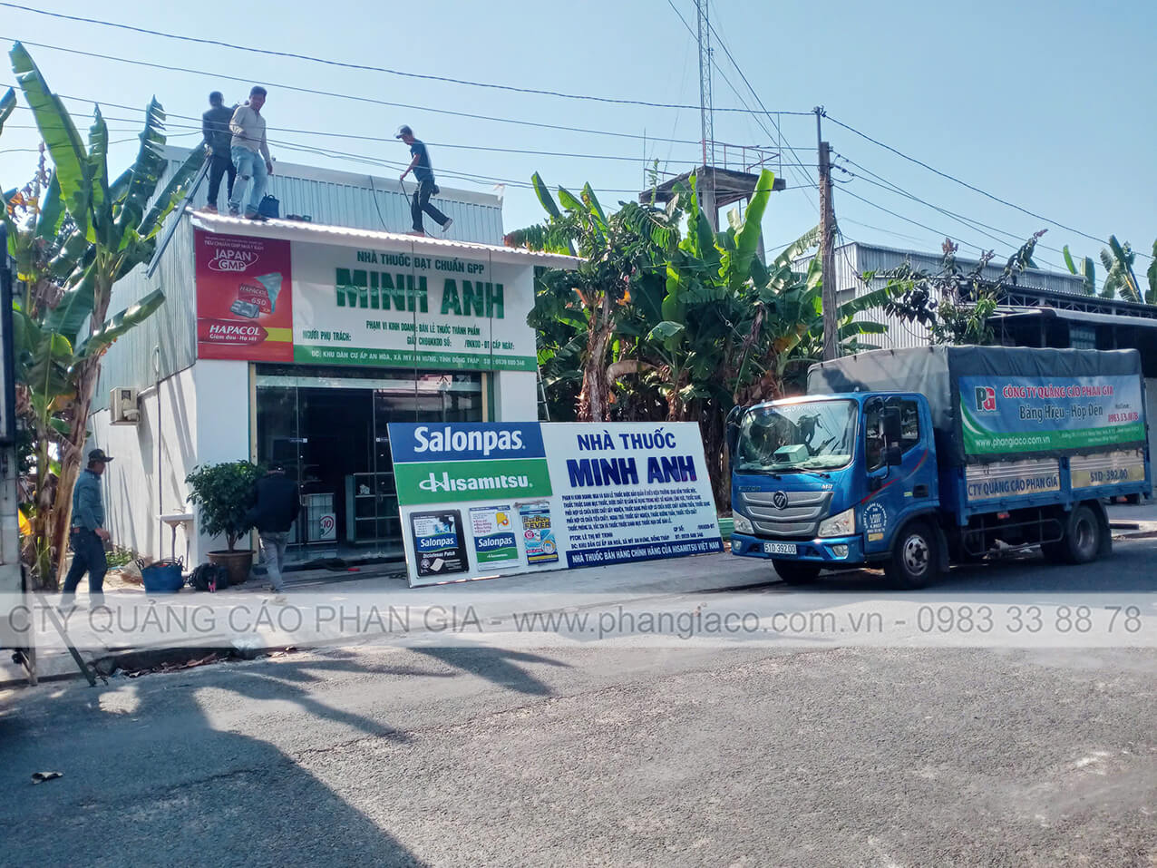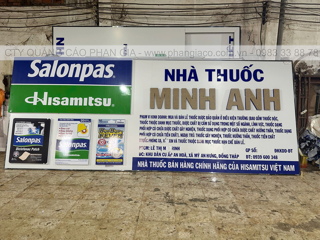 Bảng hiệu alu nhà thuốc đẹp nổi bật năm 2026 được anh em thợ Phan Gia lắp đặt hoàn thiện và bàn giao cho cửa hàng đưa vào sử dụng tại P. Sa Đéc, Đồng Tháp