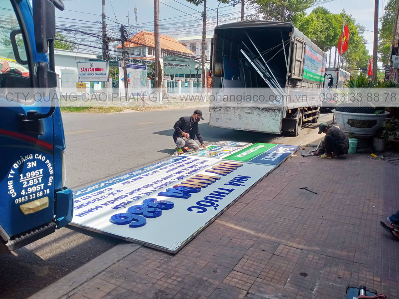 Hình ảnh lắp đặt bảng hiệu alu được thợ thi công Phan Gia thực hiện tại P. Sa Đéc, Đồng Tháp