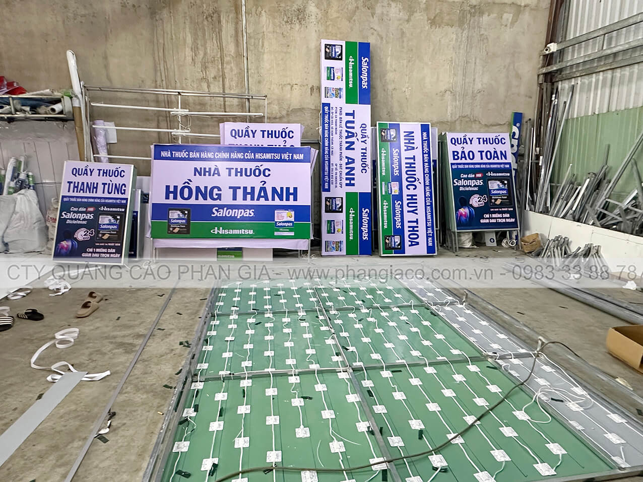 Xưởng quảng cáo Phan Gia chuyên nhận sản xuất: bảng hiệu alu, bảng hiệu tôn decal, hộp đèn led in UV, hộp đèn 02 mặt có chân, bảng quảng cáo các loại .....