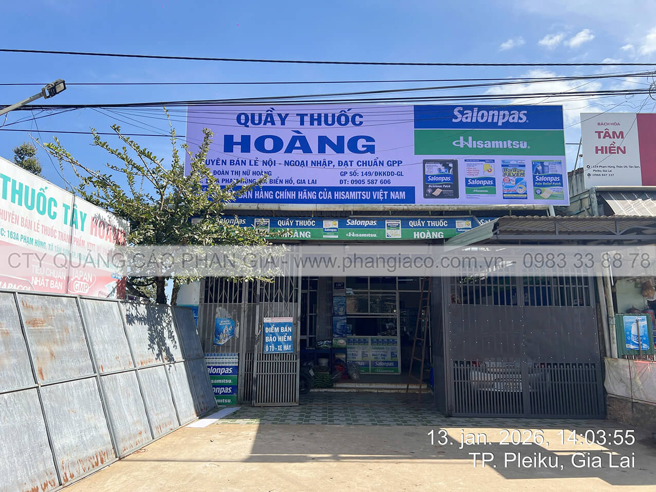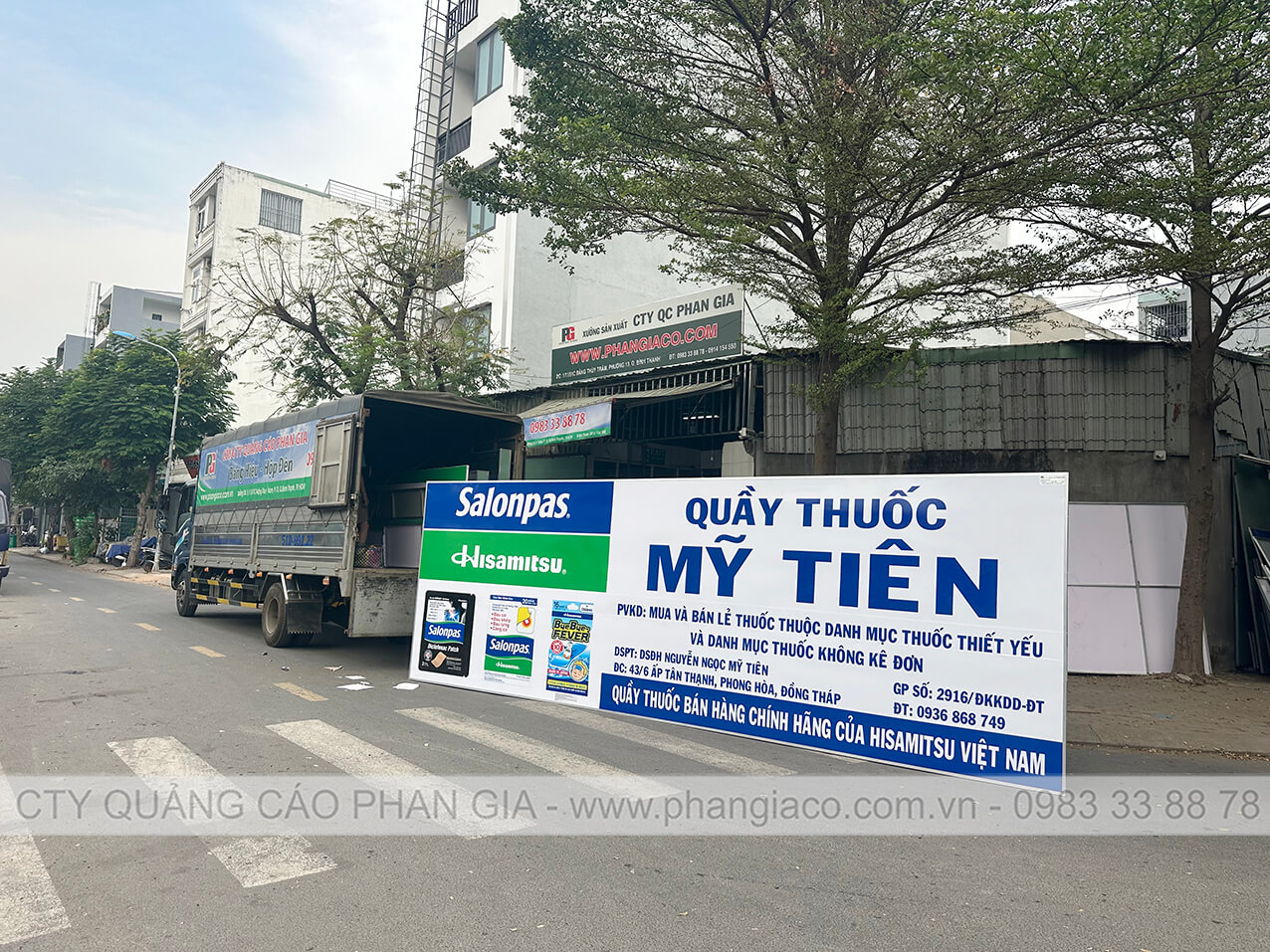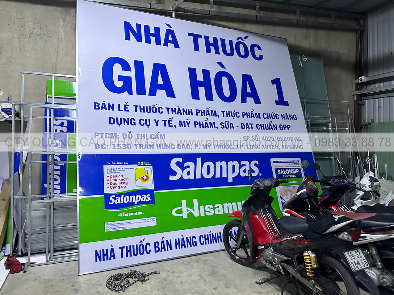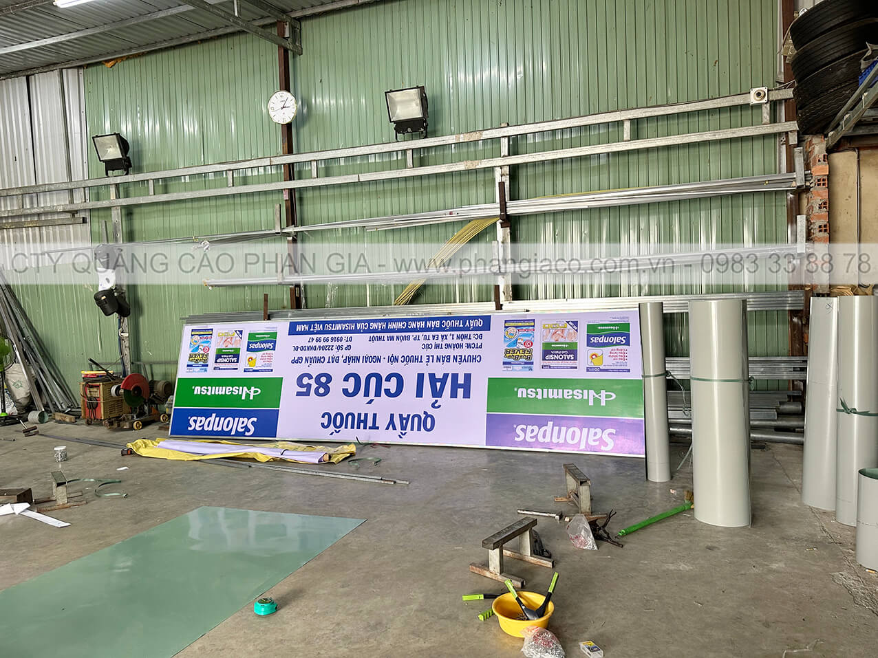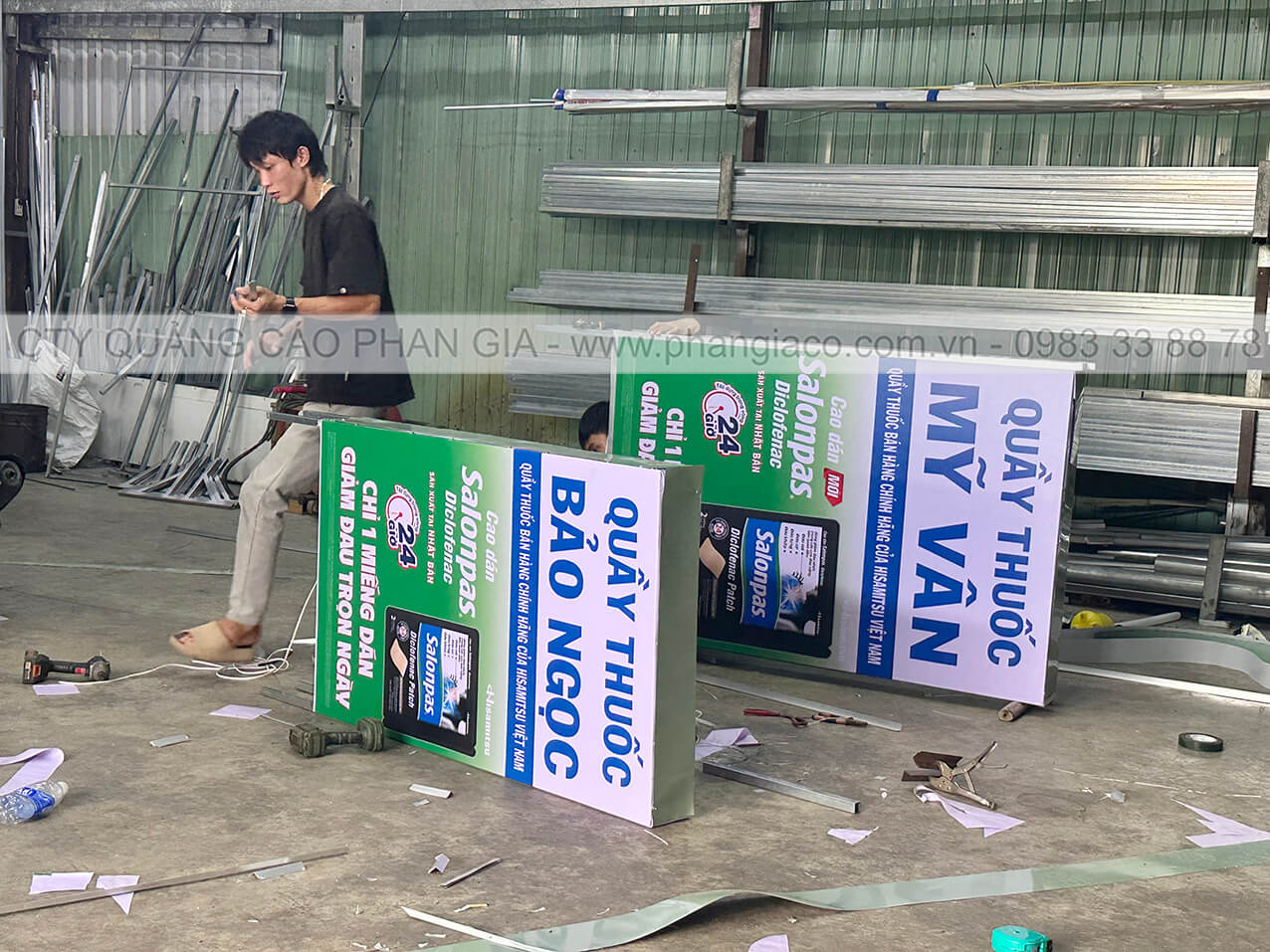 Hình ảnh thực tế bảng hiệu quảng cáo tôn decal được sản xuất hoàn thiện tại xưởng sản xuất Phan Gia vận chuyển đến cửa hàng lắp đặt