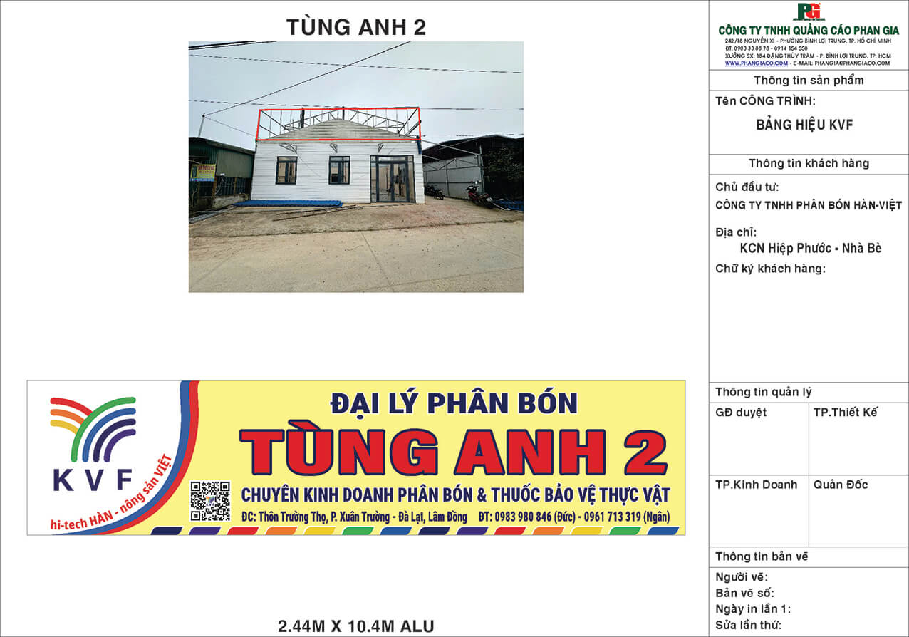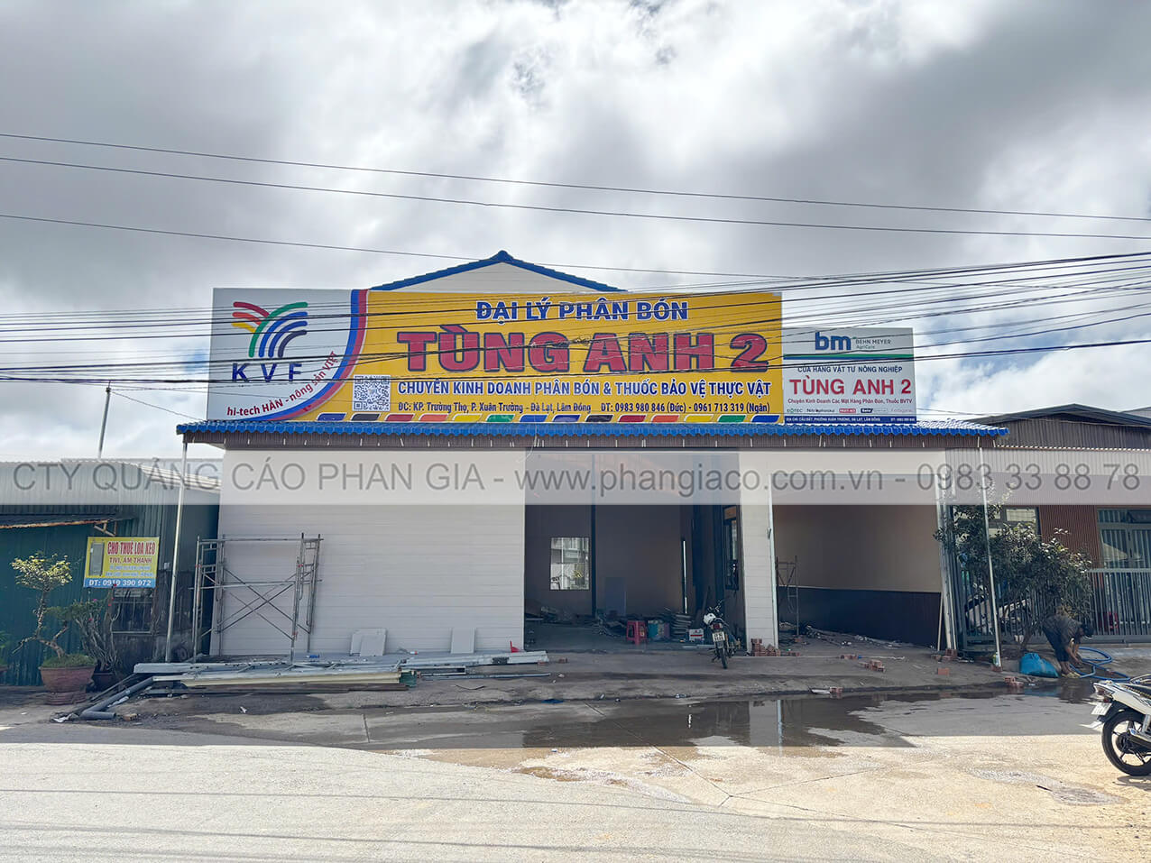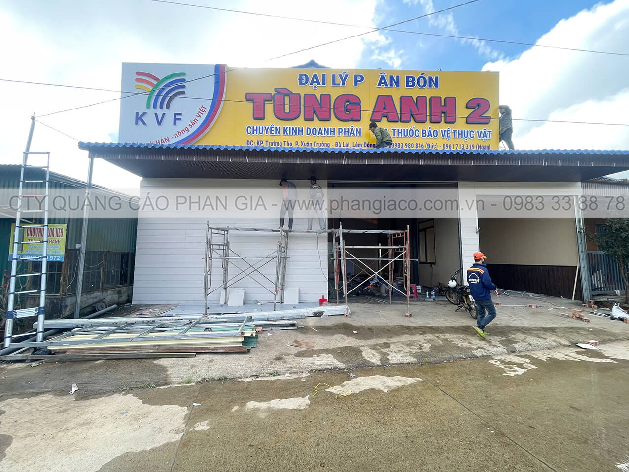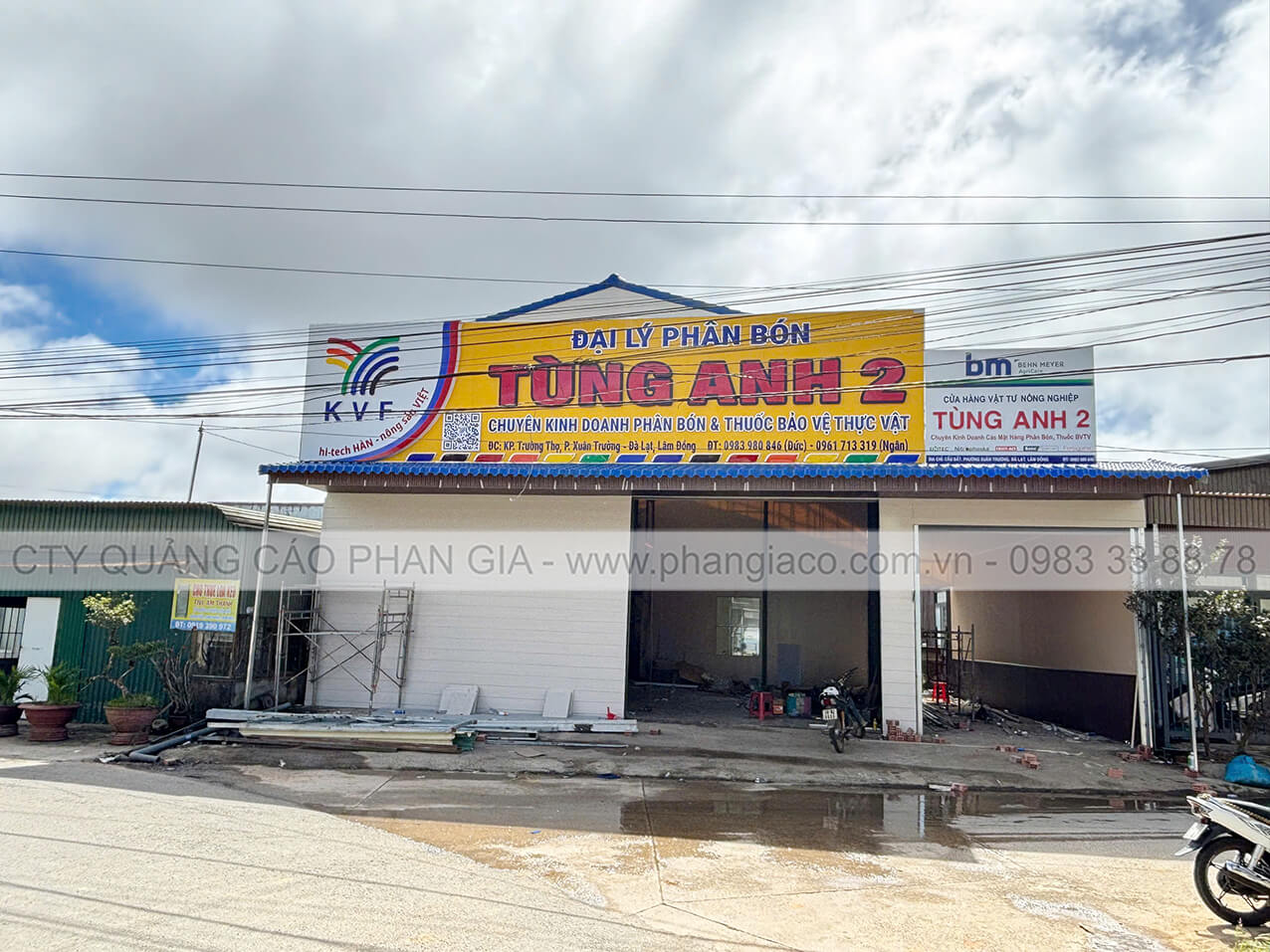 Bảng hiệu quảng cáo đại lý phân bón Tùng Anh 2 với quy cách bảng nhôm chữ nổi mica được quảng cáo Phan Gia sản xuất & lắp đặt hoàn thiện tại P. Xuân Trường - Đà Lạt, Lâm Đồng.