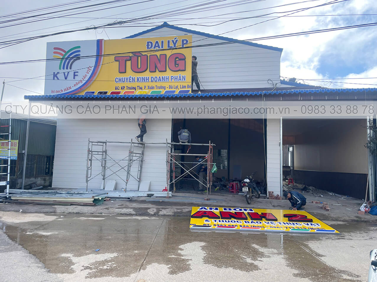 Bảng hiệu alu đại lý phân bón được thợ thi công Phan Gia lắp đặt hoàn thiện, nghiệm thu và bàn giao cho đại lý đưa vào sử dụng tại Đà Lạt, Lâm Đồng
