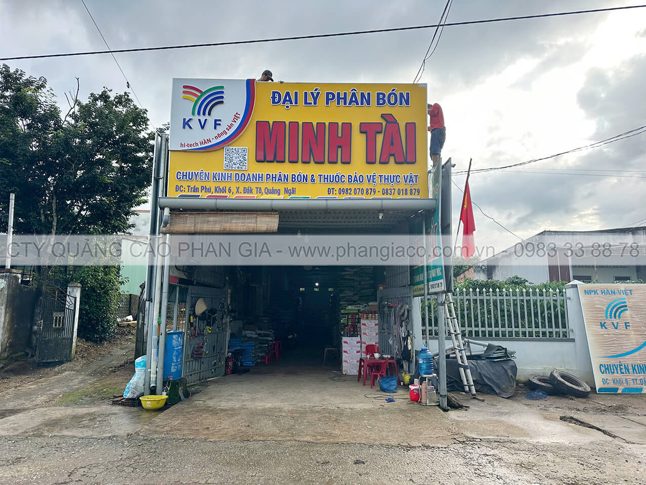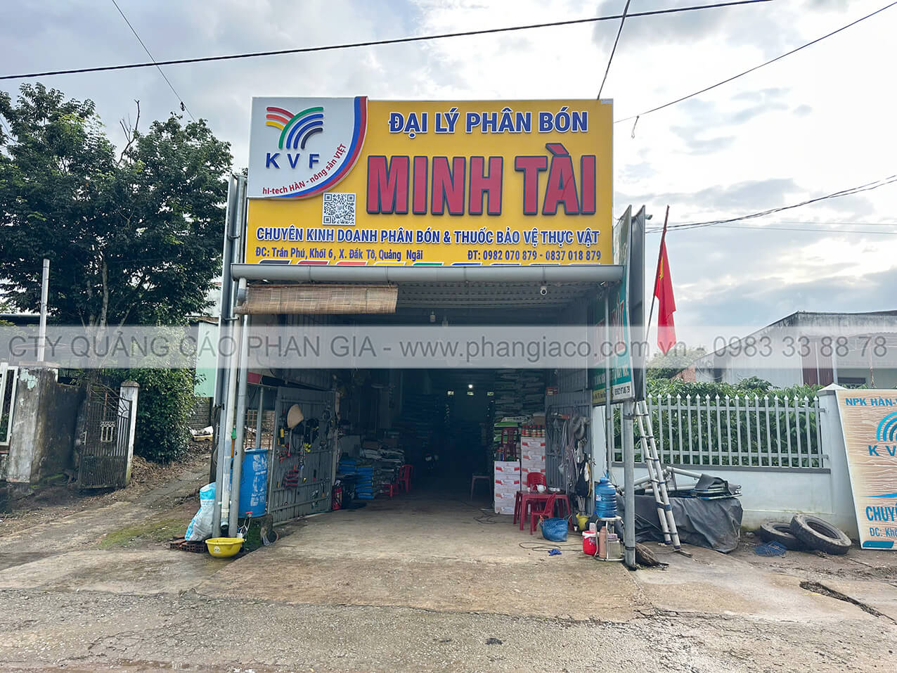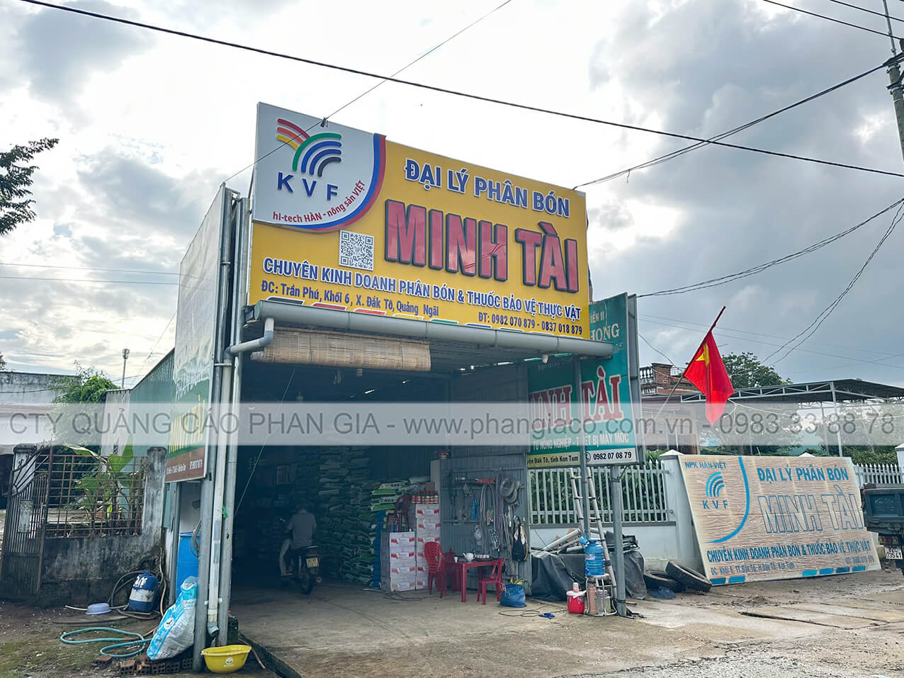 Bảng hiệu alu chữ nổi mica đại lý phân bón Minh Tài được Quảng Cáo Phan Gia sản xuất - vận chuyển - lắp đặt tại thị trấn Đắk Tô, Kon Tum (nay là xã Đắk Tô, tỉnh Quảng Ngãi).