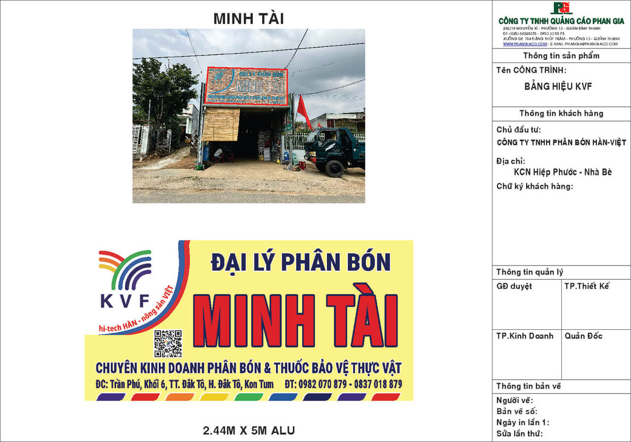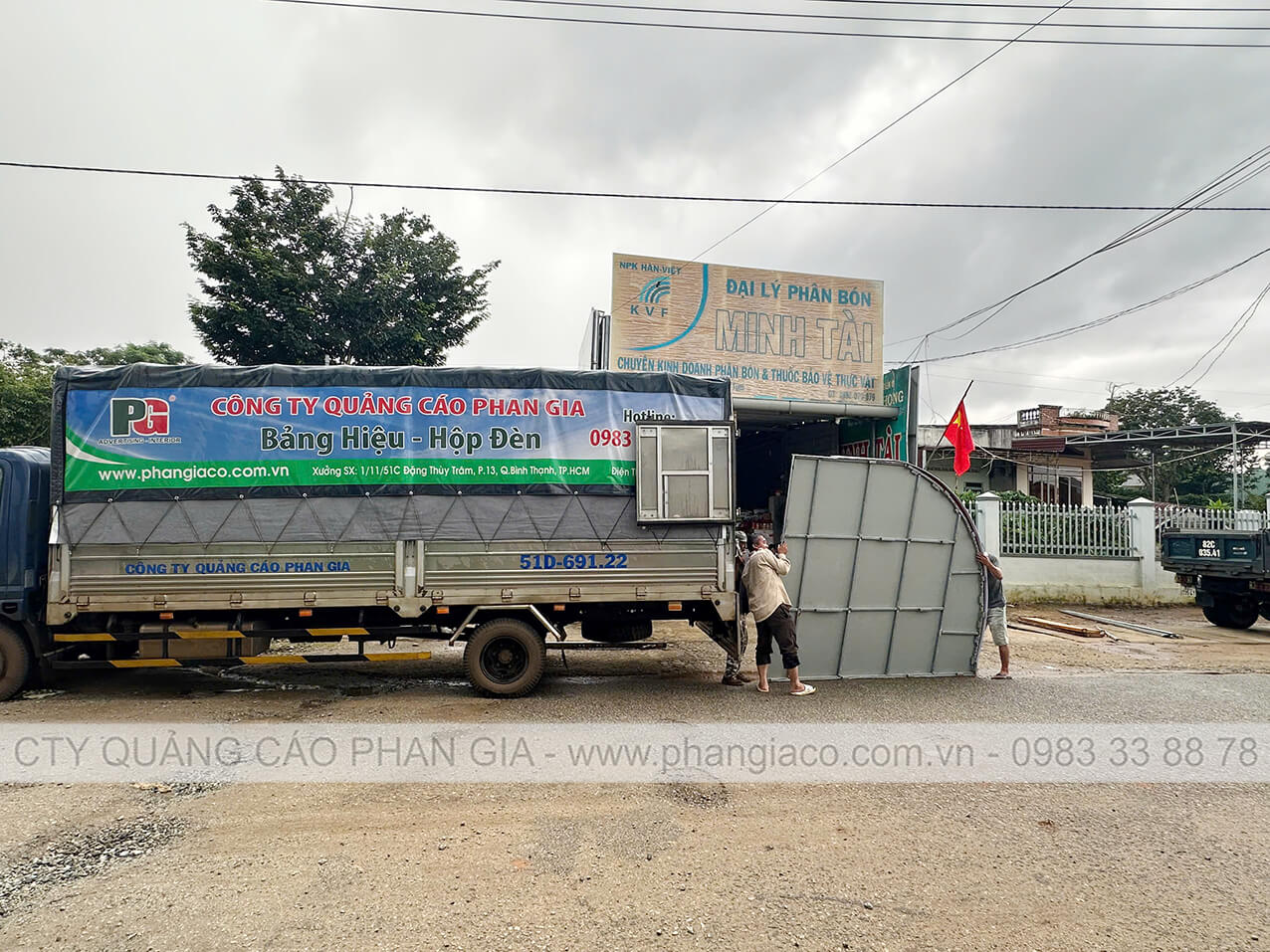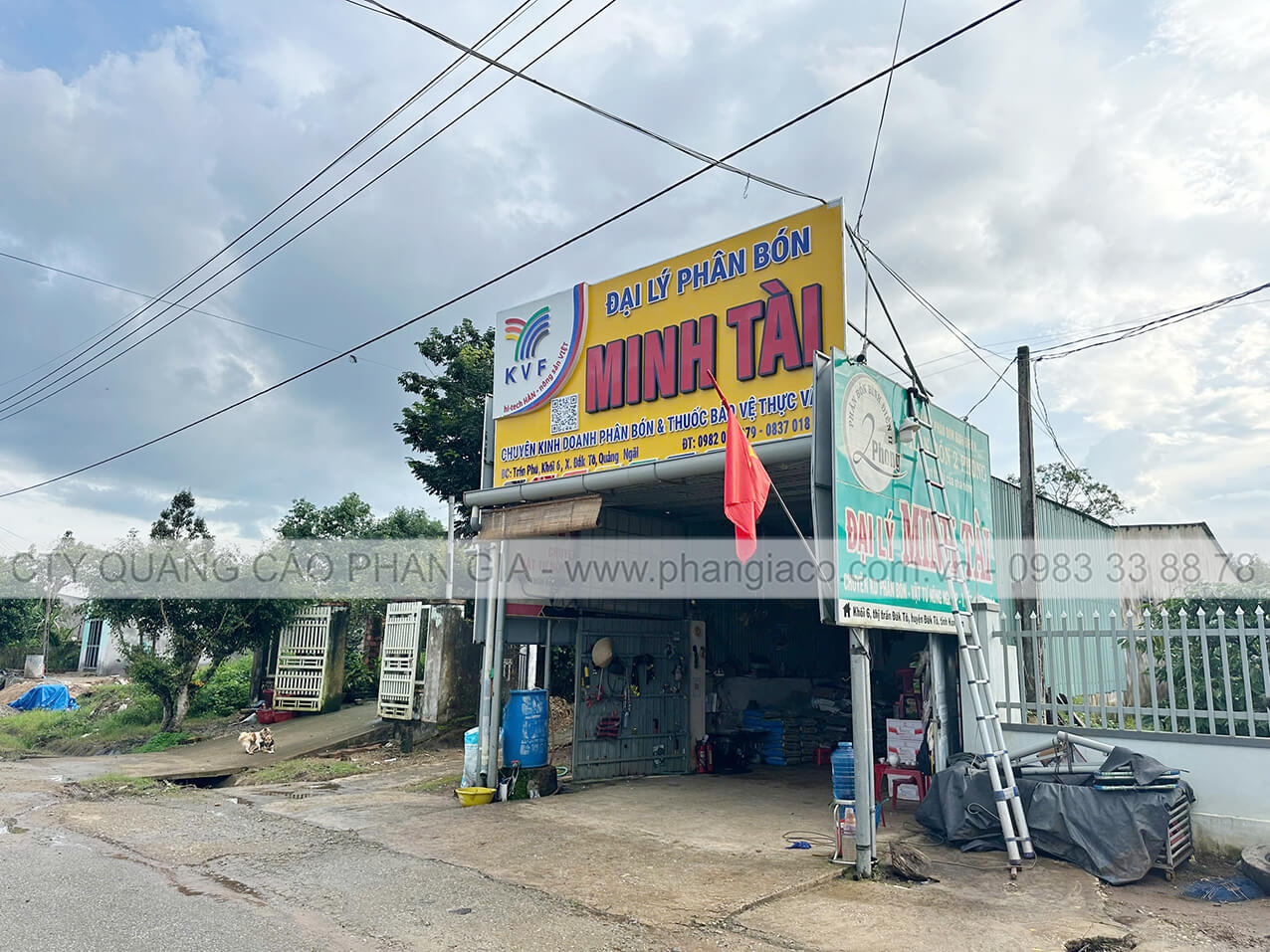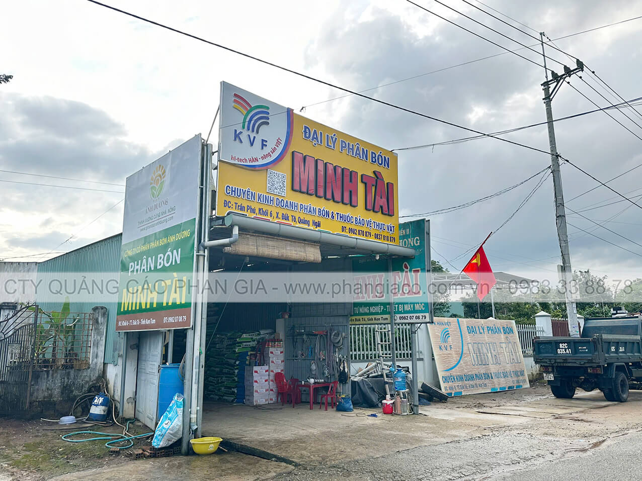Bảng hiệu alu chữ nổi mica đại lý phân bón Minh Tài được Quảng Cáo Phan Gia sản xuất - vận chuyển - lắp đặt tại thị trấn Đắk Tô, Kon Tum (nay là xã Đắk Tô, tỉnh Quảng Ngãi).