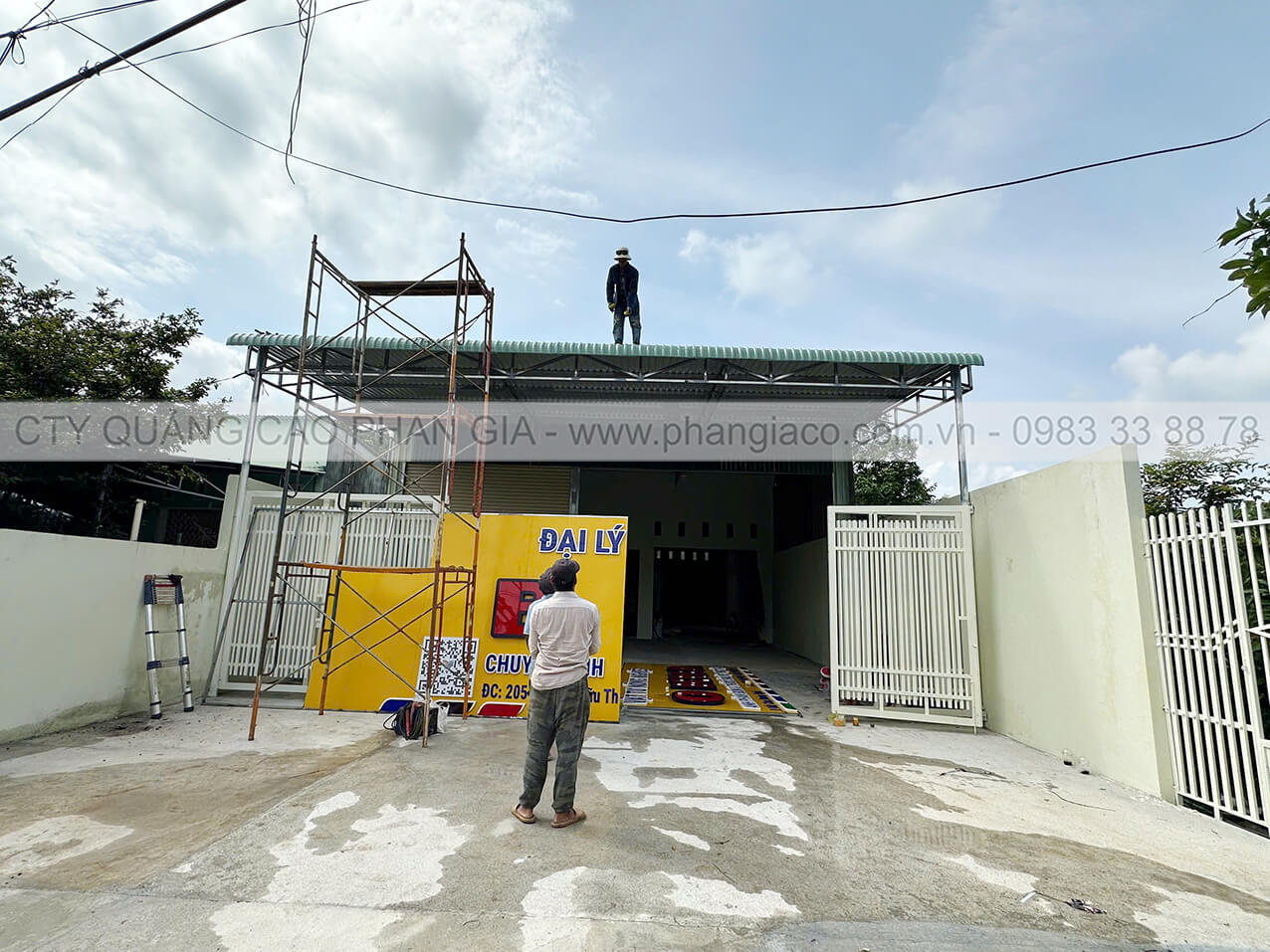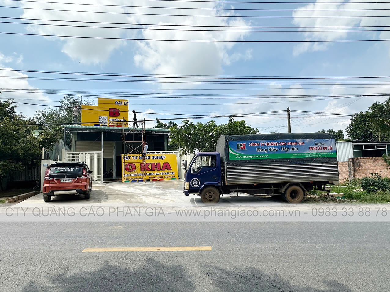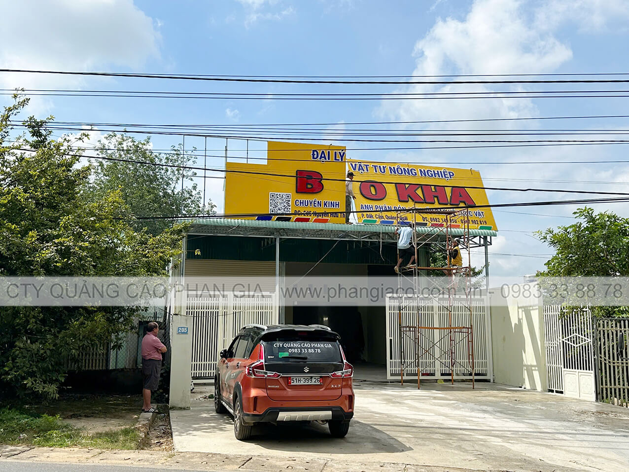 Bảng quảng cáo alu đại lý vật tư nông nghiệp tất cả hạng mục đều được sản xuất, gia công hoàn thiện tại xưởng Phan Gia từ ốp alu khung sắt, hàn chữ mica nổi, sơn chữ mica, vật tư gia cố bảng....