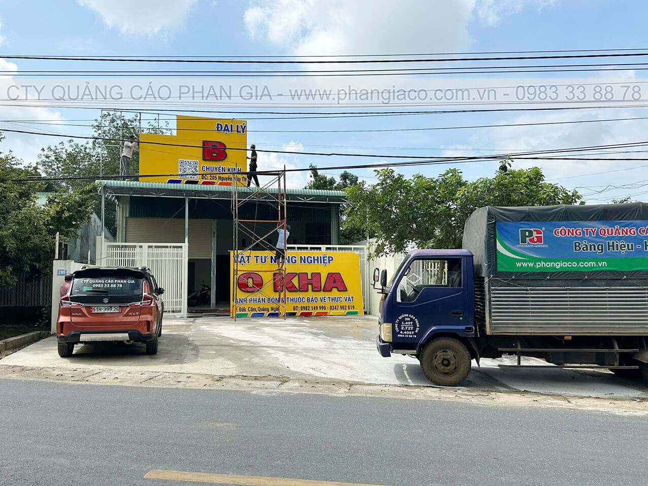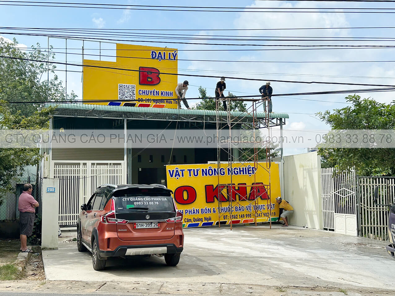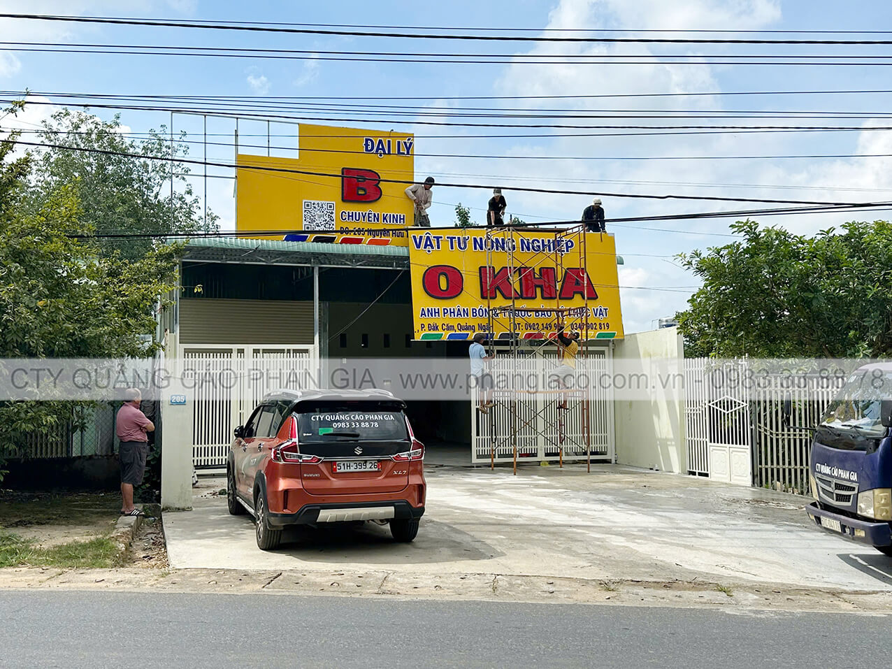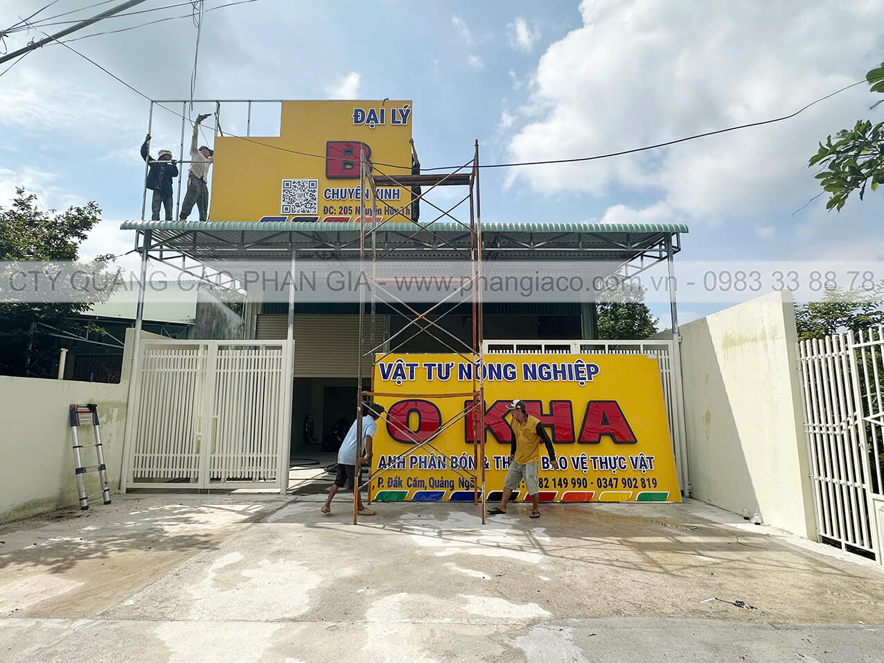 Bảng hiệu quảng cáo đại lý vật tư nông nghiệp Bảo Kha - đại lý phân bón cấp 1 NPK Hàn-Việt được Quảng Cáo Phan Gia khảo sát, thiết kế, sản xuất, vận chuyển & lắp đặt tại đường Nguyễn Hữu Thọ, TP. Kon Tum (nay là P. Đắk Cấm, tỉnh Quảng Ngãi). Một số hình ảnh thực tế tại đại lý của anh em thợ thi công Phan Gia.