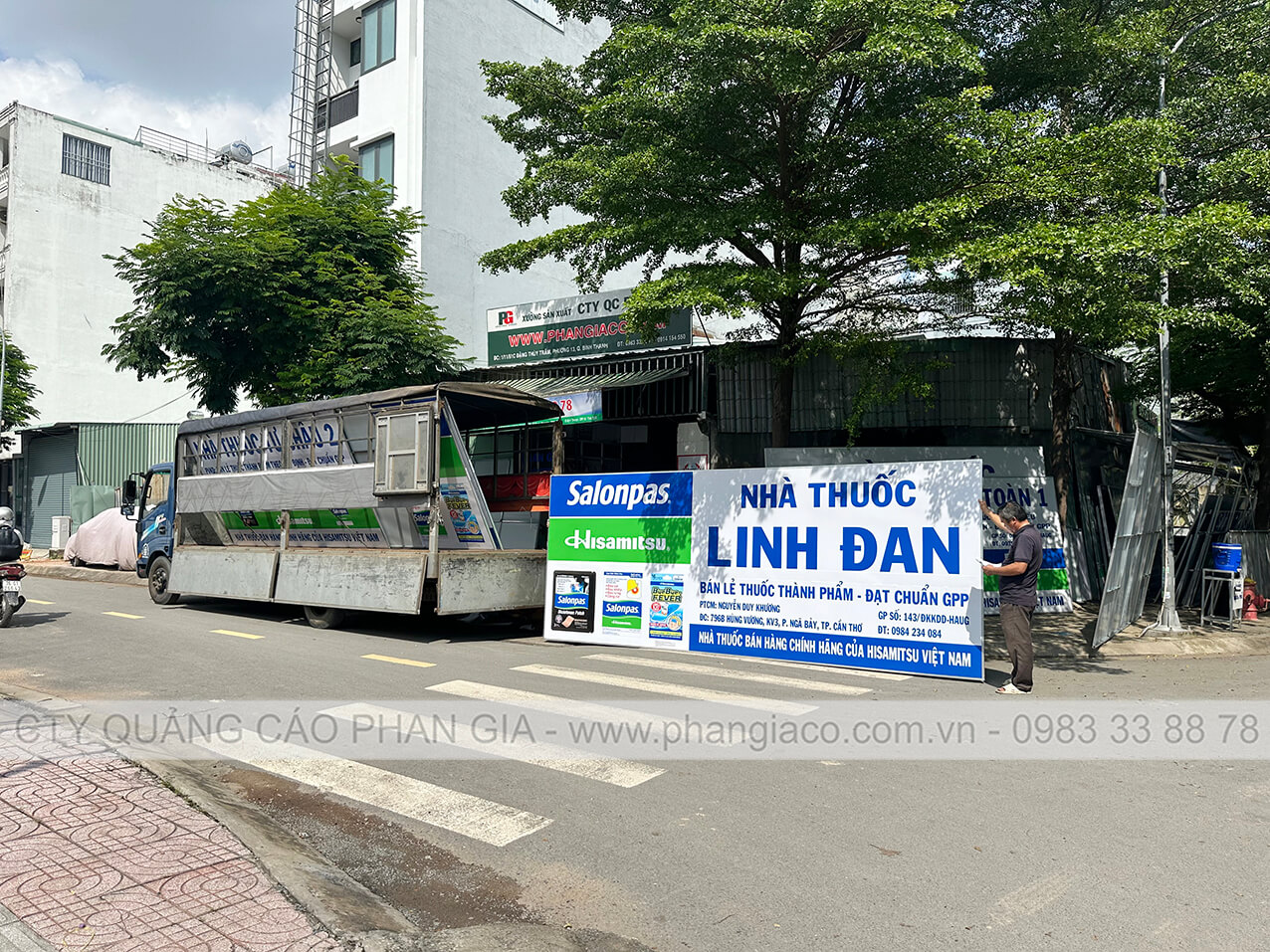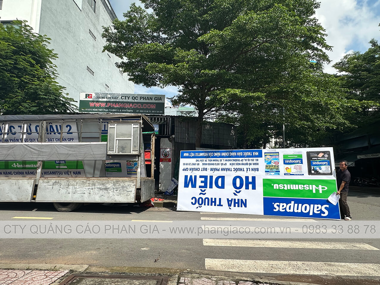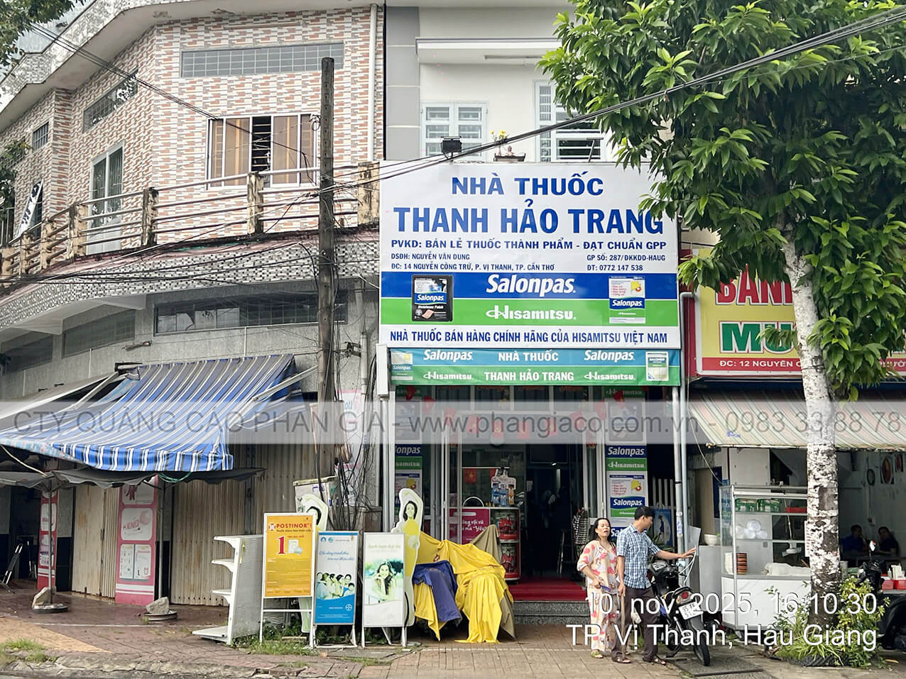 Bảng quảng cáo tôn dán decal nhà thuốc tại P. Long Mỹ, TP. Cần Thơ (thị xã Long Mỹ, Hậu Giang cũ) sản xuất hoàn thiện tại xưởng Phan Gia