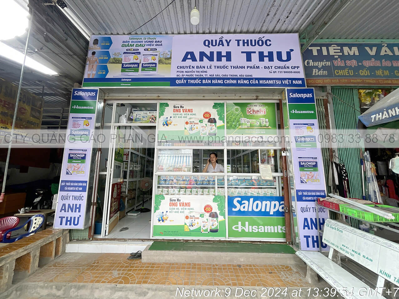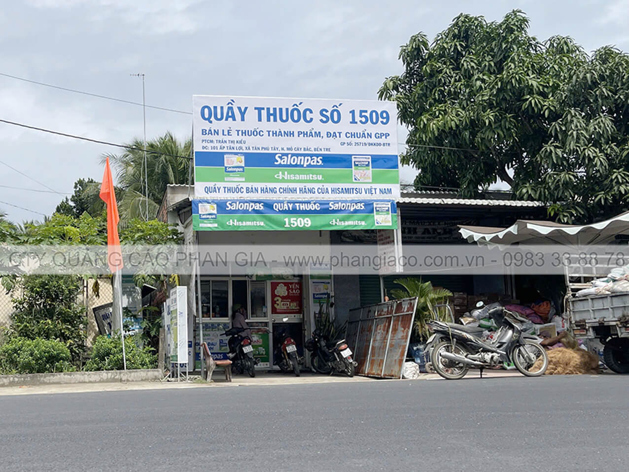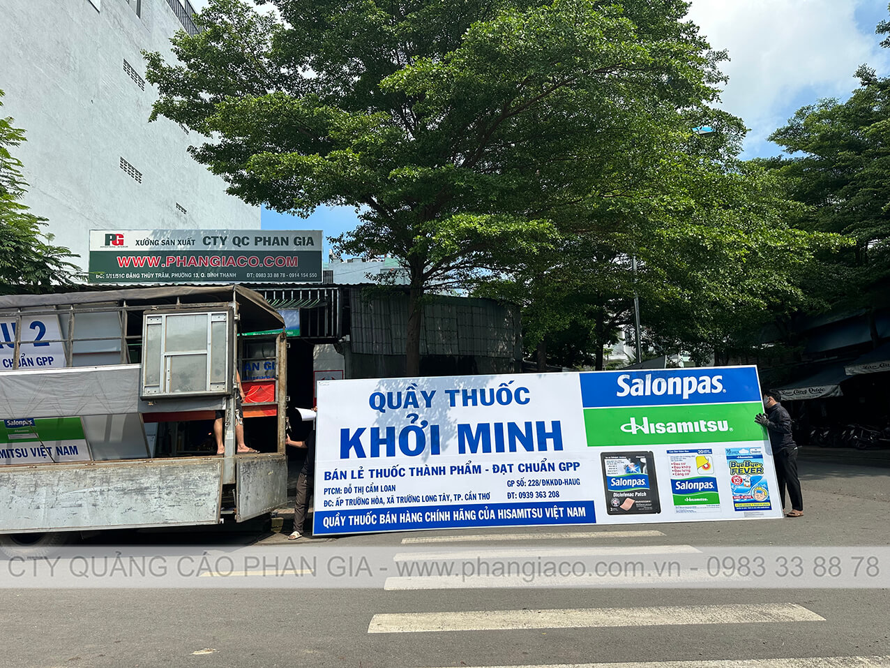 Bảng quảng cáo tôn dán decal nhà thuốc tại P. Long Mỹ, TP. Cần Thơ (thị xã Long Mỹ, Hậu Giang cũ) sản xuất hoàn thiện tại xưởng Phan Gia