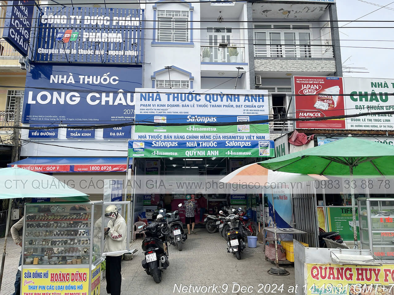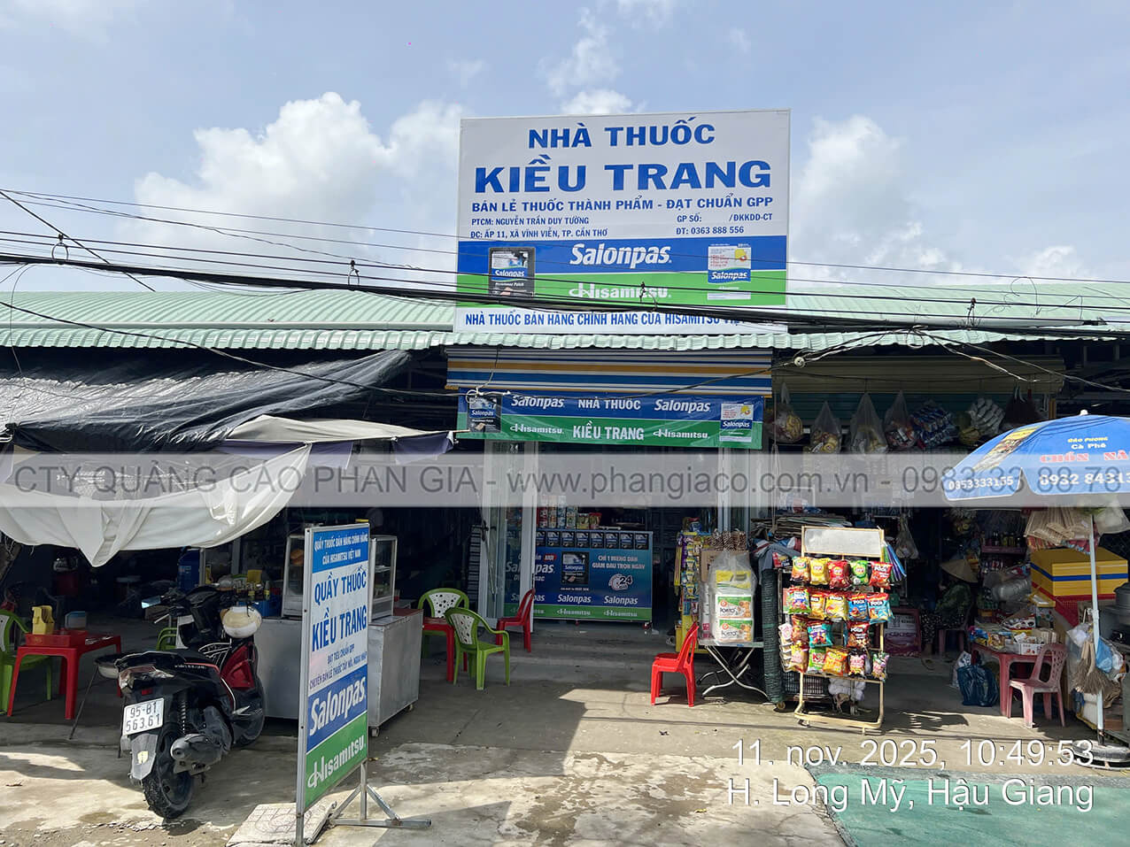 Chuỗi bảng hiệu quảng cáo với quy cách bảng quảng cáo tôn dán decal và chuỗi hộp đèn quảng cáo với chất liệu hiflex in UV được Quảng Cáo Phan Gia khảo sát, thiết kế, sản xuất, vận chuyển và lắp đặt tại các thành phố và huyện của tỉnh Hậu Giang (nay thuộc TP. Cần Thơ) tháng 11/2025. Một số hình ảnh tiêu biểu chuỗi bảng hiệu hộp đèn minh chứng năng lực sản xuất & lắp đặt của Phan Gia.