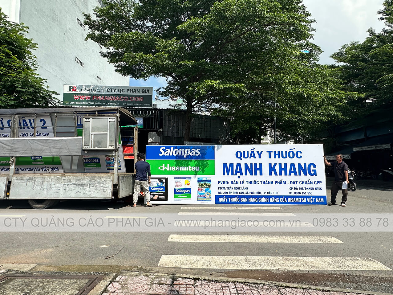 Hình ảnh bảng hiệu quảng cáo được thợ thi công Phan Gia lắp đặt hoàn thiện tại TP. Ngã Bảy, Hậu Giang