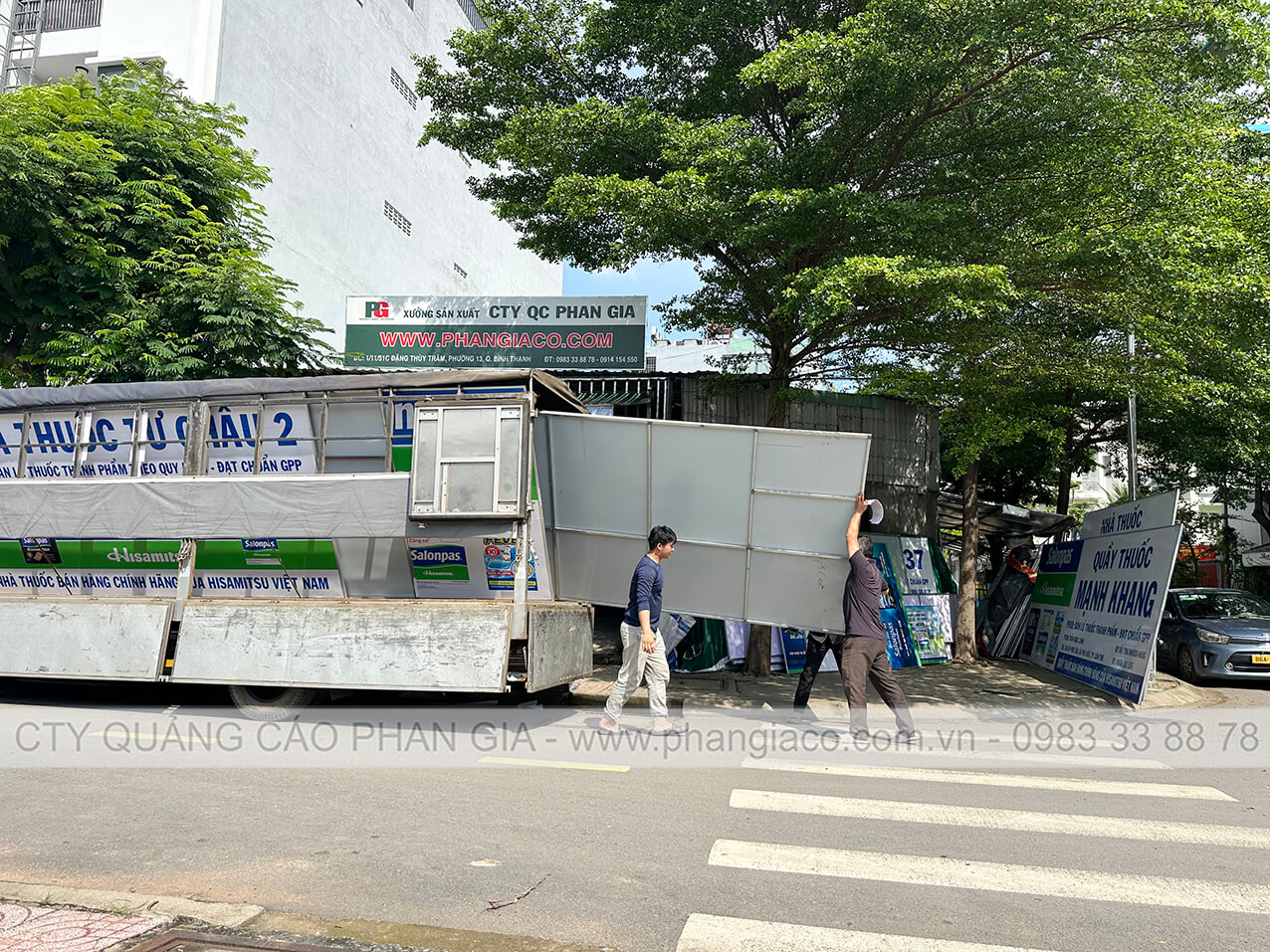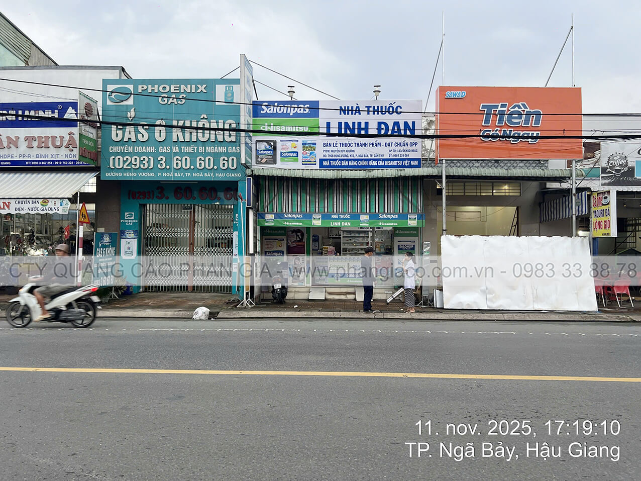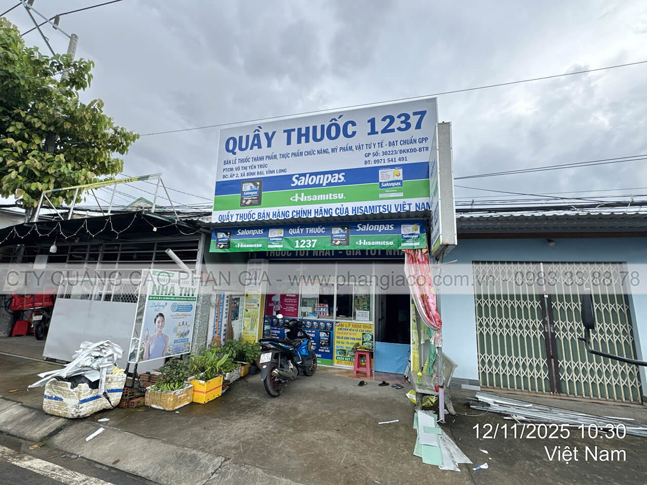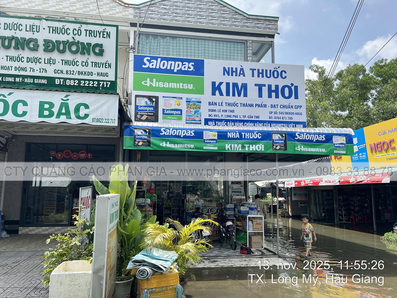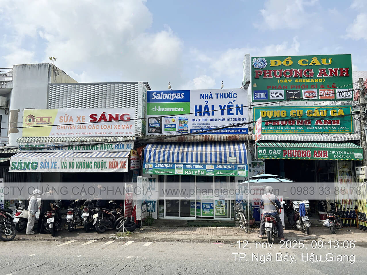 Bảng hiệu tôn decal được anh em thợ Phan Gia lắp đặt hoàn thiện, bàn giao cho nhà thuốc đưa vào sử dụng tại P. Ngã Bảy, TP. Cần Thơ (tỉnh Hậu Giang cũ)