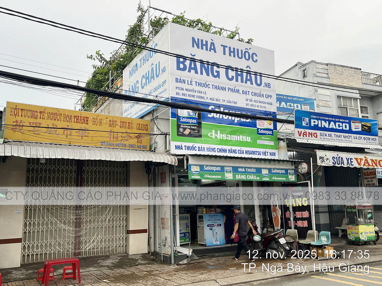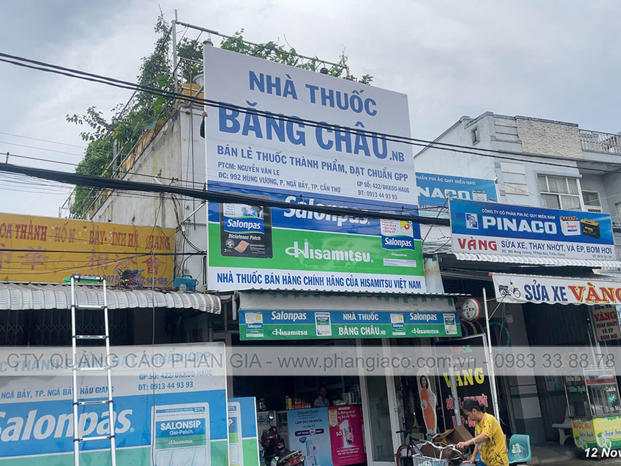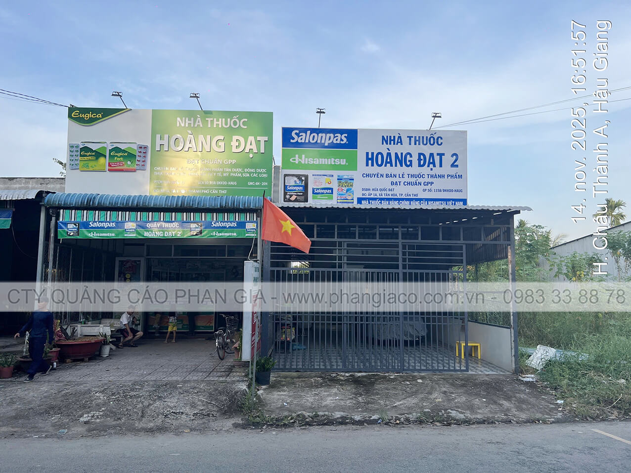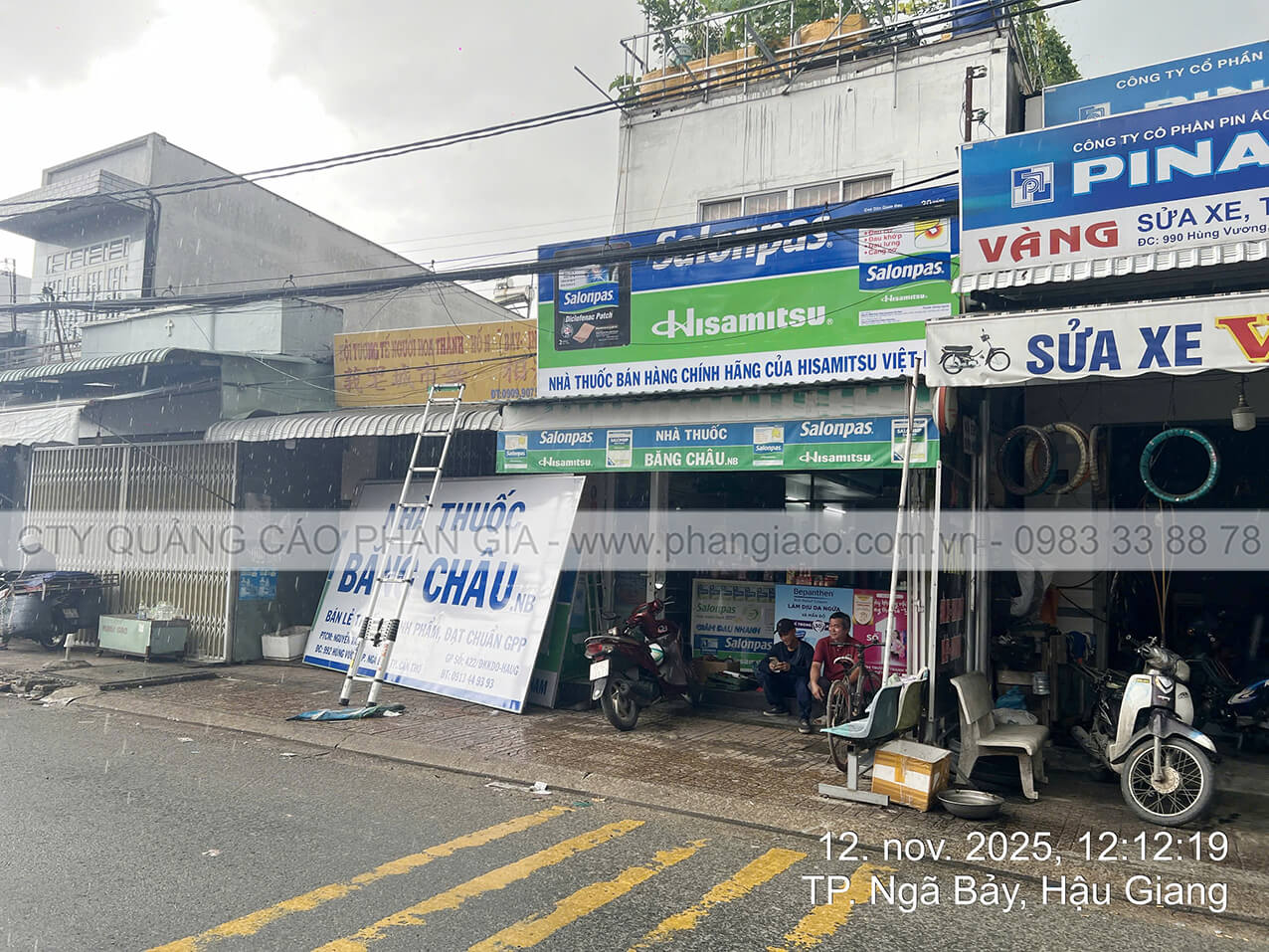 Chuỗi bảng hiệu quảng cáo tole decal với quy cách kỹ thuật khung sắt tôn dán decal được Quảng Cáo Phan Gia sản xuất - vận chuyển & lắp đặt tại các phường và xã của TP. Cần Thơ (thuộc tỉnh Hậu Giang cũ) tại các điểm bán hàng chính hãng của hãng dược phẩm Hisamitsu Việt Nam.