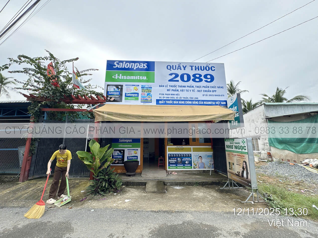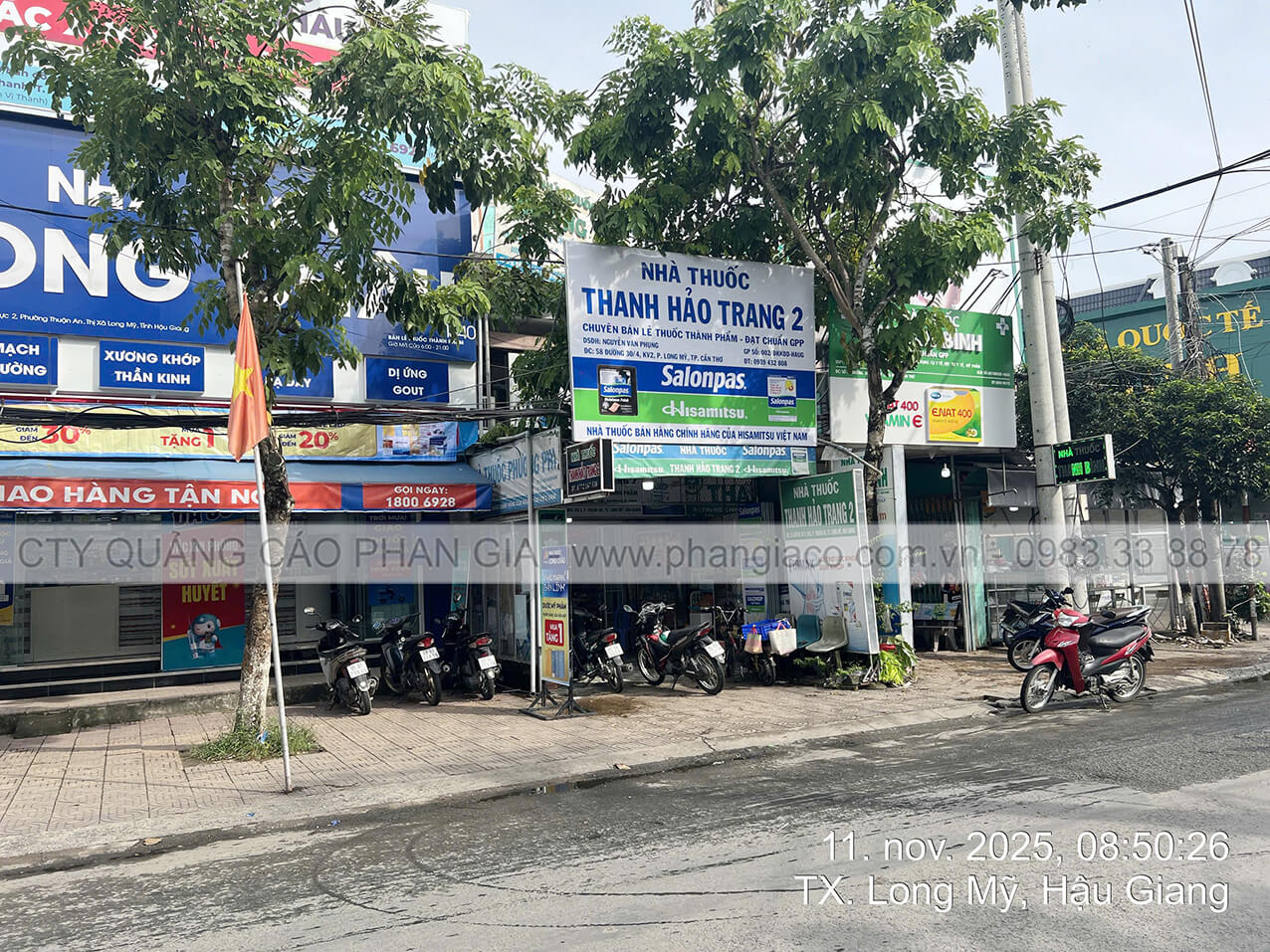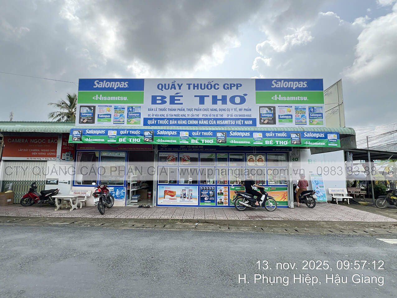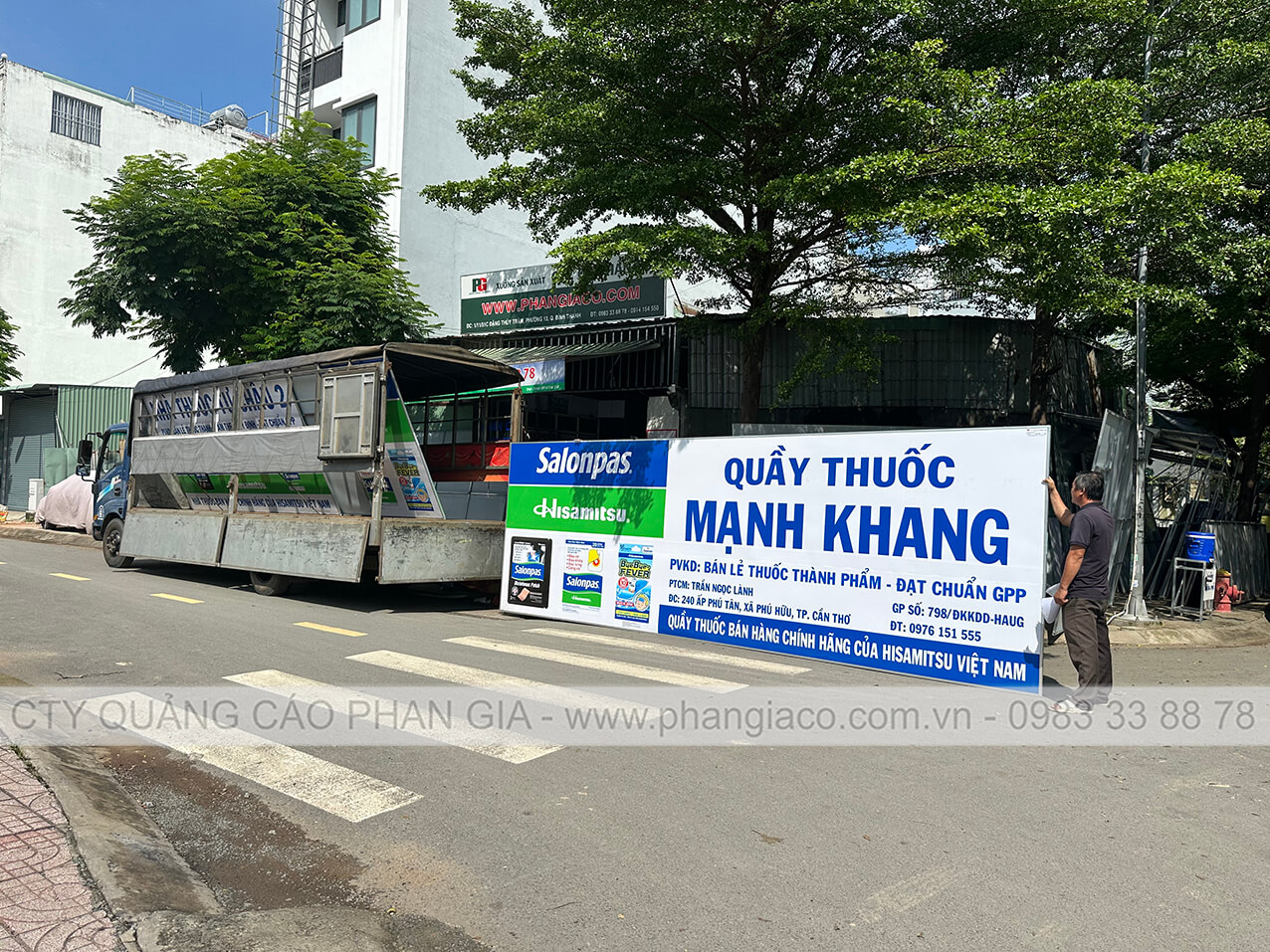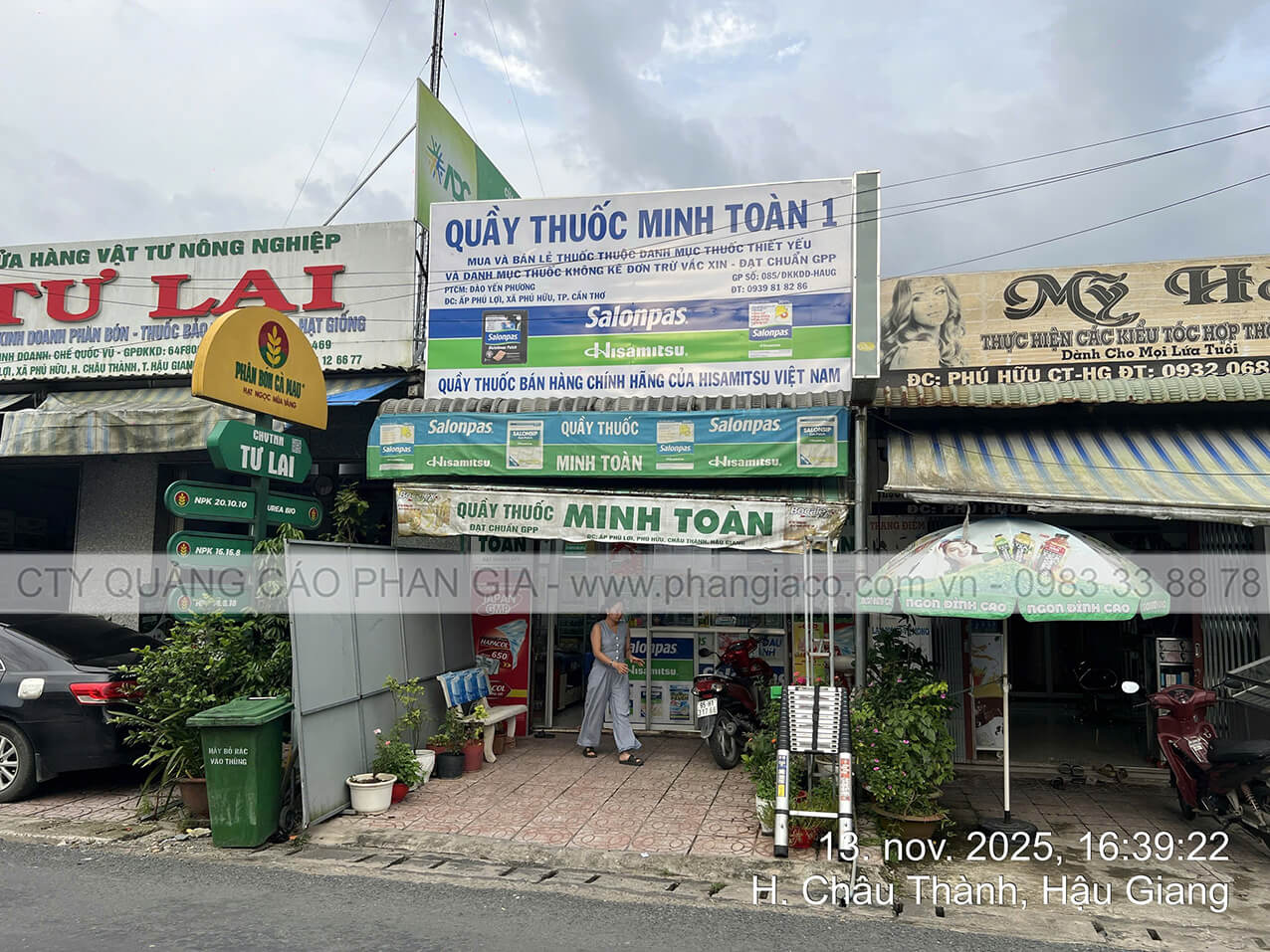 Chuỗi bảng hiệu quảng cáo tole decal với quy cách kỹ thuật khung sắt tôn dán decal được Quảng Cáo Phan Gia sản xuất - vận chuyển & lắp đặt tại các phường và xã của TP. Cần Thơ (thuộc tỉnh Hậu Giang cũ) tại các điểm bán hàng chính hãng của hãng dược phẩm Hisamitsu Việt Nam.