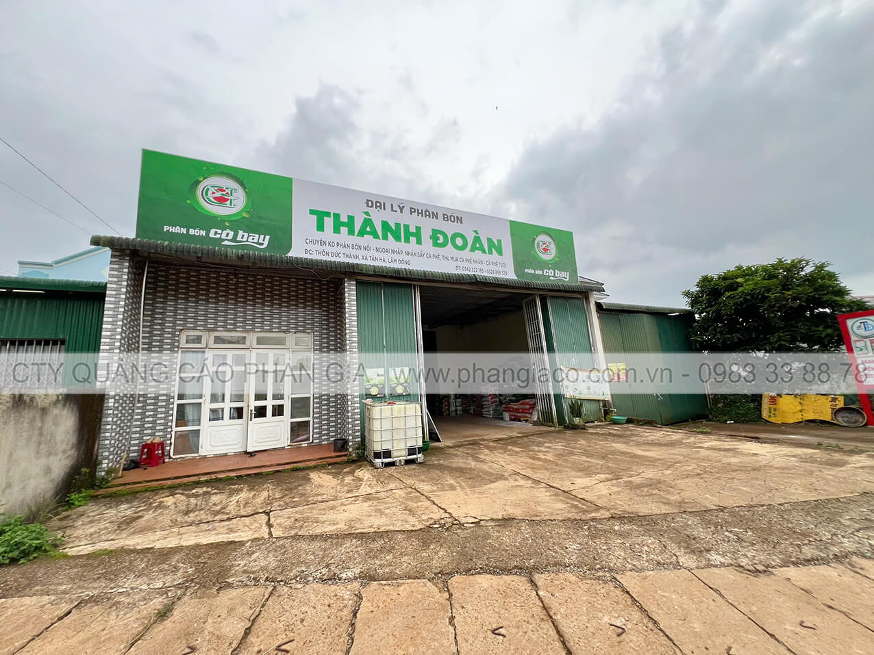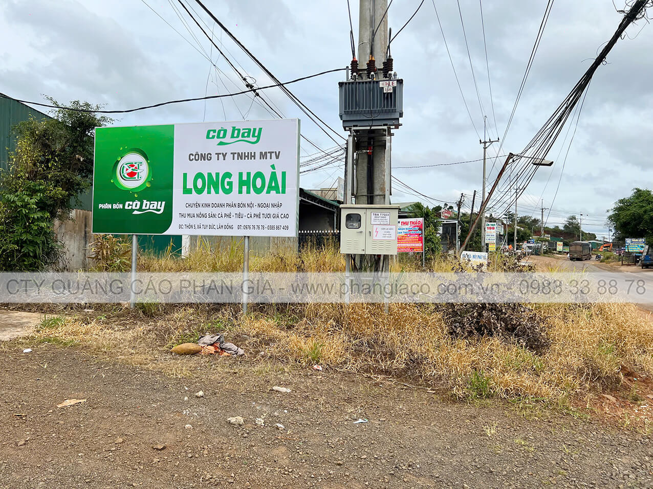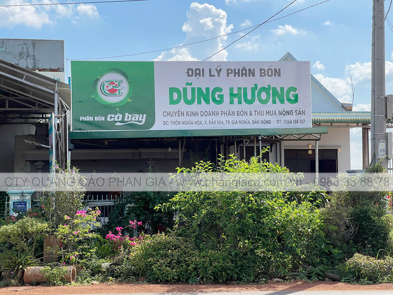 Bảng hiệu tôn dán decal 02 mặt nhà phân phối phân bón lắp đặt tại xã Tuy Đức, Lâm Đồng (huyện Tuy Đức, Đắk Nông cũ)