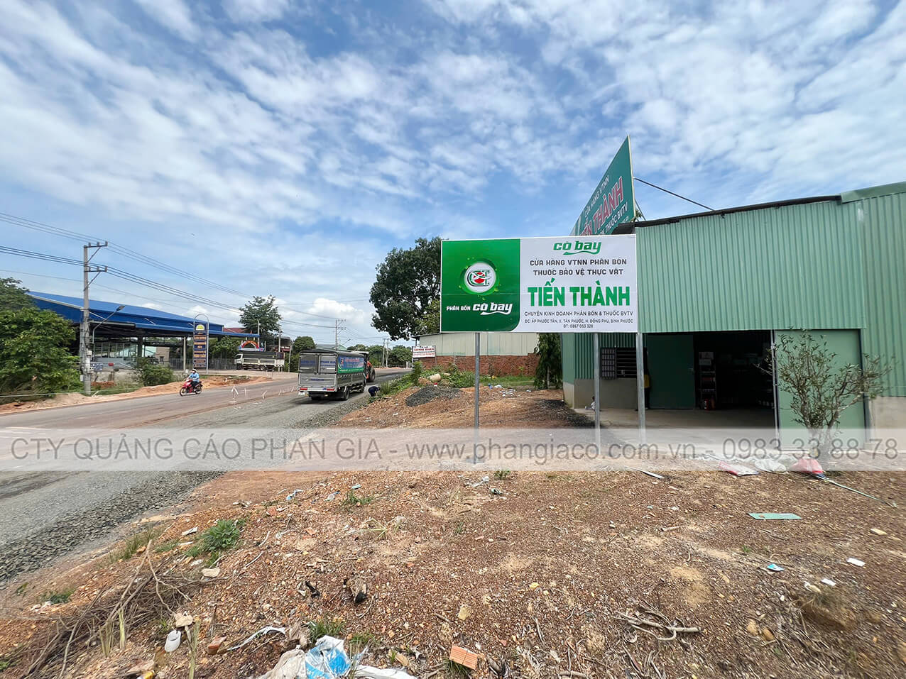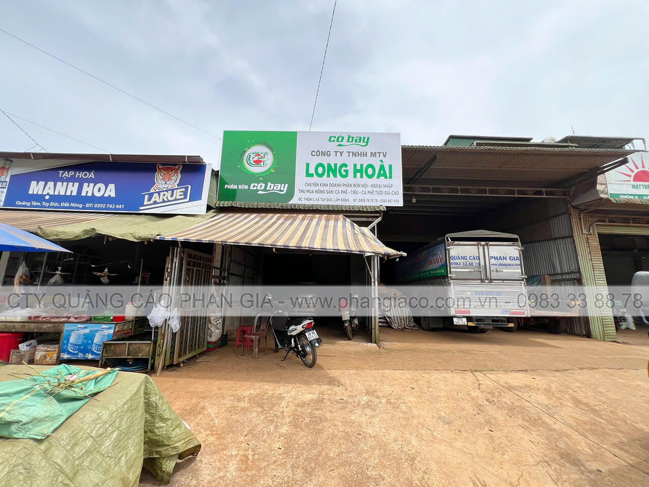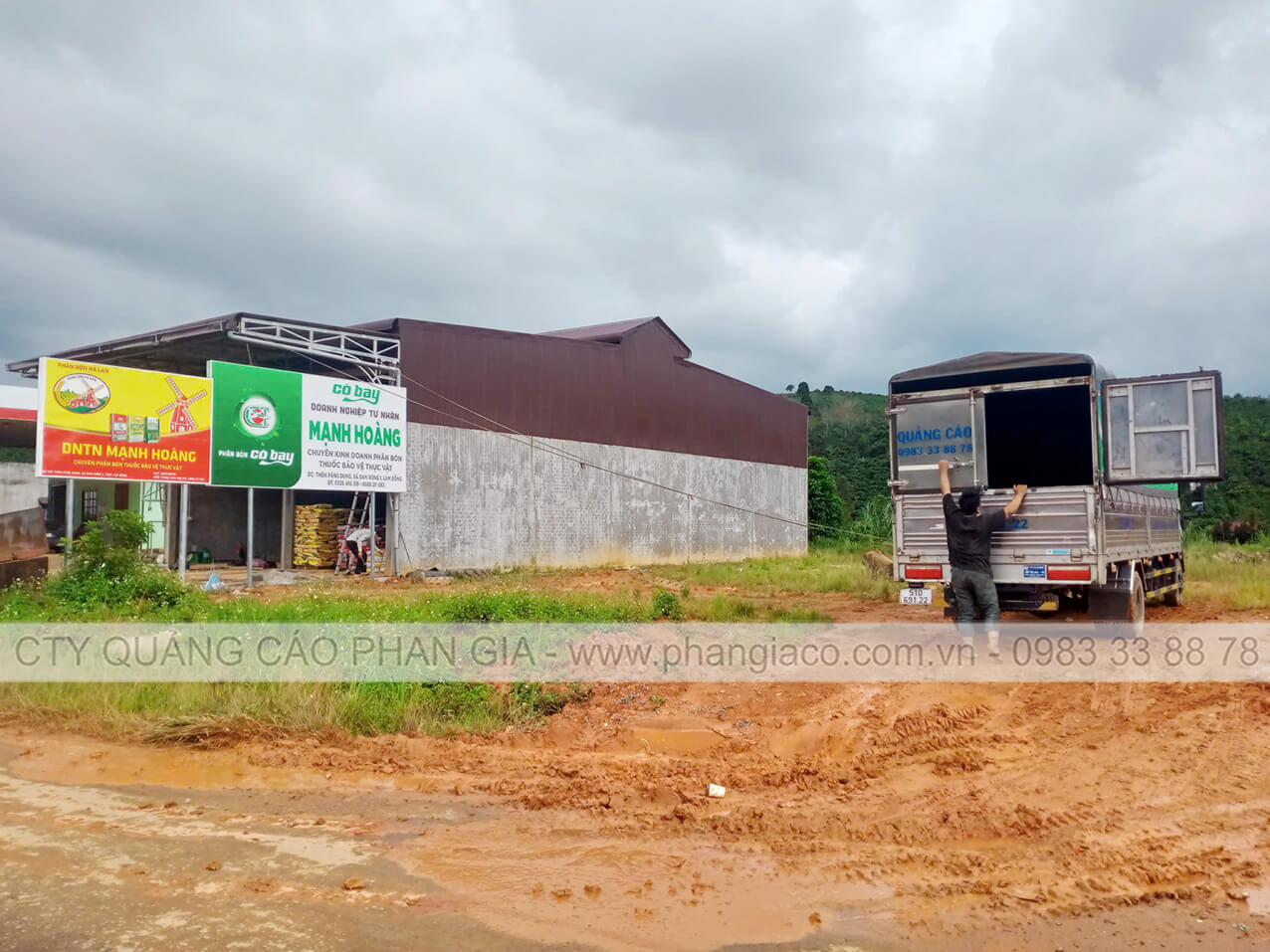 Bảng hiệu tôn dán decal 02 mặt nhà phân phối phân bón lắp đặt tại xã Tuy Đức, Lâm Đồng (huyện Tuy Đức, Đắk Nông cũ)
