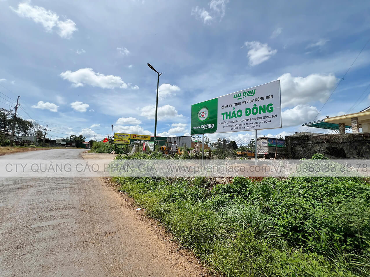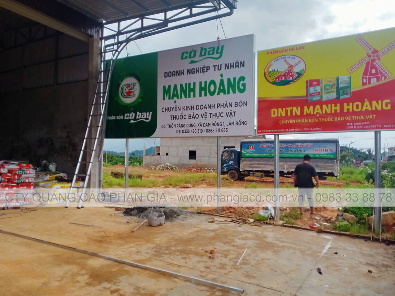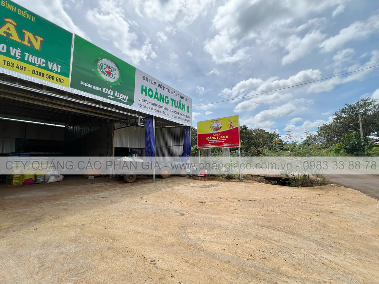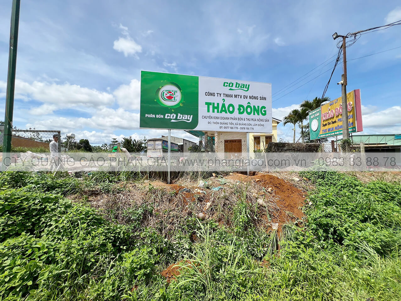 Bảng hiệu tôn decal cửa hàng vật tư nông nghiệp 02 mặt dựng trụ phi 90 lắp đặt tại xã Quảng Sơn, Lâm Đồng (huyện Đắk Glong, Đắk Nông cũ)