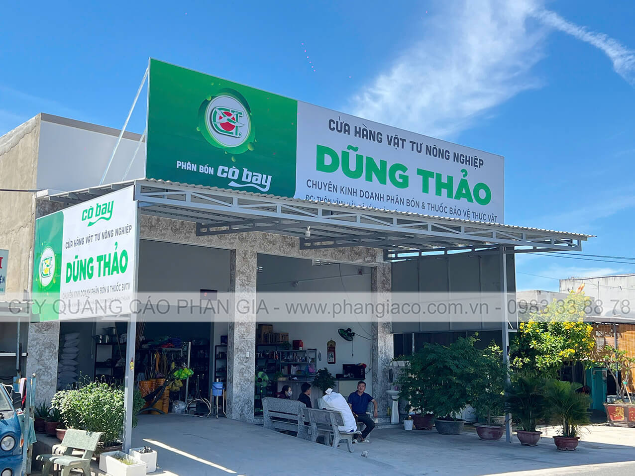 Chuỗi bảng hiệu quảng cáo tôn decal của Công ty Cổ Phần Phân Bón & Hóa Chất Cần Thơ với nhãn hàng NPK Cò Bay được Quảng Cáo Phan Gia khảo sát, thiết kế, sản xuất, vận chuyển và lắp đặt tại các cửa hàng phân bón, đại lý phân bón, cửa hàng vật tư nông nghiệp, đại lý vật tư nông nghiệp.