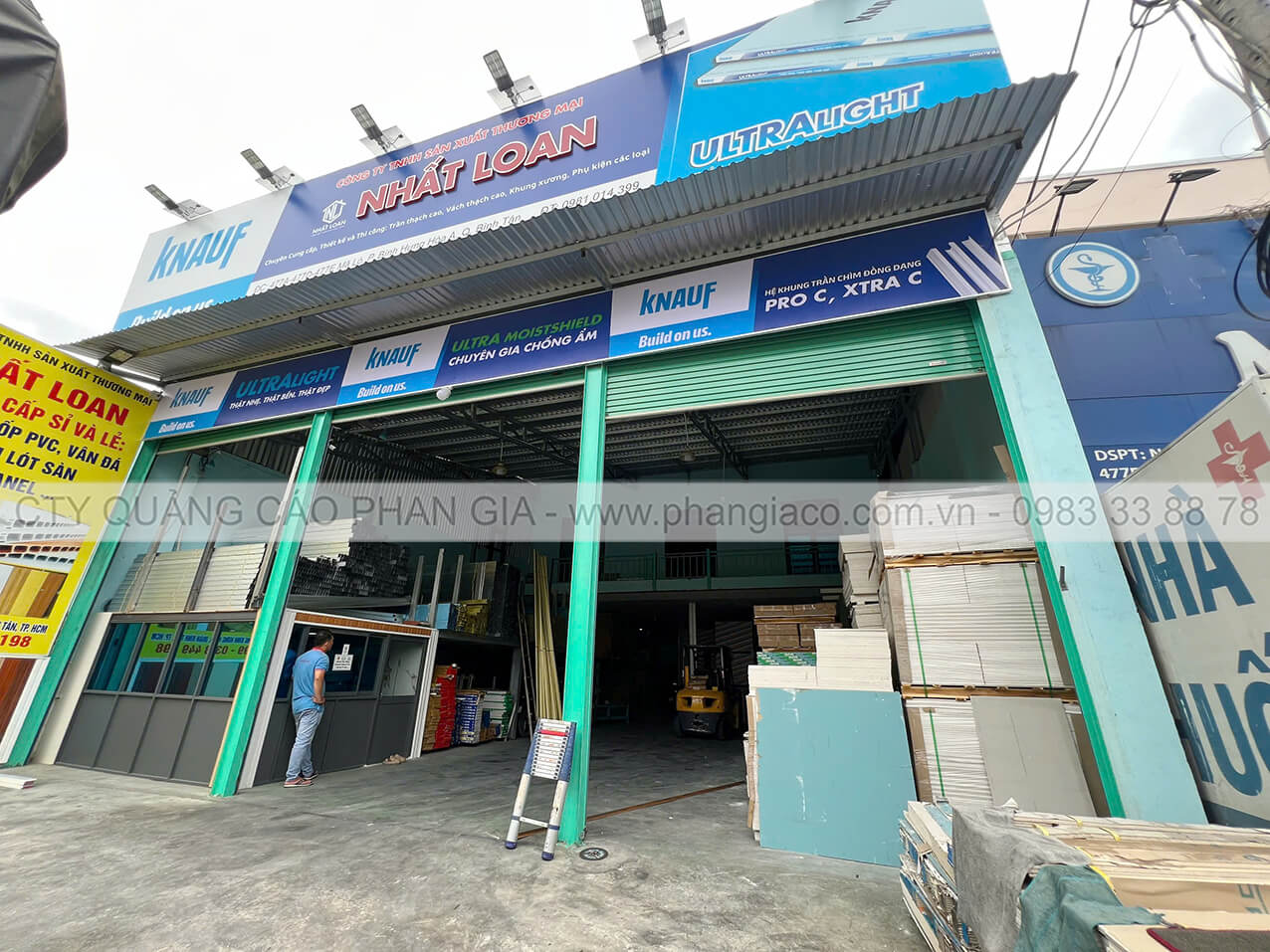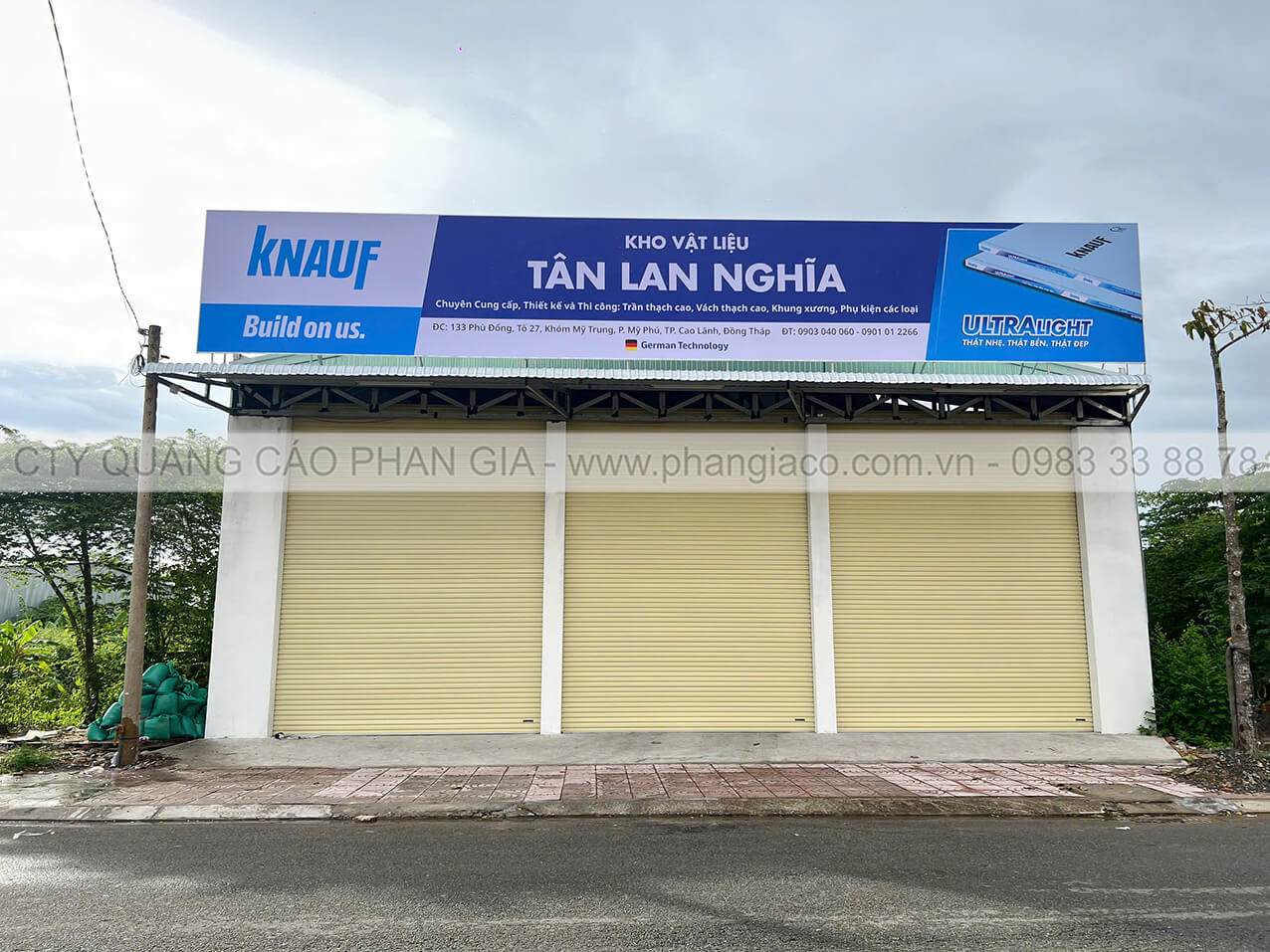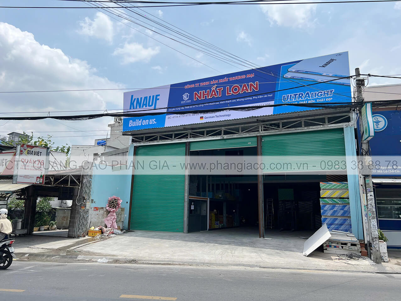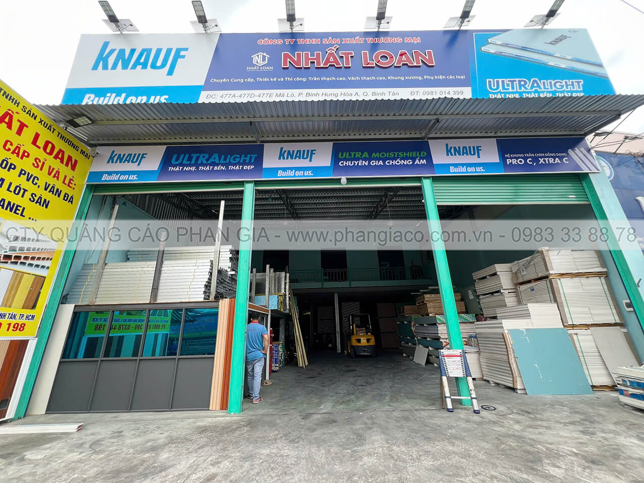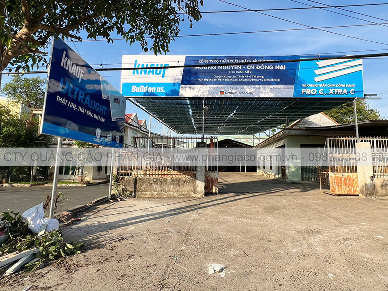 Bảng hiệu quảng cáo hiflex ốp tole nhà phân phối thạch cao Knauf được Phan Gia lắp đặt tại tỉnh Đồng Nai