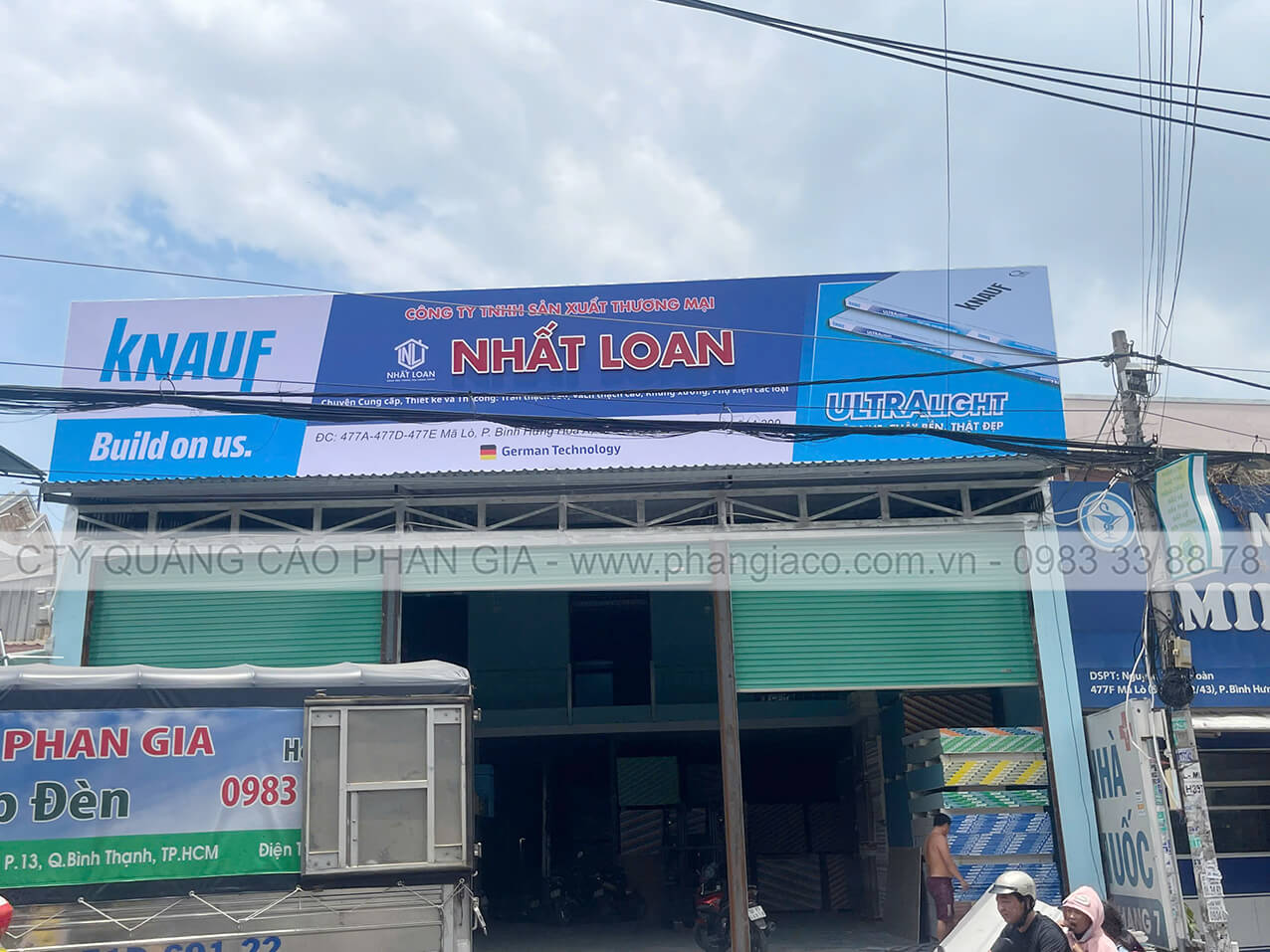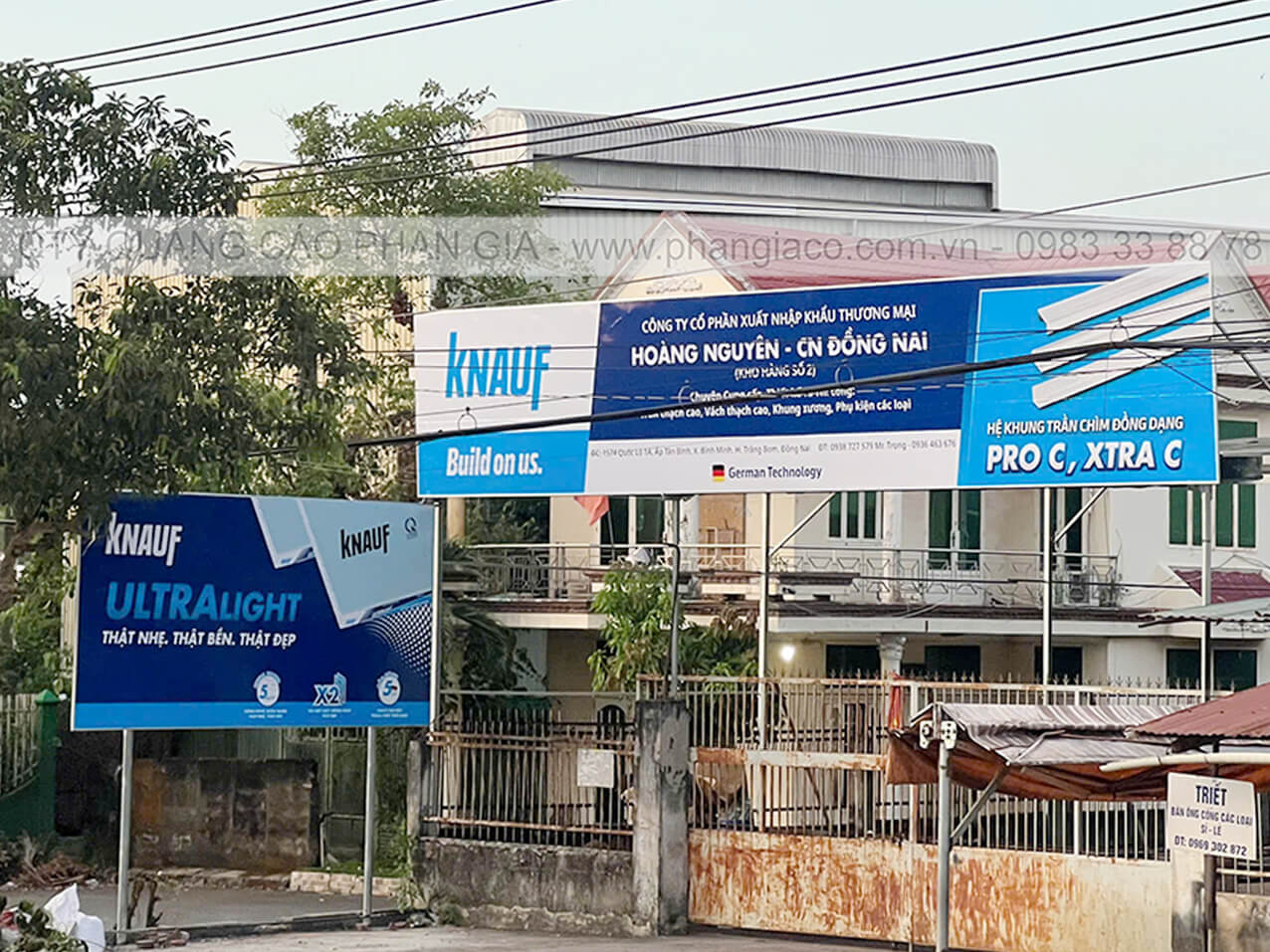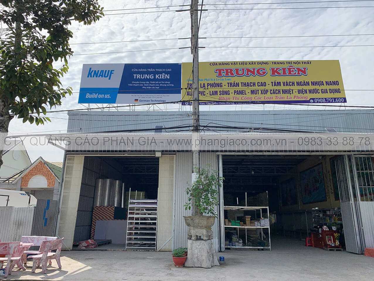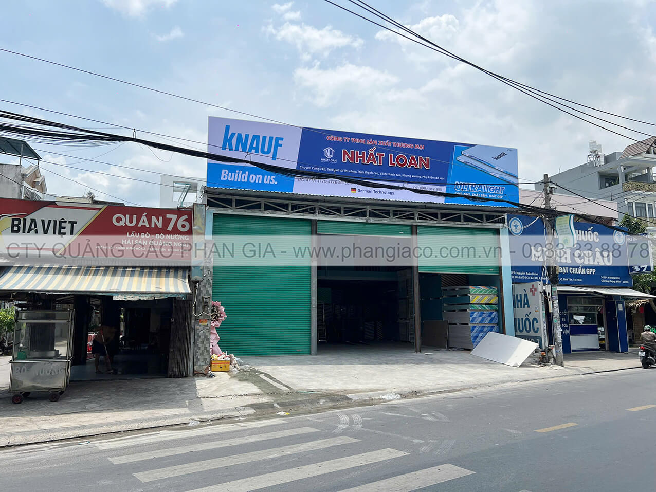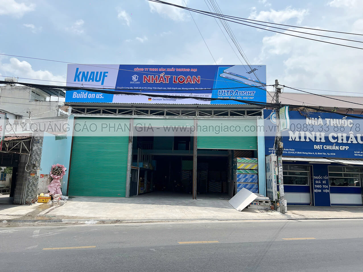 Bảng hiệu quảng cáo hiflex ốp tole nhà phân phối thạch cao Knauf được Phan Gia lắp đặt tại tỉnh Đồng Nai