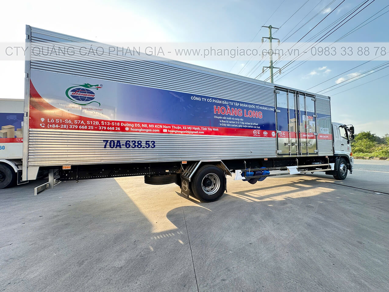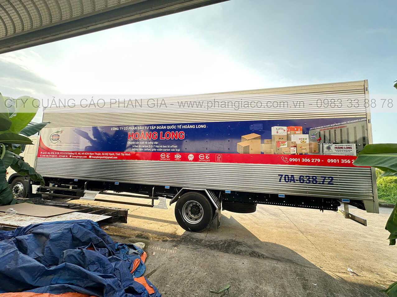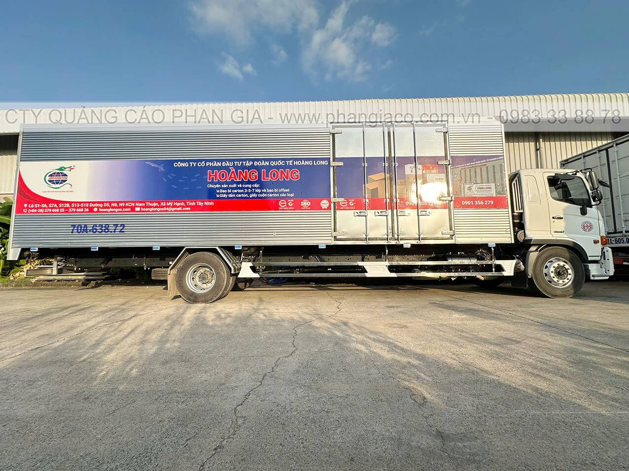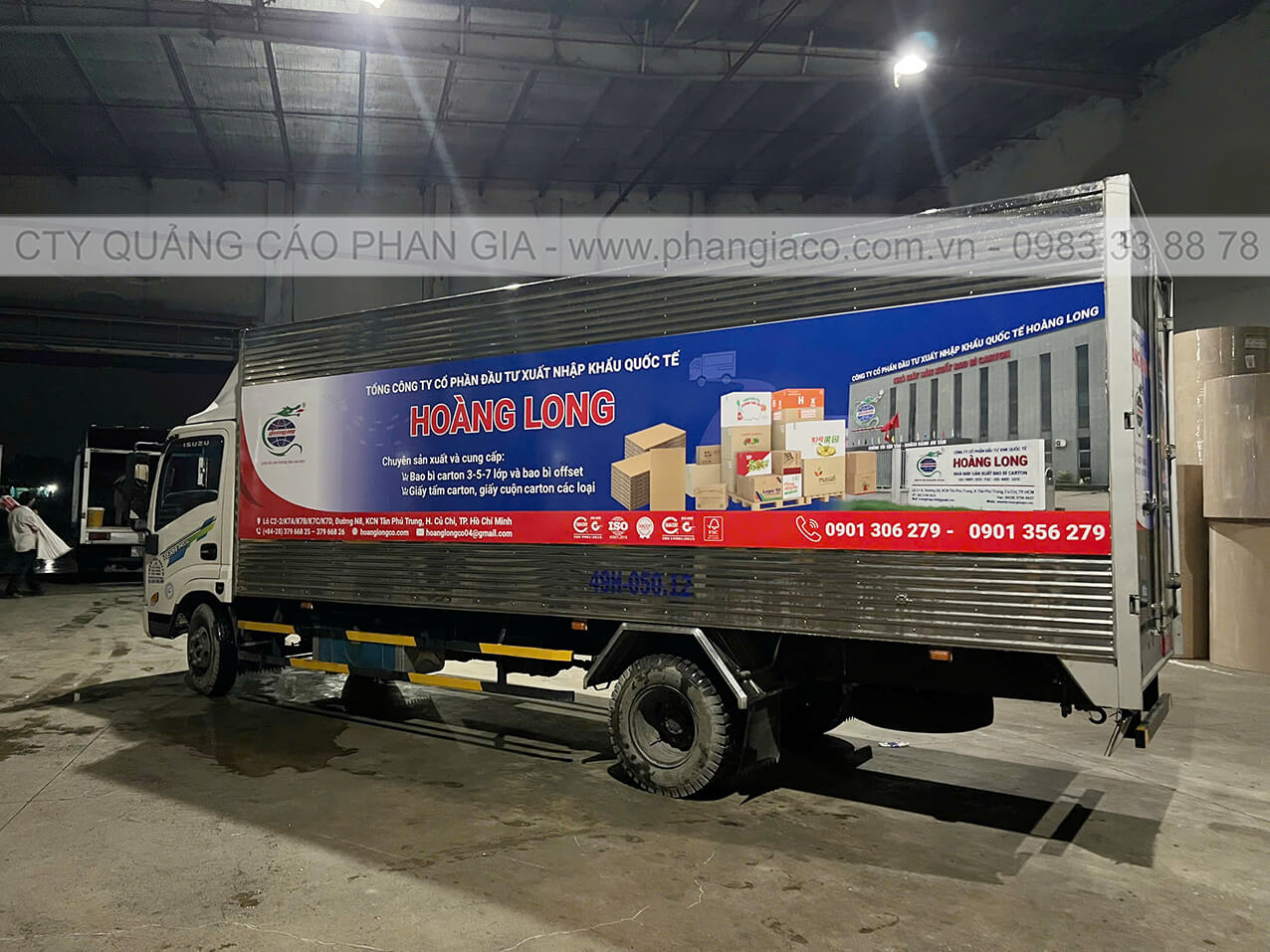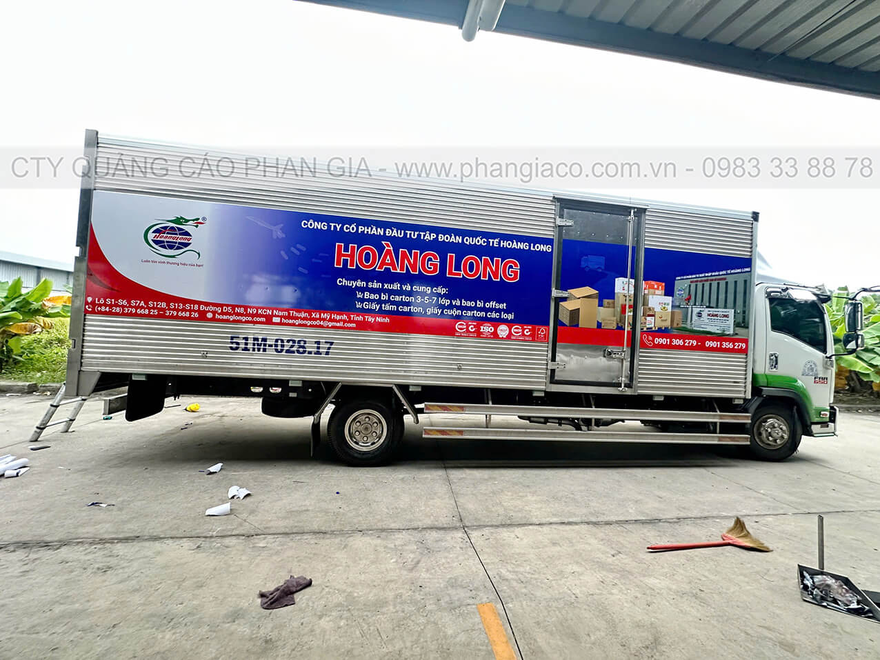 Quảng Cáo Phan Gia, nhà thầu thi công dán decal quảng cáo xe tải uy tín - chuyên nghiệp năm 2026 tại khu vực TP. Hồ Chí Minh, chúng tôi chuyên nhận khảo sát, thiết kế, thi công, lắp đặt decal quảng cáo thùng xe tải, ốp alu thùng xe tải dán decal nội dung quảng cáo với số lượng lớn cho các công ty, hãng, nhà phân phối khắp các tỉnh thành có nhu cầu trang bị quảng cáo logo sản phẩm cho phương tiện vận chuyển của mình, của nhà phân phối, hợp tác xã vận tải. Hình ảnh dán decal quảng cáo xe tải Phan Gia đã và đang là nhà cung cấp cho tập đoàn bao bì Hoàng Long.