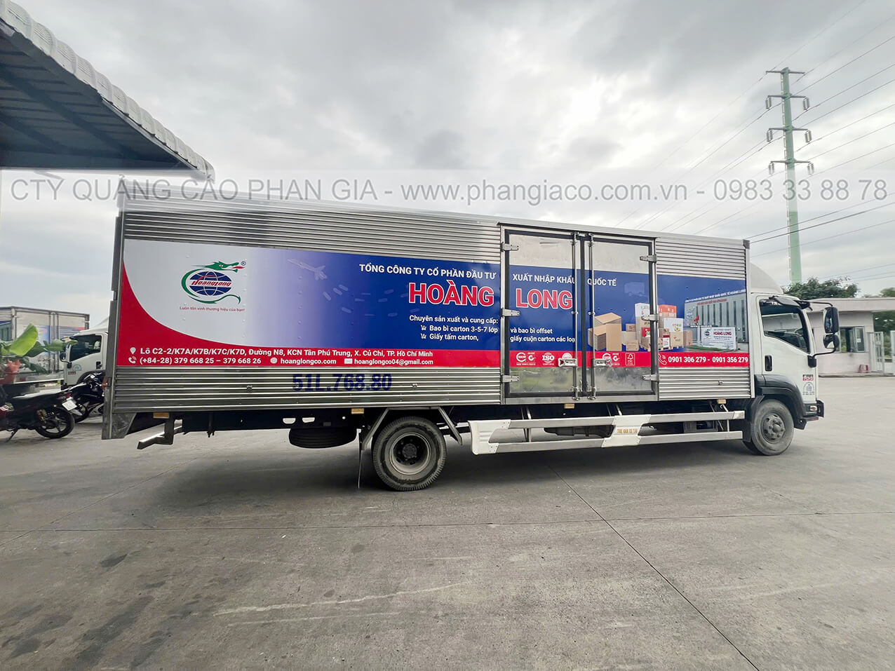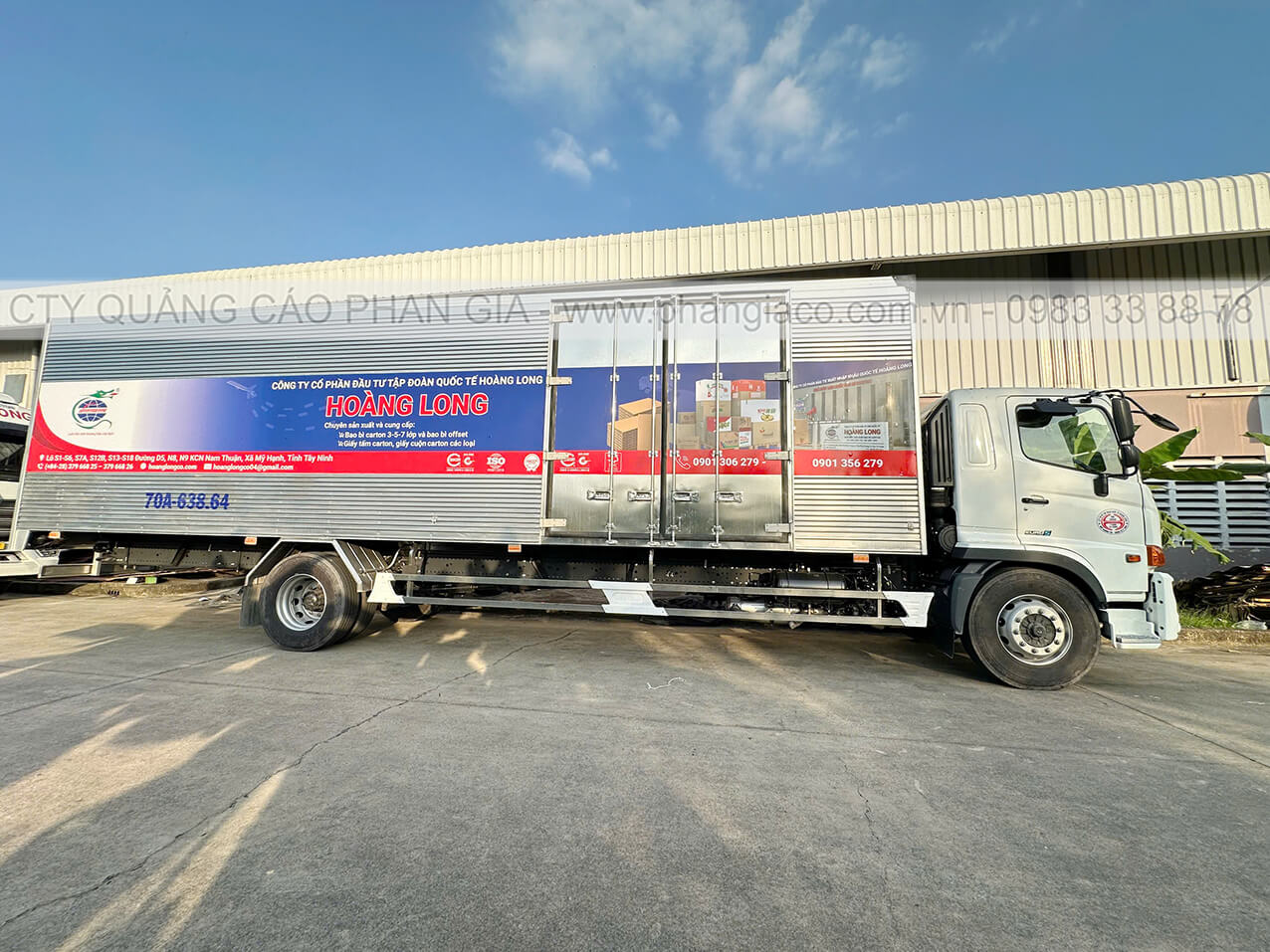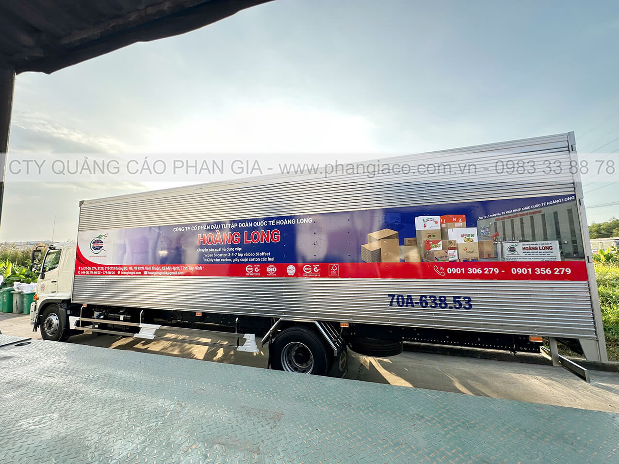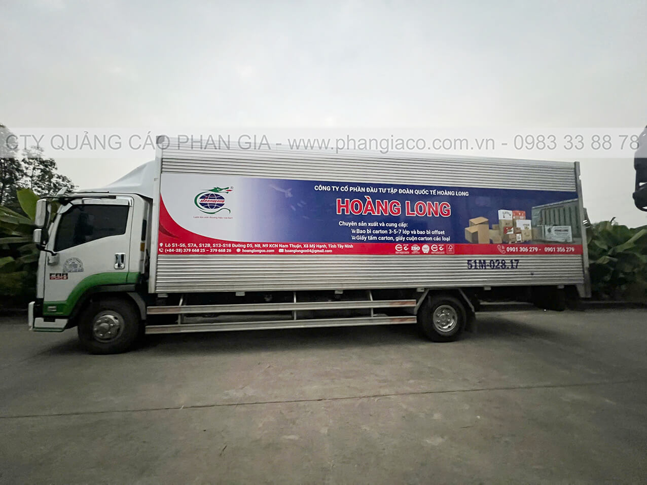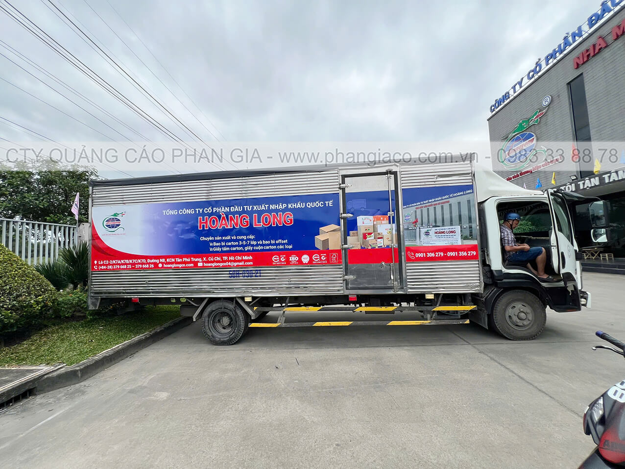 Quảng Cáo Phan Gia, nhà thầu thi công dán decal quảng cáo xe tải uy tín - chuyên nghiệp năm 2026 tại khu vực TP. Hồ Chí Minh, chúng tôi chuyên nhận khảo sát, thiết kế, thi công, lắp đặt decal quảng cáo thùng xe tải, ốp alu thùng xe tải dán decal nội dung quảng cáo với số lượng lớn cho các công ty, hãng, nhà phân phối khắp các tỉnh thành có nhu cầu trang bị quảng cáo logo sản phẩm cho phương tiện vận chuyển của mình, của nhà phân phối, hợp tác xã vận tải. Hình ảnh dán decal quảng cáo xe tải Phan Gia đã và đang là nhà cung cấp cho tập đoàn bao bì Hoàng Long.