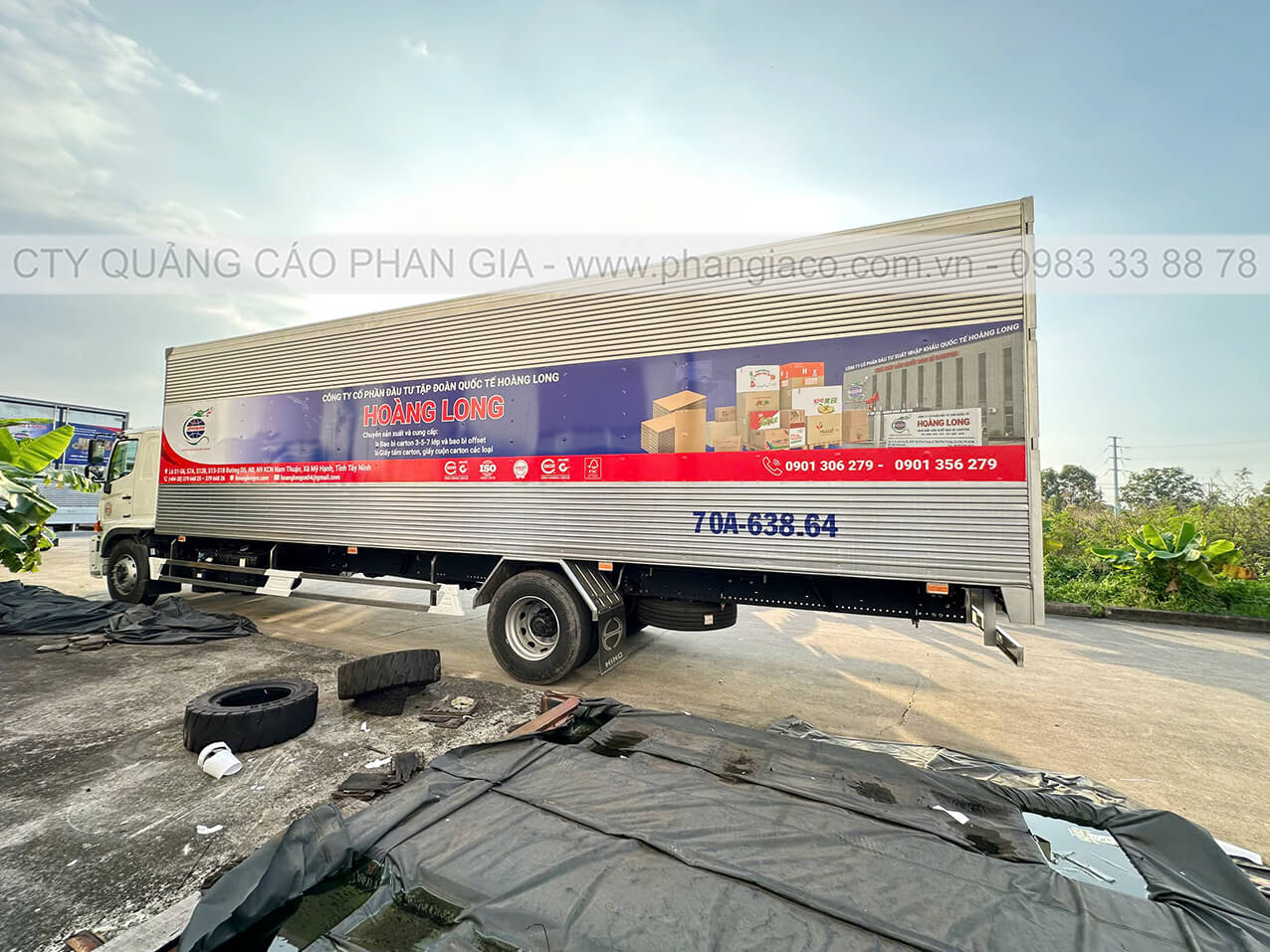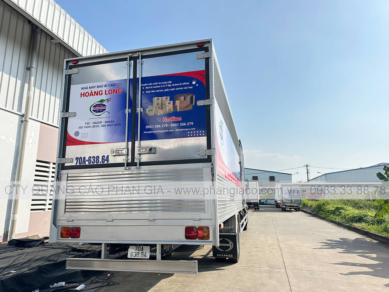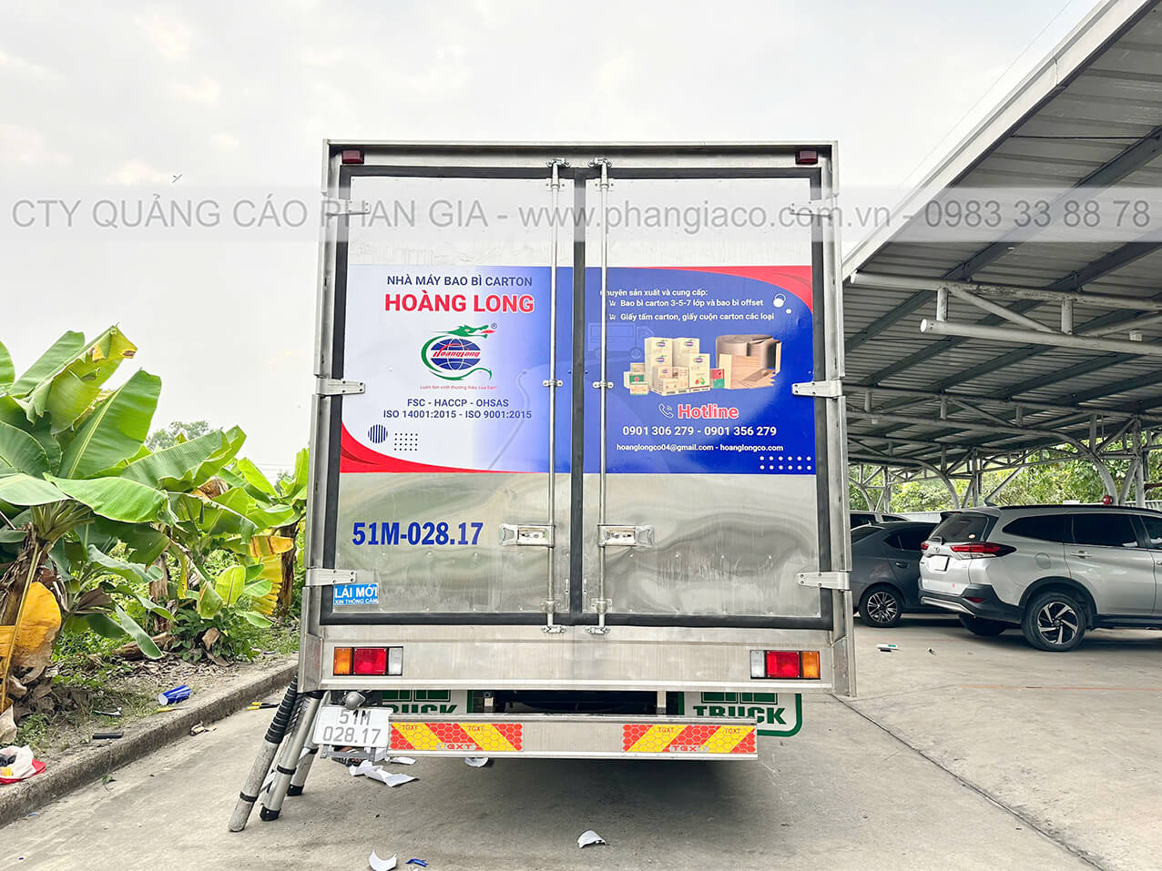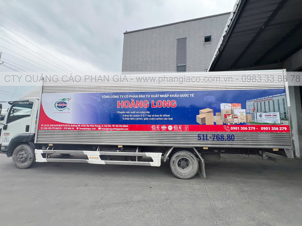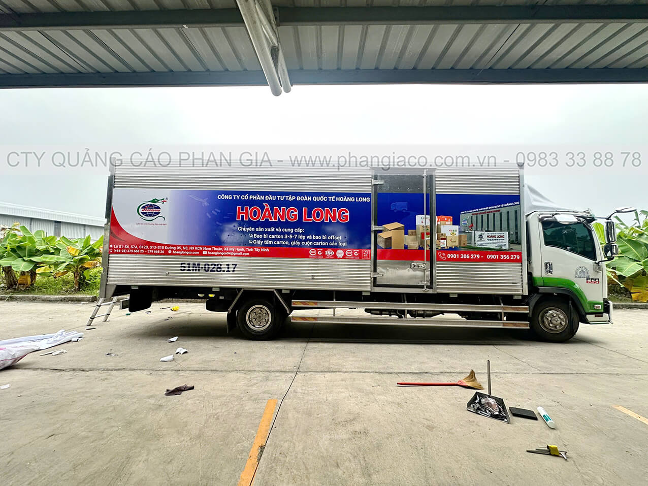 Quảng Cáo Phan Gia, nhà thầu thi công dán decal quảng cáo xe tải uy tín - chuyên nghiệp năm 2026 tại khu vực TP. Hồ Chí Minh, chúng tôi chuyên nhận khảo sát, thiết kế, thi công, lắp đặt decal quảng cáo thùng xe tải, ốp alu thùng xe tải dán decal nội dung quảng cáo với số lượng lớn cho các công ty, hãng, nhà phân phối khắp các tỉnh thành có nhu cầu trang bị quảng cáo logo sản phẩm cho phương tiện vận chuyển của mình, của nhà phân phối, hợp tác xã vận tải. Hình ảnh dán decal quảng cáo xe tải Phan Gia đã và đang là nhà cung cấp cho tập đoàn bao bì Hoàng Long.