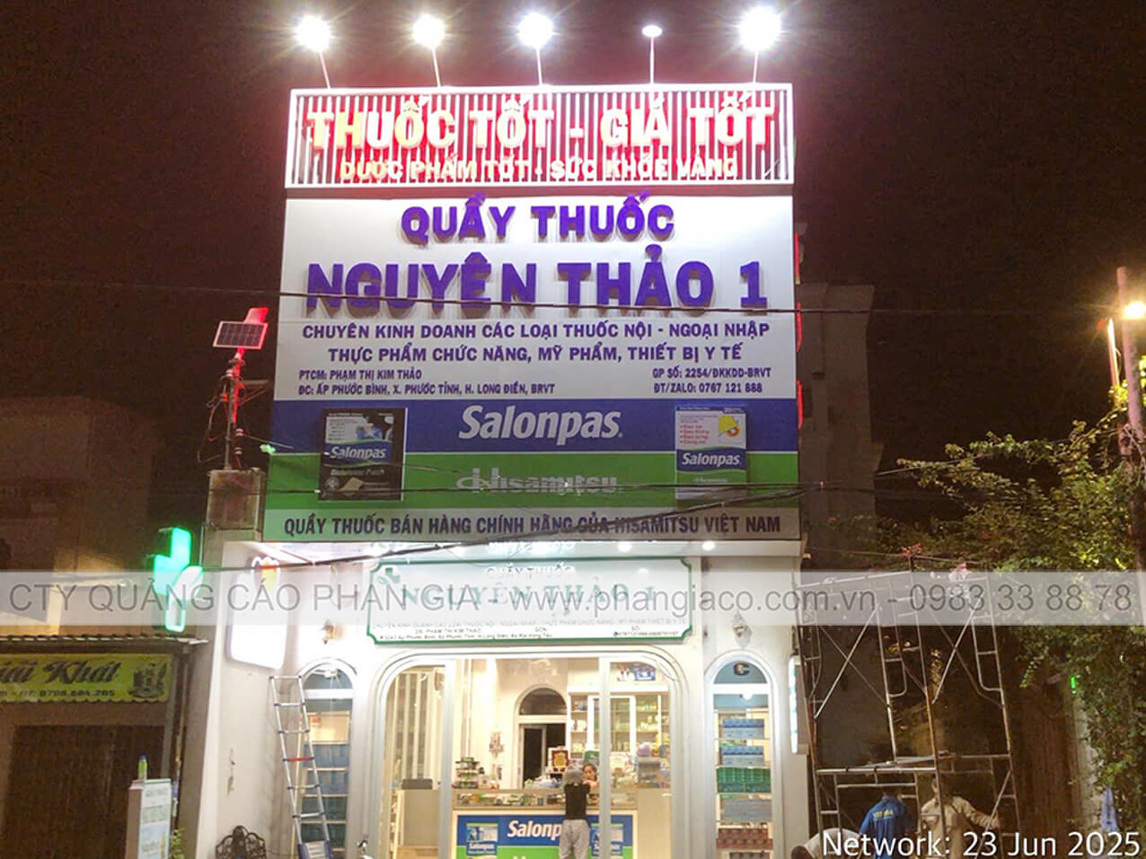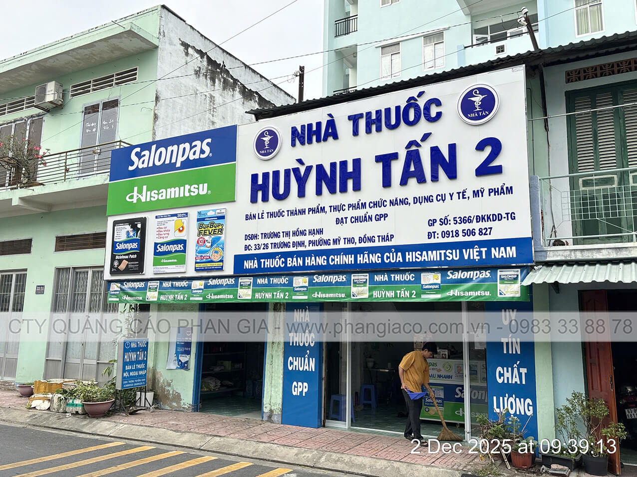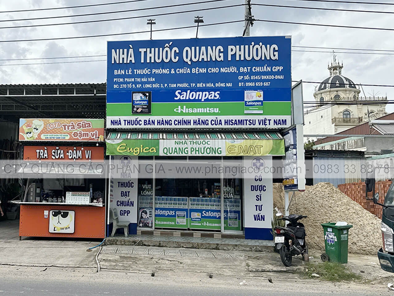 Bảng hiệu quảng cáo nhôm nhà thuốc đẹp chất lượng được Phan Gia lắp đặt hoàn thiện và bàn giao cho khách hàng đưa vào sử dụng tại TP. Mỹ Tho