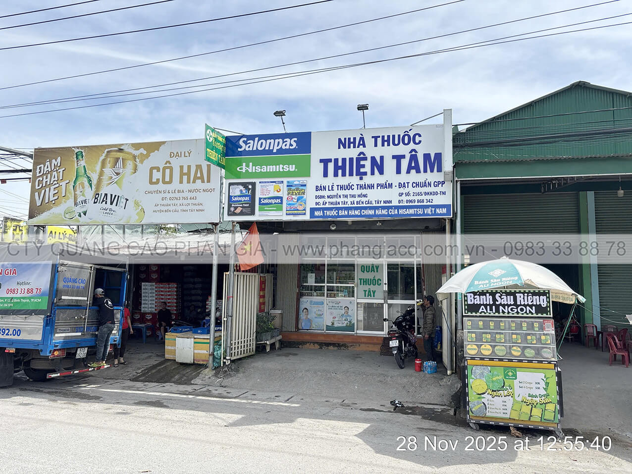 Bảng quảng cáo nhôm chữ mica lắp đặt tại huyện Bến Cầu, Tây Ninh