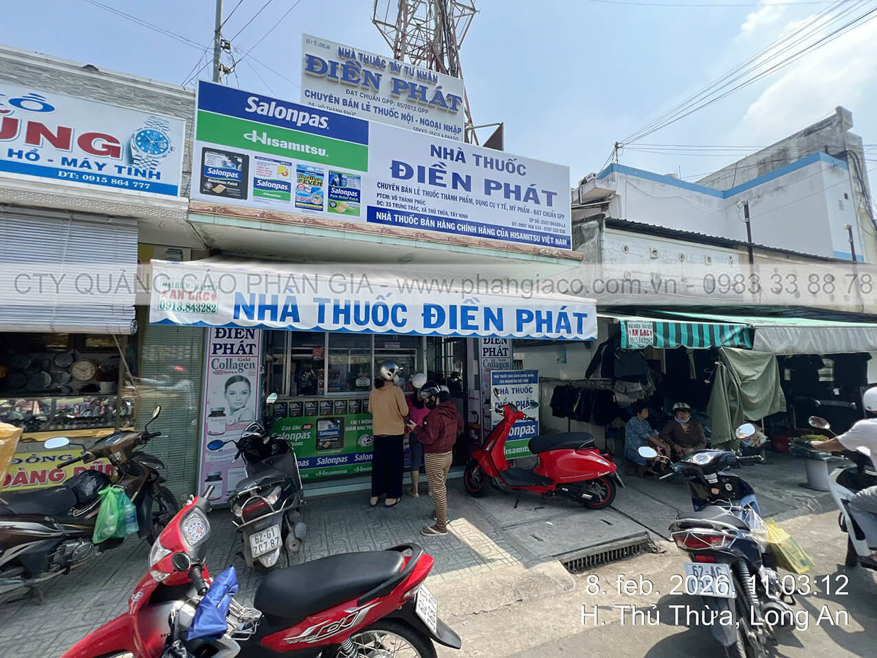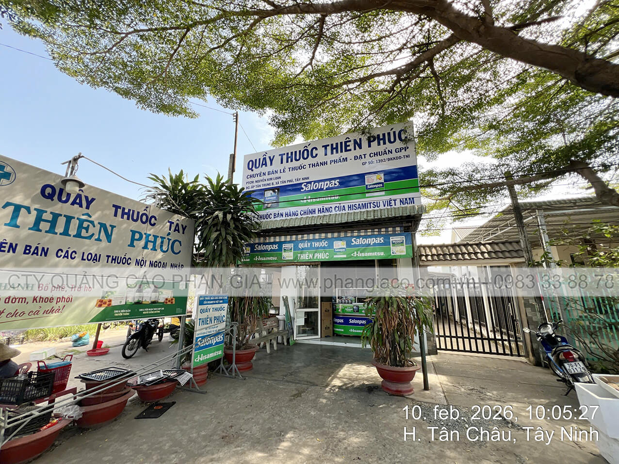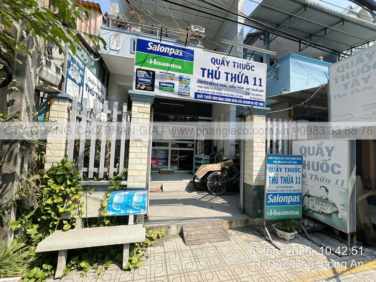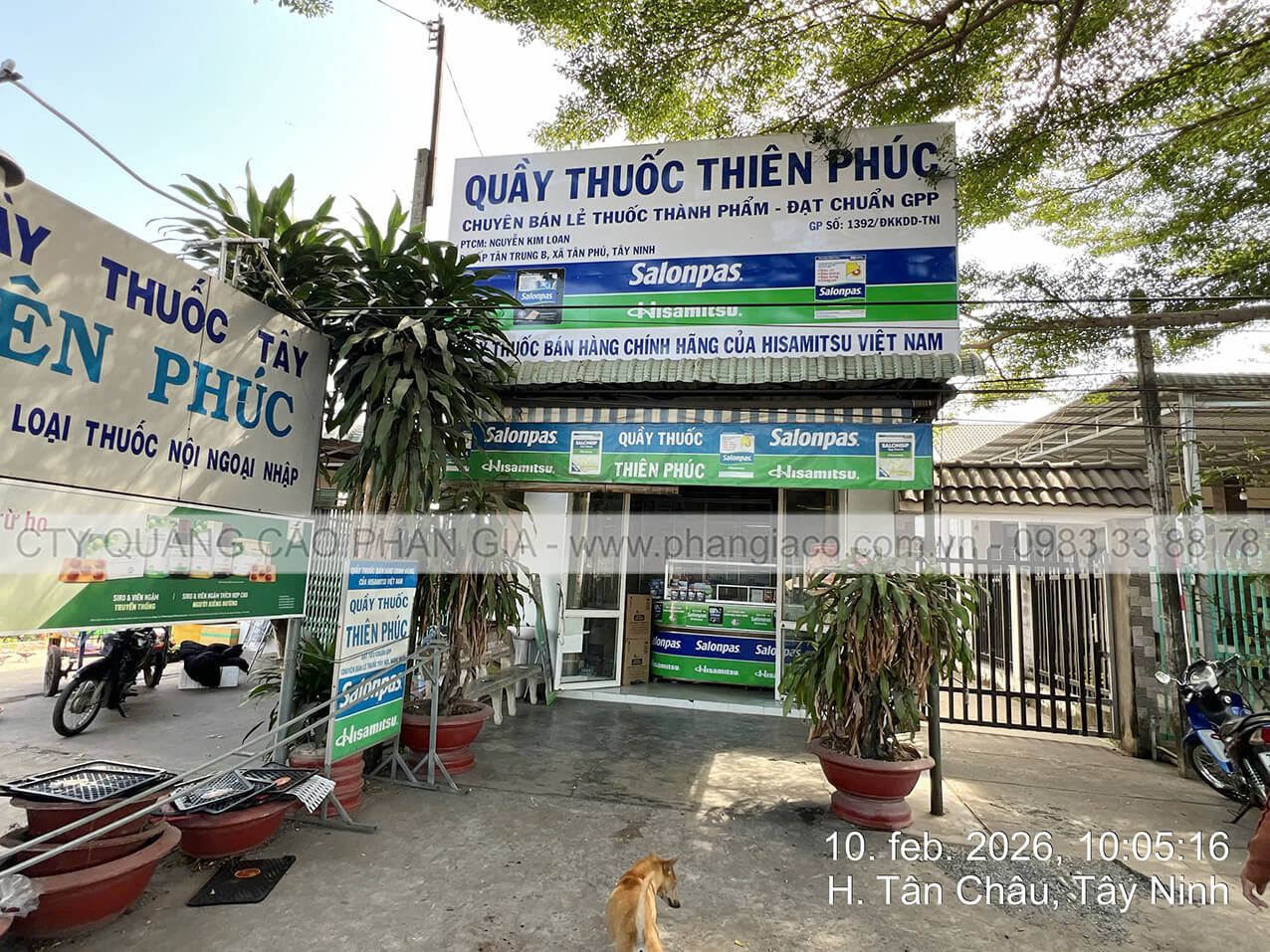 Chuỗi bảng hiệu quảng cáo với chất liệu tôn dán decal của hãng dược phẩm Hisamitsu Việt Nam được Quảng Cáo Phan Gia khảo sát, thiết kế, sản xuất, vận chuyển và lắp đặt hoàn thiện tại các nhà thuốc, quầy thuốc khu vực 02 tỉnh Long An và Tây Ninh (nay là tỉnh Tây Ninh mới) những ngày đầu năm 2026.