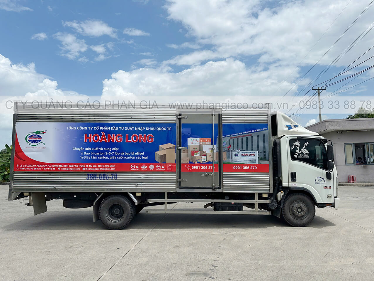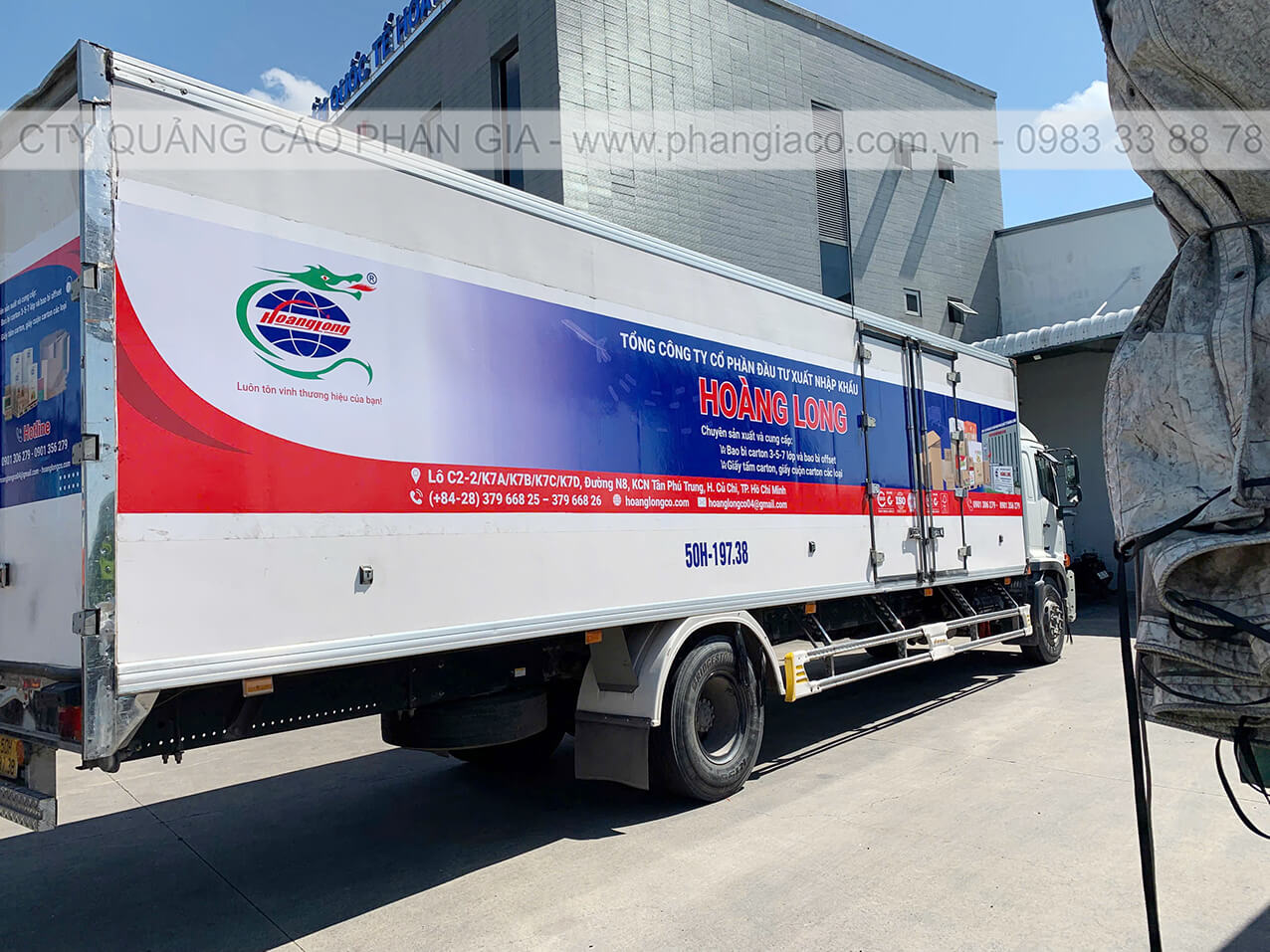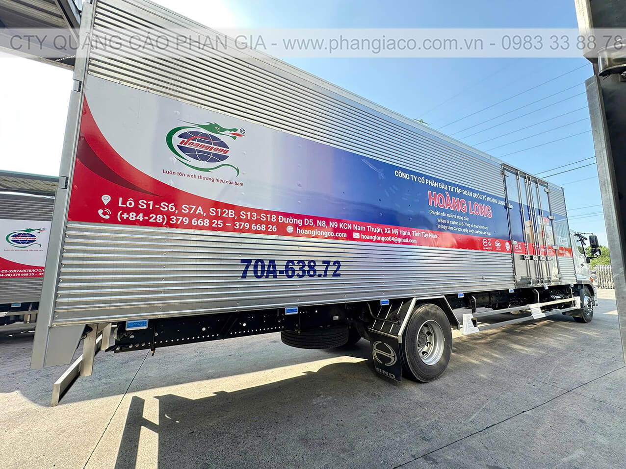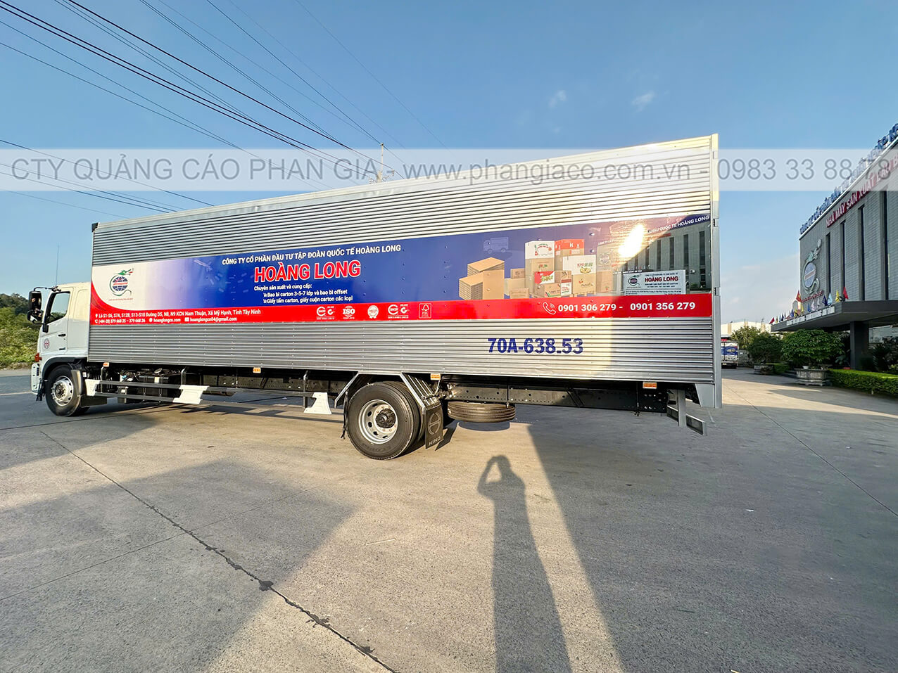 Dán decal quảng cáo in kỹ thuật số trực tiếp vào thùng xe đối với xe tải có quy cách thùng phẳng