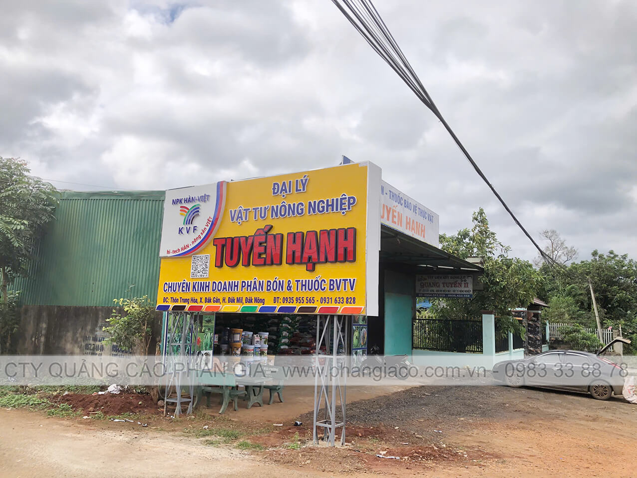 Pano quảng cáo alu cửa hàng vật tư nông nghiệp 02 mặt Phan Gia thi công & lắp đặt tại Gia Lai