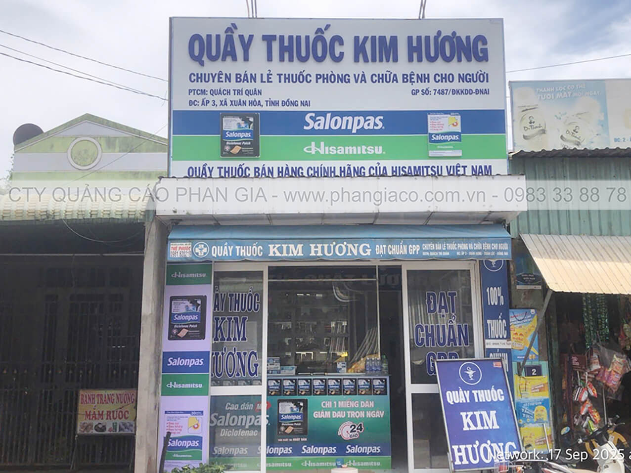 Bảng hiệu quảng cáo với quy cách nhôm nội dung chữ mica nhà thuốc lắp đặt tại xã Bến Cầu, Tây Ninh