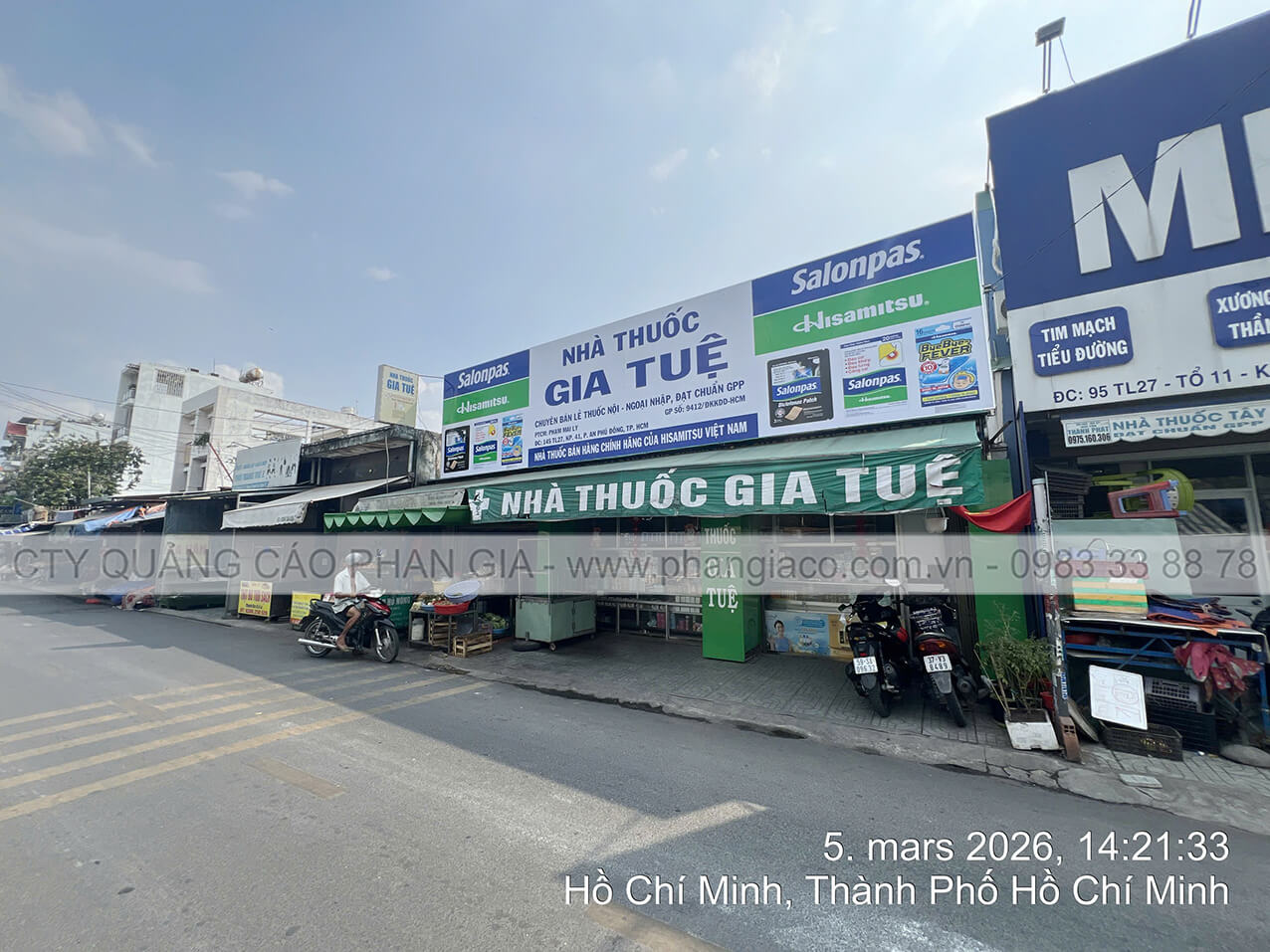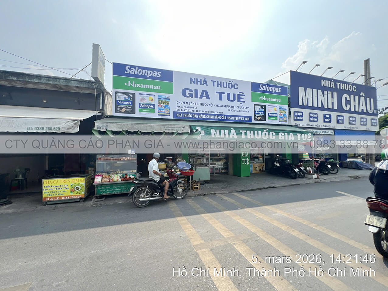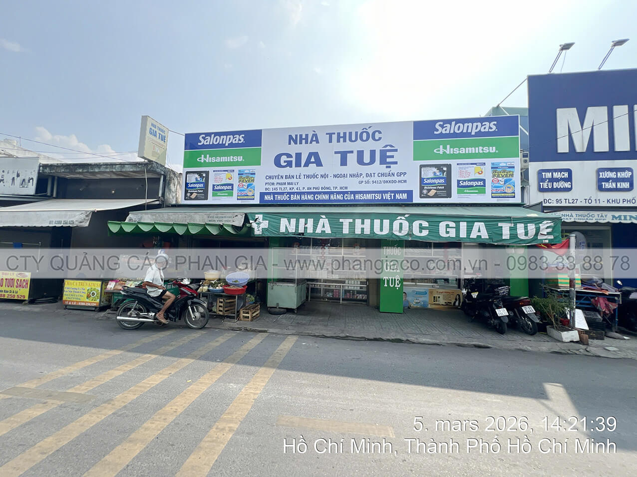 Bảng hiệu quảng cáo tôn dán decal nhà thuốc tây Phan Gia lắp đặt hoàn thiện cho khách hàng tại P. An Phú Đông, TP. Hồ Chí Minh