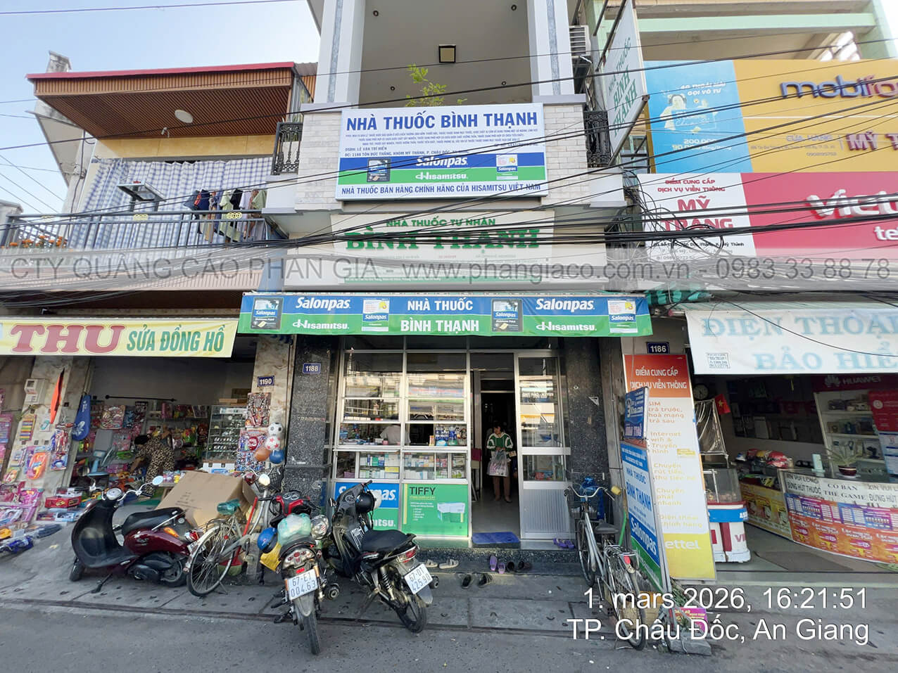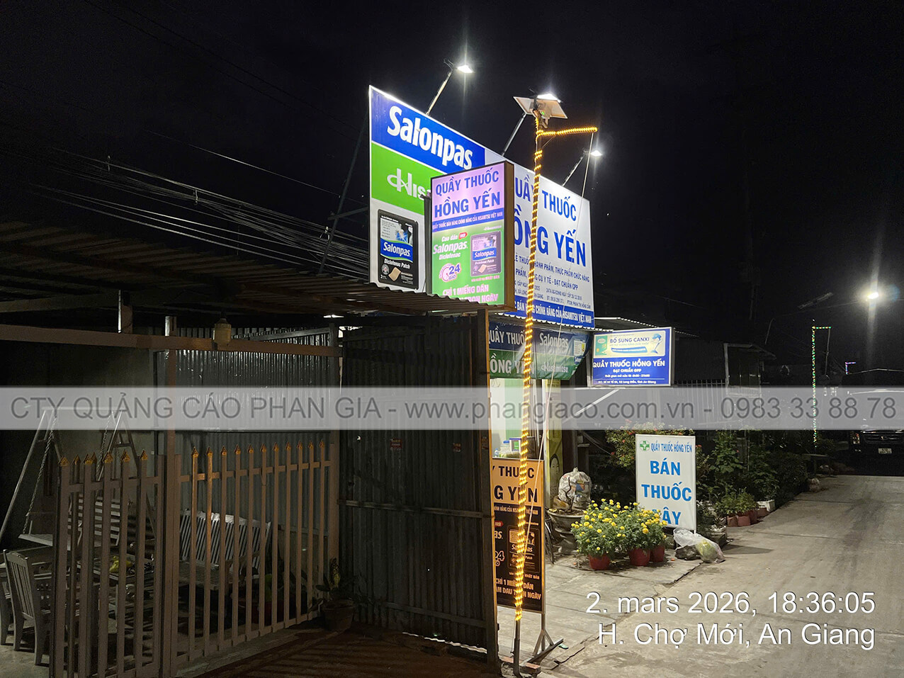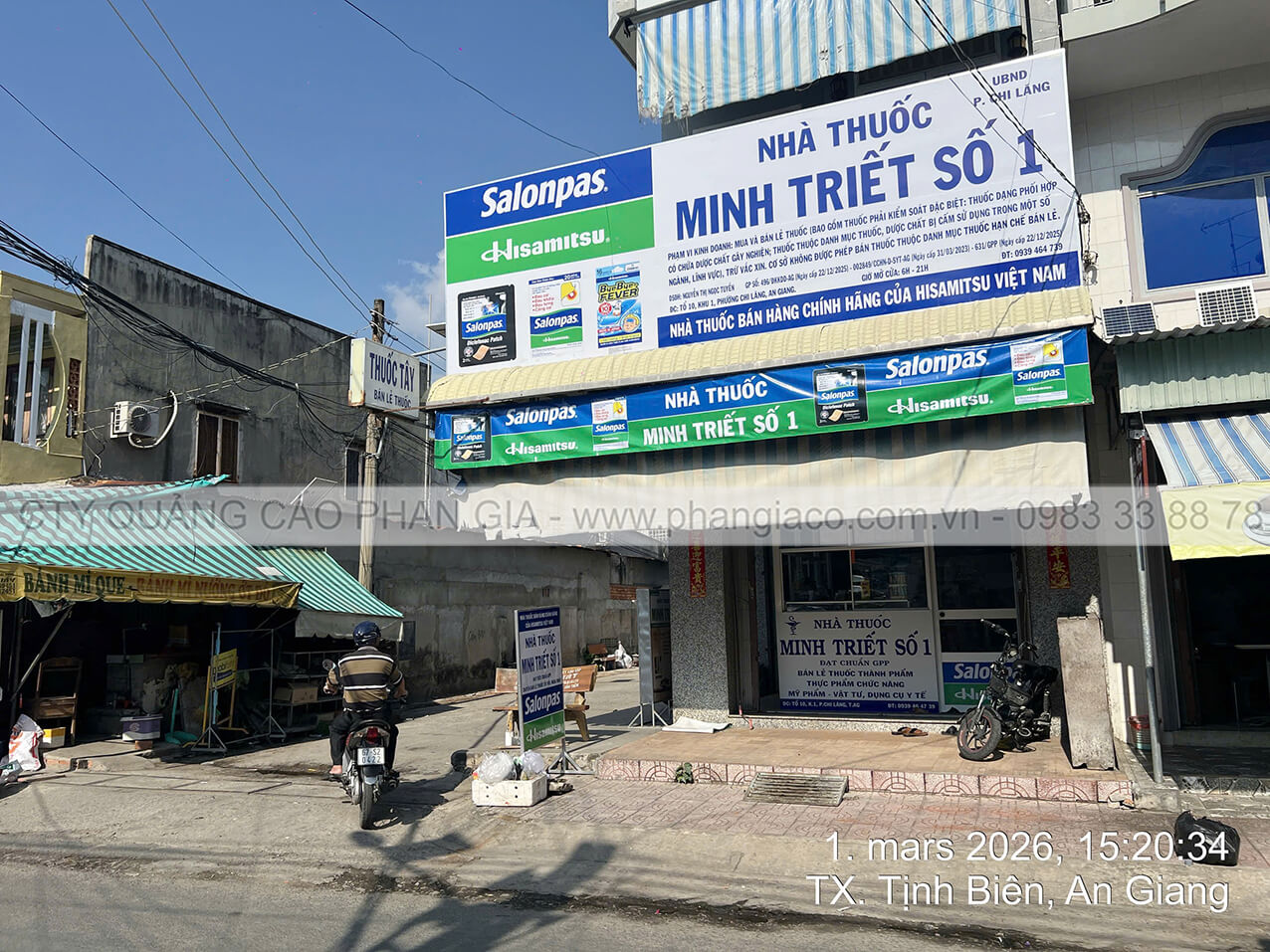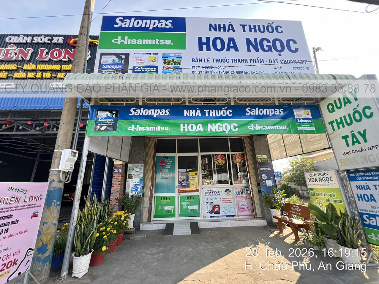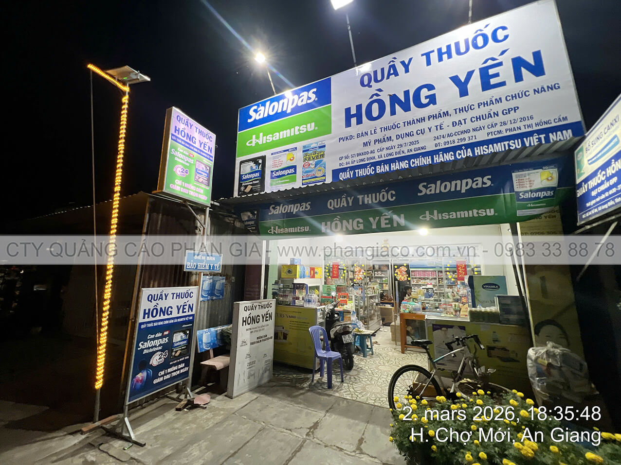Bảng quảng cáo tôn dán decal quầy thuốc lắp đặt tại Chợ Mới, An Giang