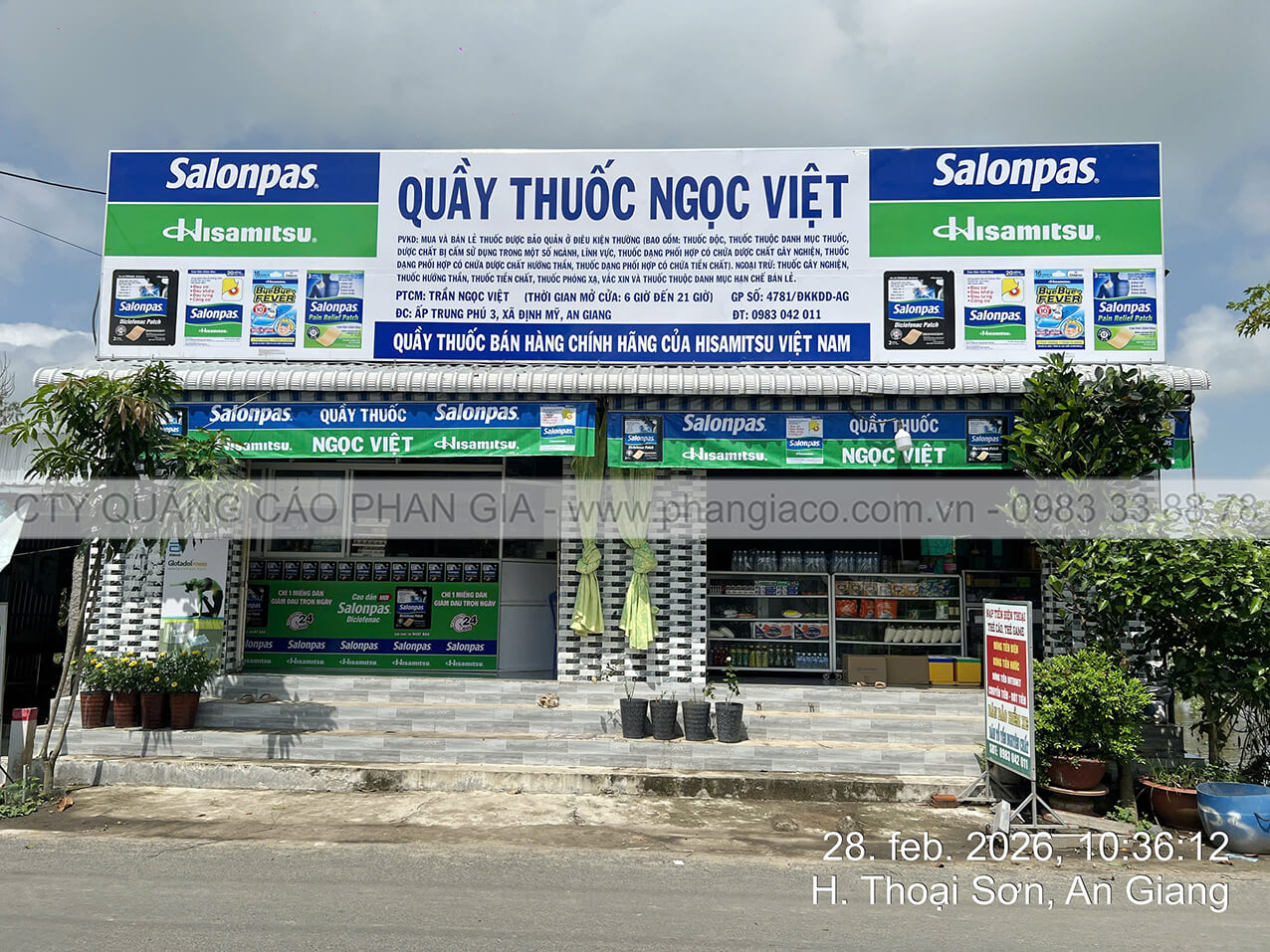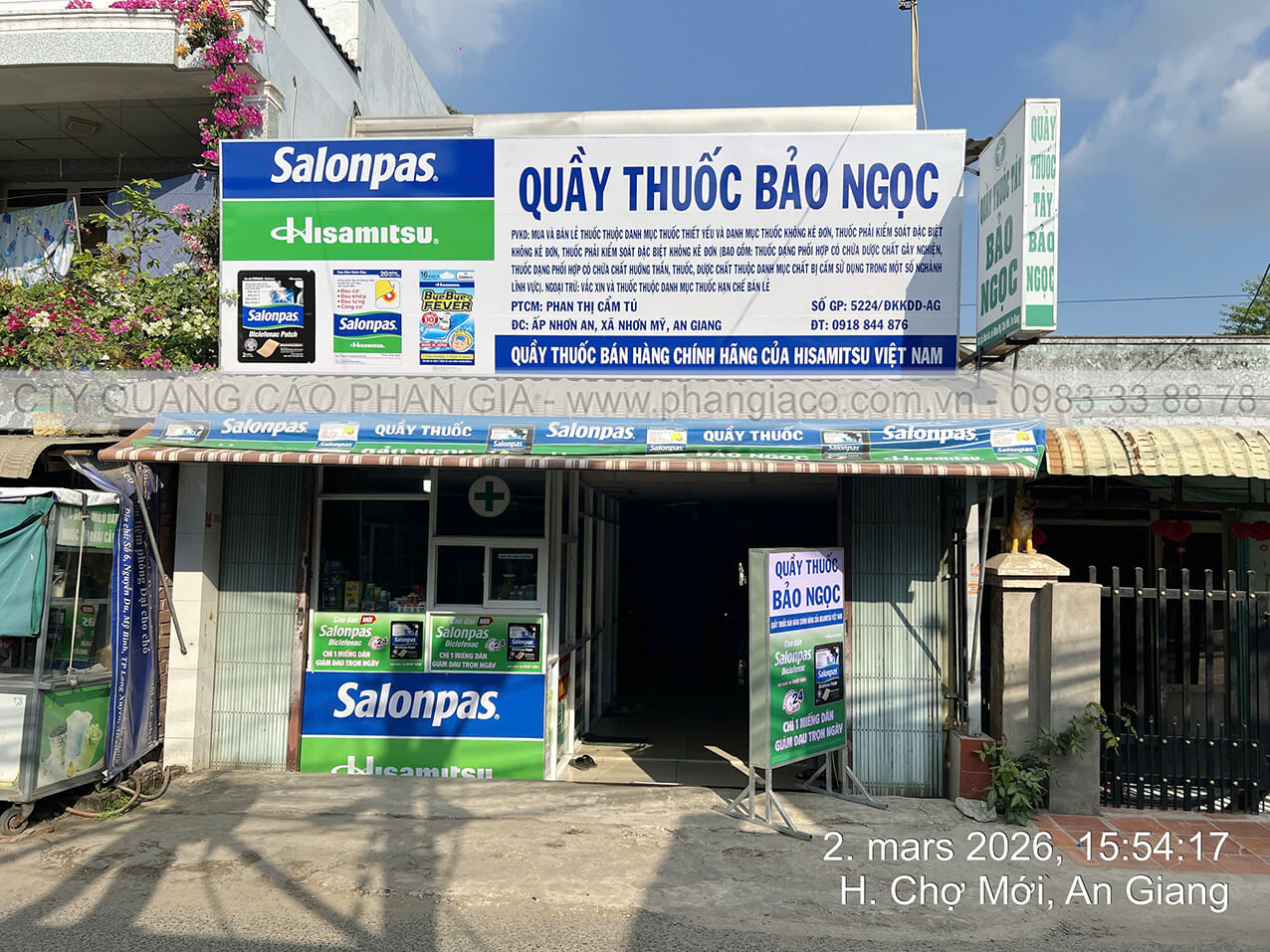 Tổng hợp top 20 bảng hiệu quảng cáo với quy cách tôn dán decal nổi bật được Quảng Cáo Phan Gia sản xuất & lắp đặt hoàn thiện tại các quầy thuốc tây, nhà thuốc tây tháng 02/2026 của chuỗi hệ thống nhà thuốc Salonpas Hitsamitsu Việt Nam.