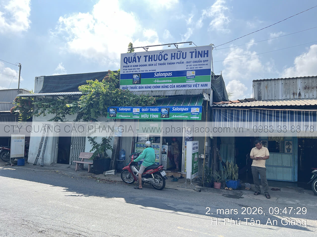 Bảng hiệu quảng cáo tôn decal quầy thuốc tây Phan Gia lắp đặt hoàn thiện cho khách hàng tại xã Định Mỹ, An Giang