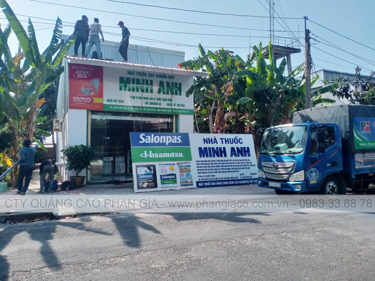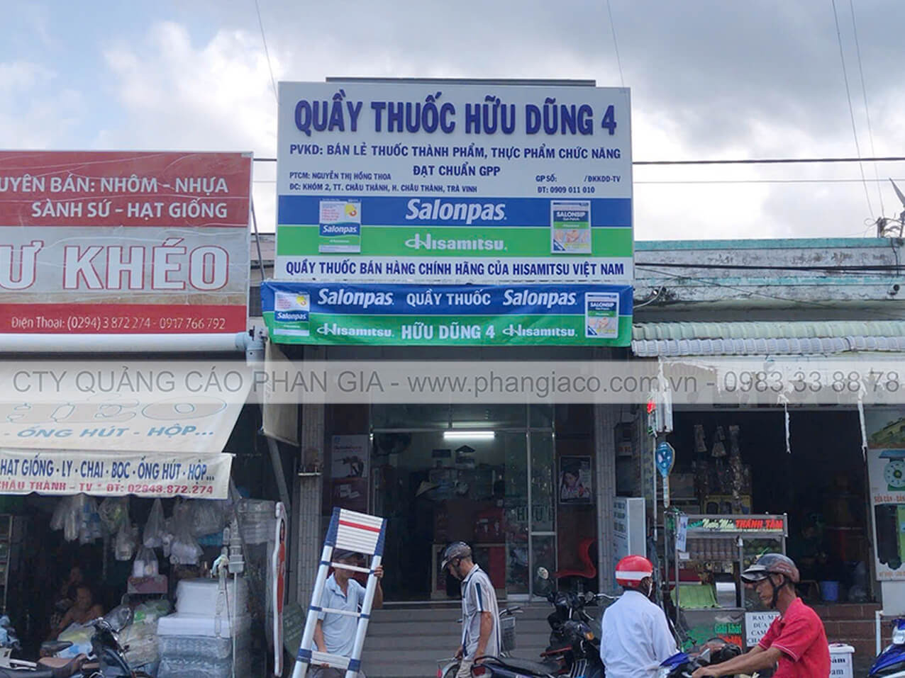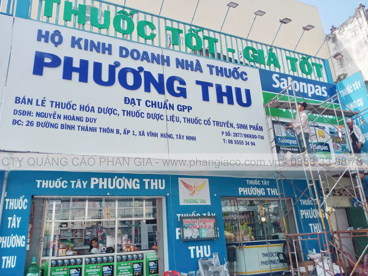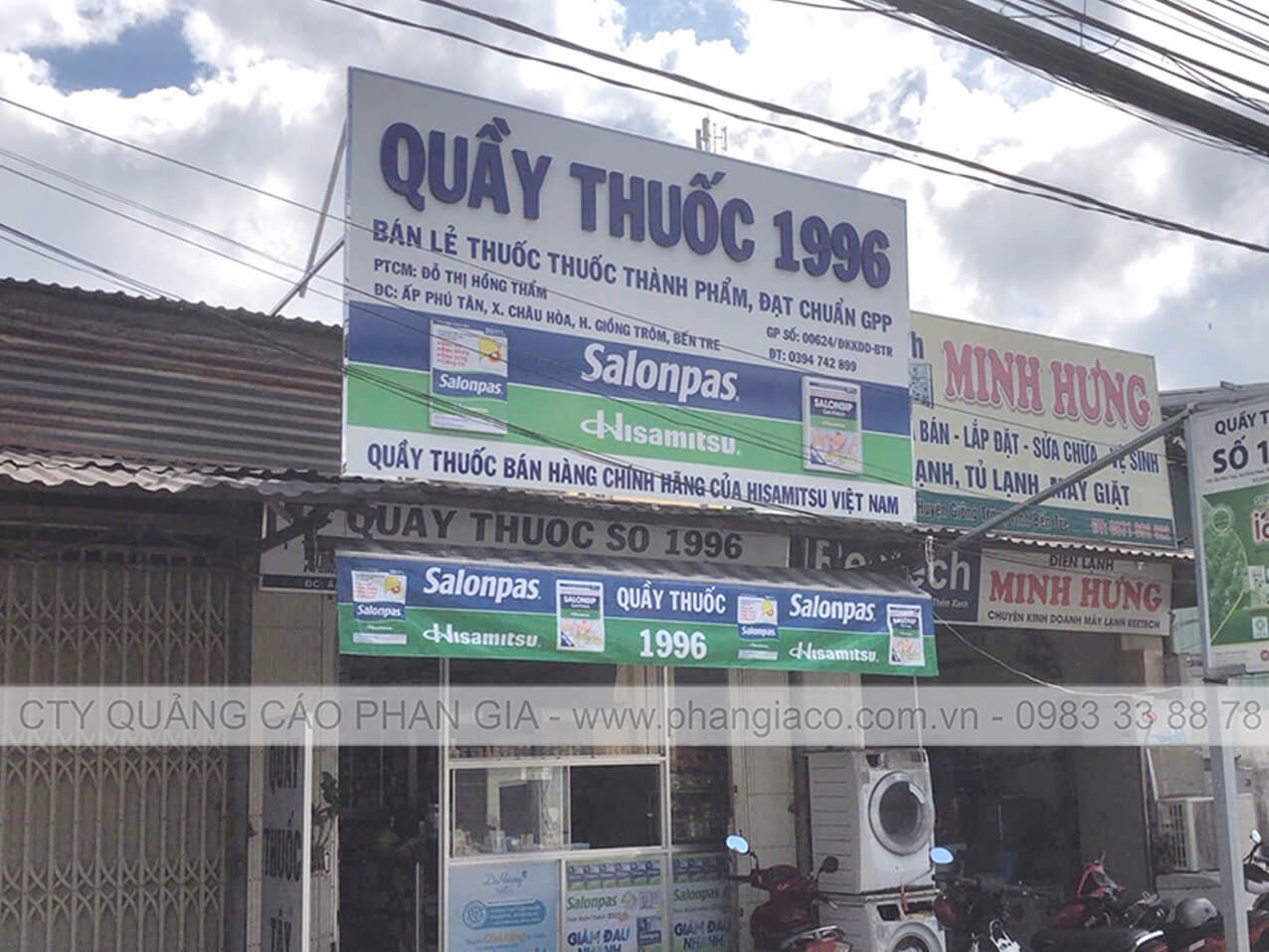 Bảng hiệu alu chữ nổi mica và chữ mica xẹp được Phan Gia lắp đặt hoàn thiện tại xã Ngũ Hiệp, Đồng Tháp (huyện Cai Lậy, Tiền Giang cũ)
