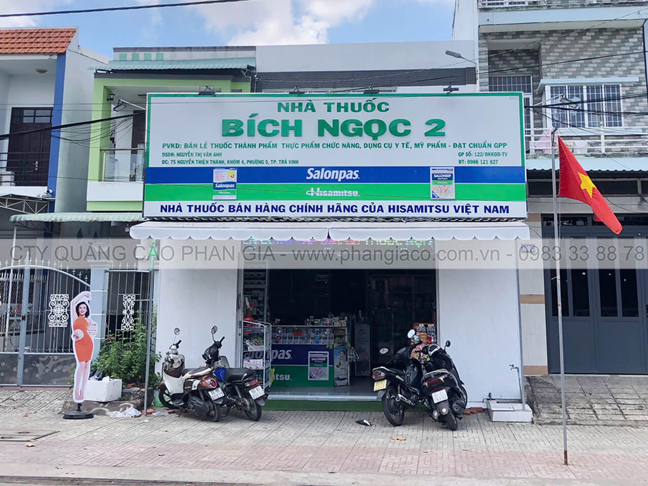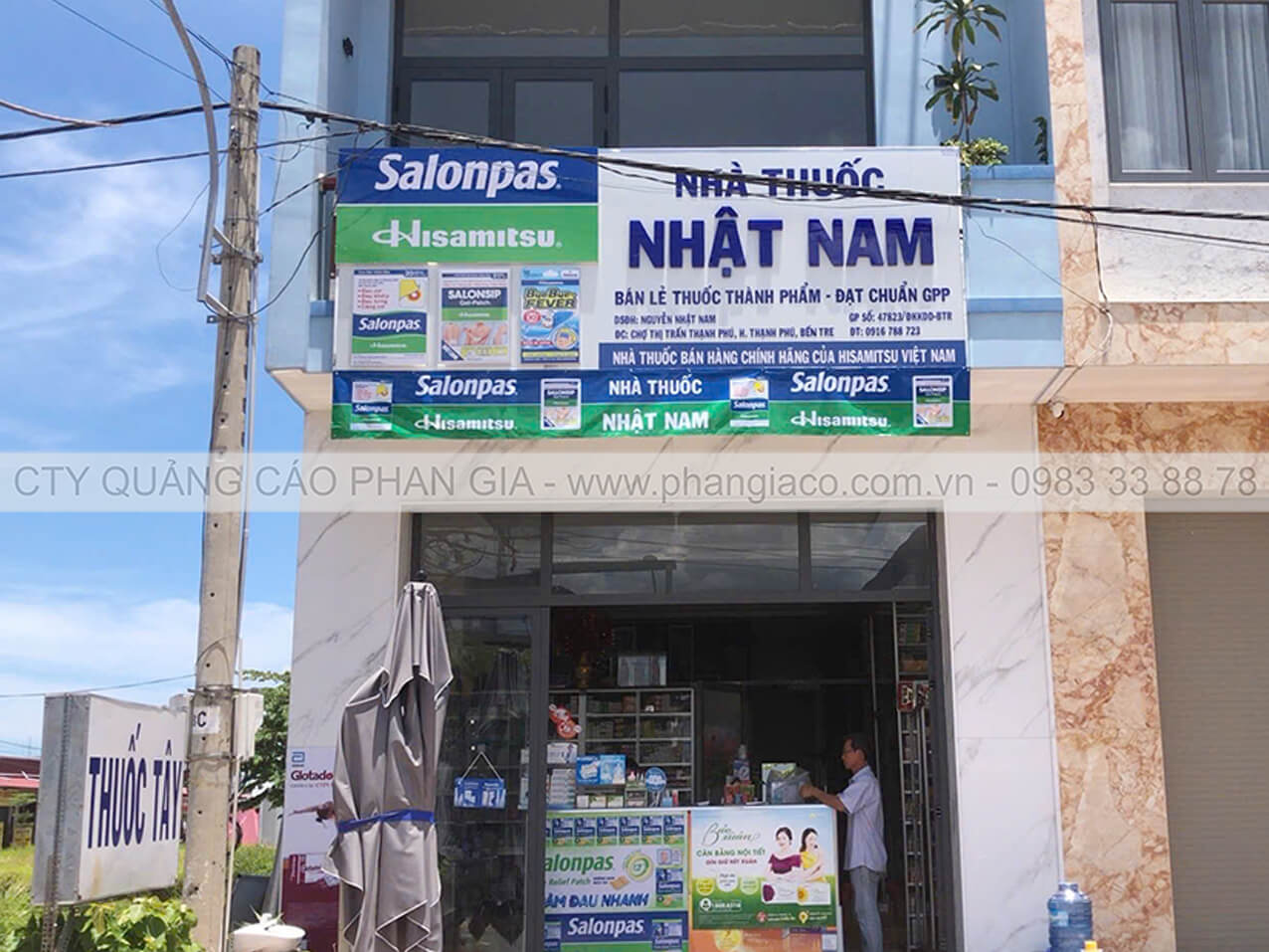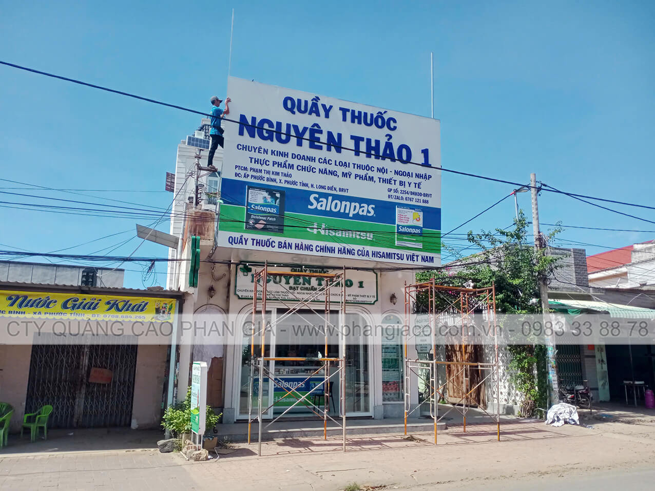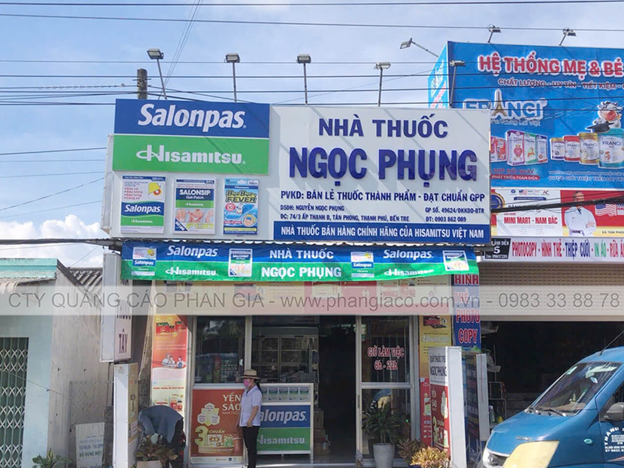 Bảng hiệu alu chữ nổi mica và chữ mica xẹp được Phan Gia lắp đặt hoàn thiện tại xã Ngũ Hiệp, Đồng Tháp (huyện Cai Lậy, Tiền Giang cũ)